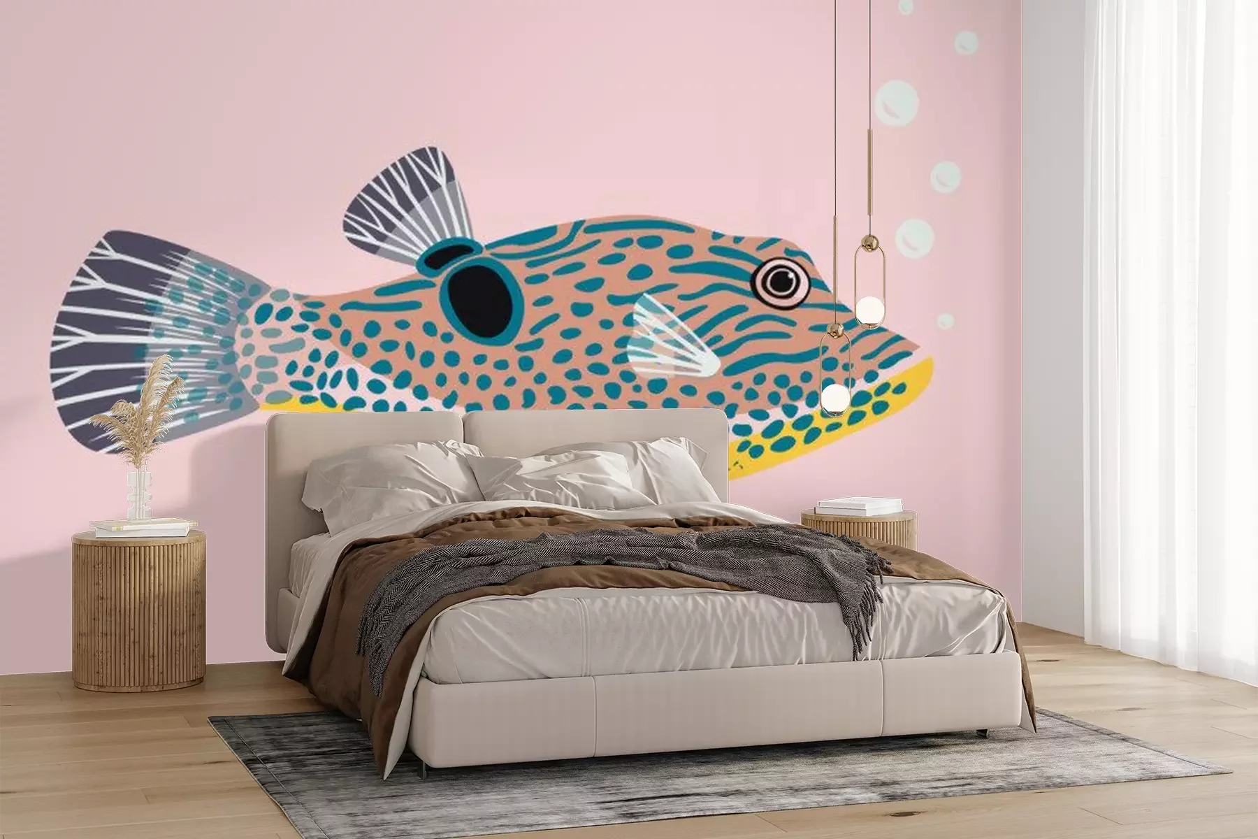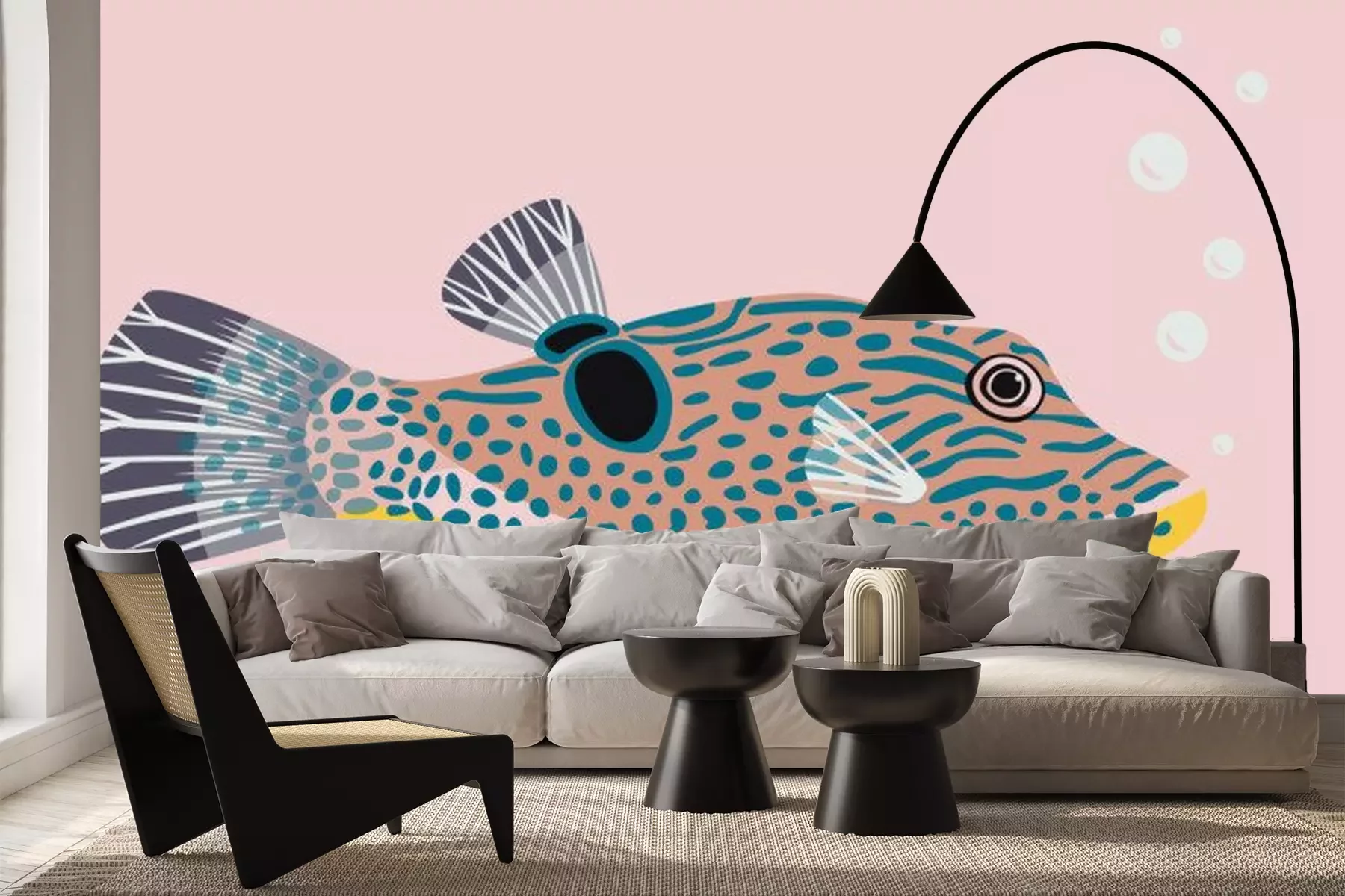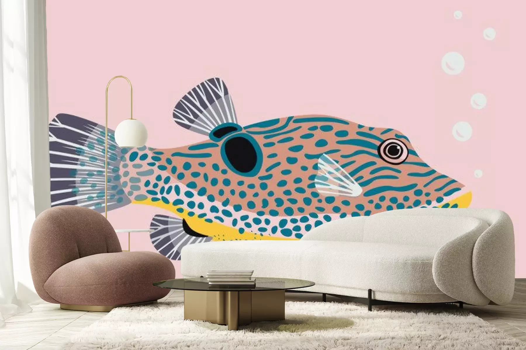 Fototapete Fugu Kugelfisch auf rosa Hintergrund