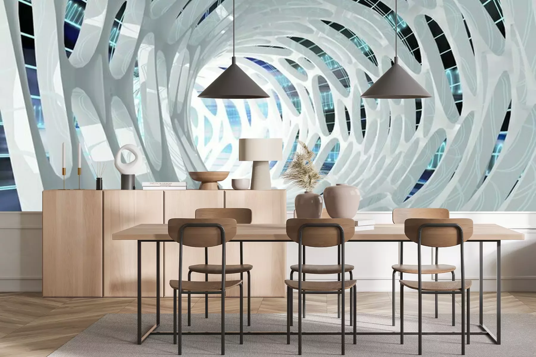 Das Material Premium+ besteht aus einer strukturierten Vinyl-Oberschicht und einem Trägermaterial (Vlies) mit einer Grammatur von 255 g/m², das kleine Unebenheiten der Wand zuverlässig kaschiert. Die feine Sandstruktur verleiht der Oberfläche eine luxuriöse Haptik, während das halbmatte Finish die Tiefe der Farben betont. Das Material ist dampfdurchlässig – so kann diese Fototapete auch in Küchen und Badezimmern eingesetzt werden. Die maximale Breite einer Tapetenbahn beträgt 100 cm. Bei größeren Abmessungen besteht die Fototapete aus mehreren gleich großen Bahnen. Der Kleber wird direkt auf die Wand aufgetragen, und die Fototapete wird auf Stoß angebracht, was für einen ästhetischen Effekt ohne sichtbare Fugen sorgt. Die Oberfläche ist pflegeleicht und kann bei Bedarf sanft mit einem feuchten Tuch abgewischt werden.