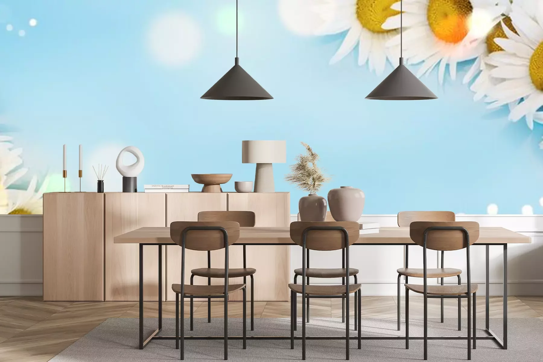 Fototapete Gänseblümchen auf blauem Hintergrund