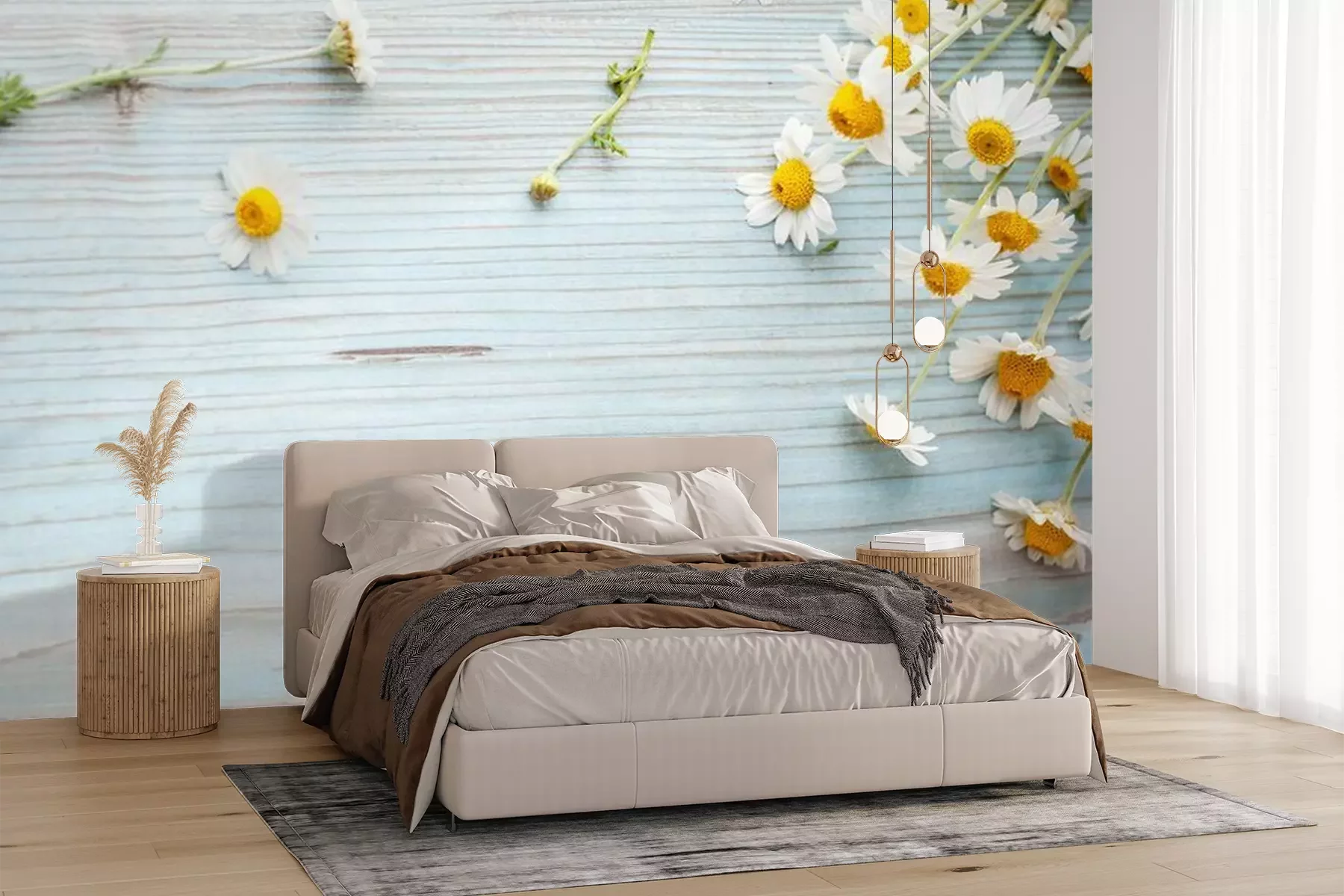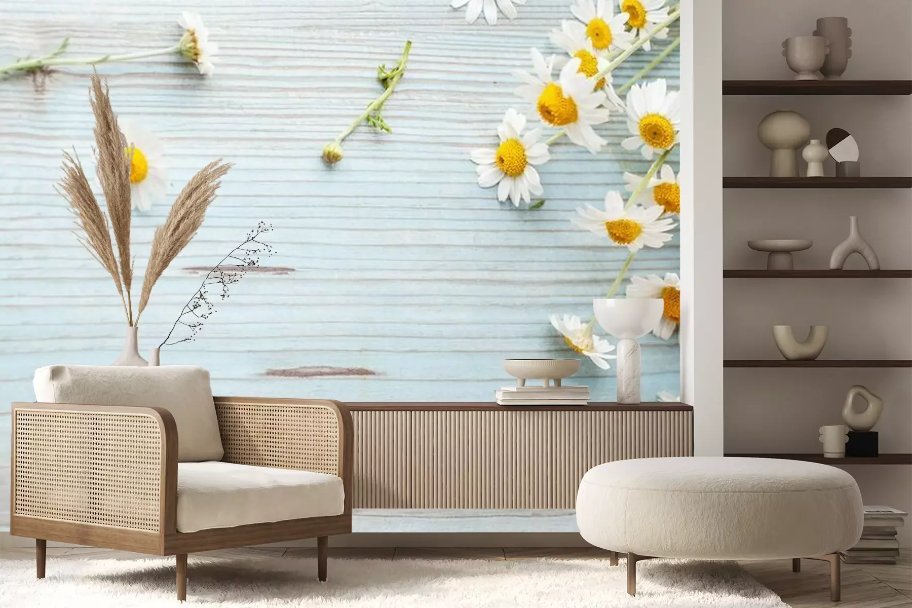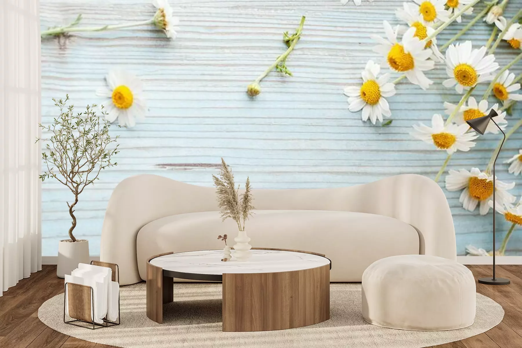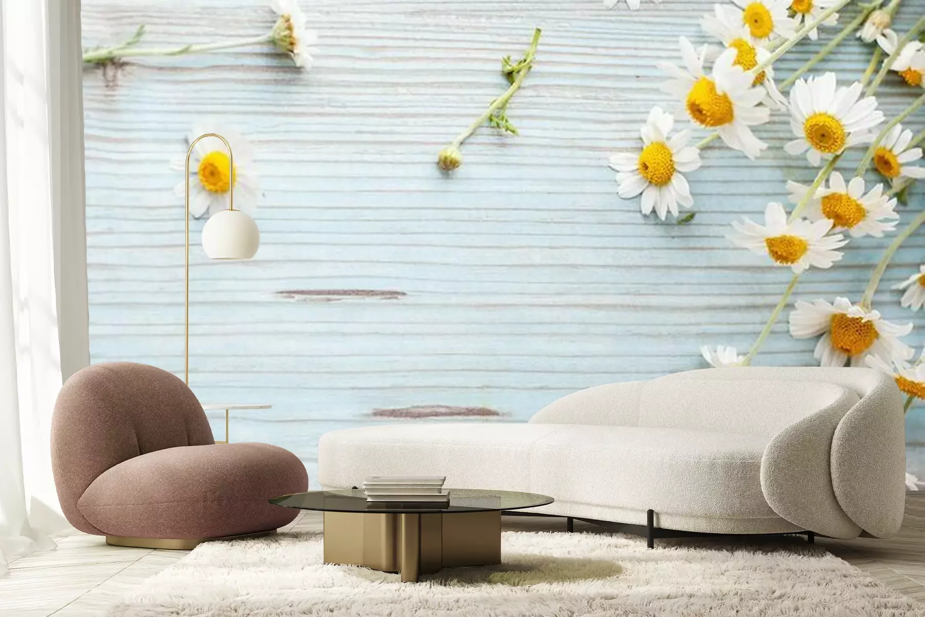 Fototapete Gänseblümchen auf Brettern
