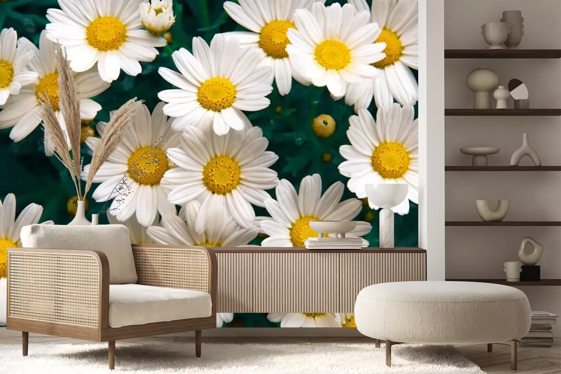 Fototapete Gänseblümchen Blütenblätter aus nächster Nähe