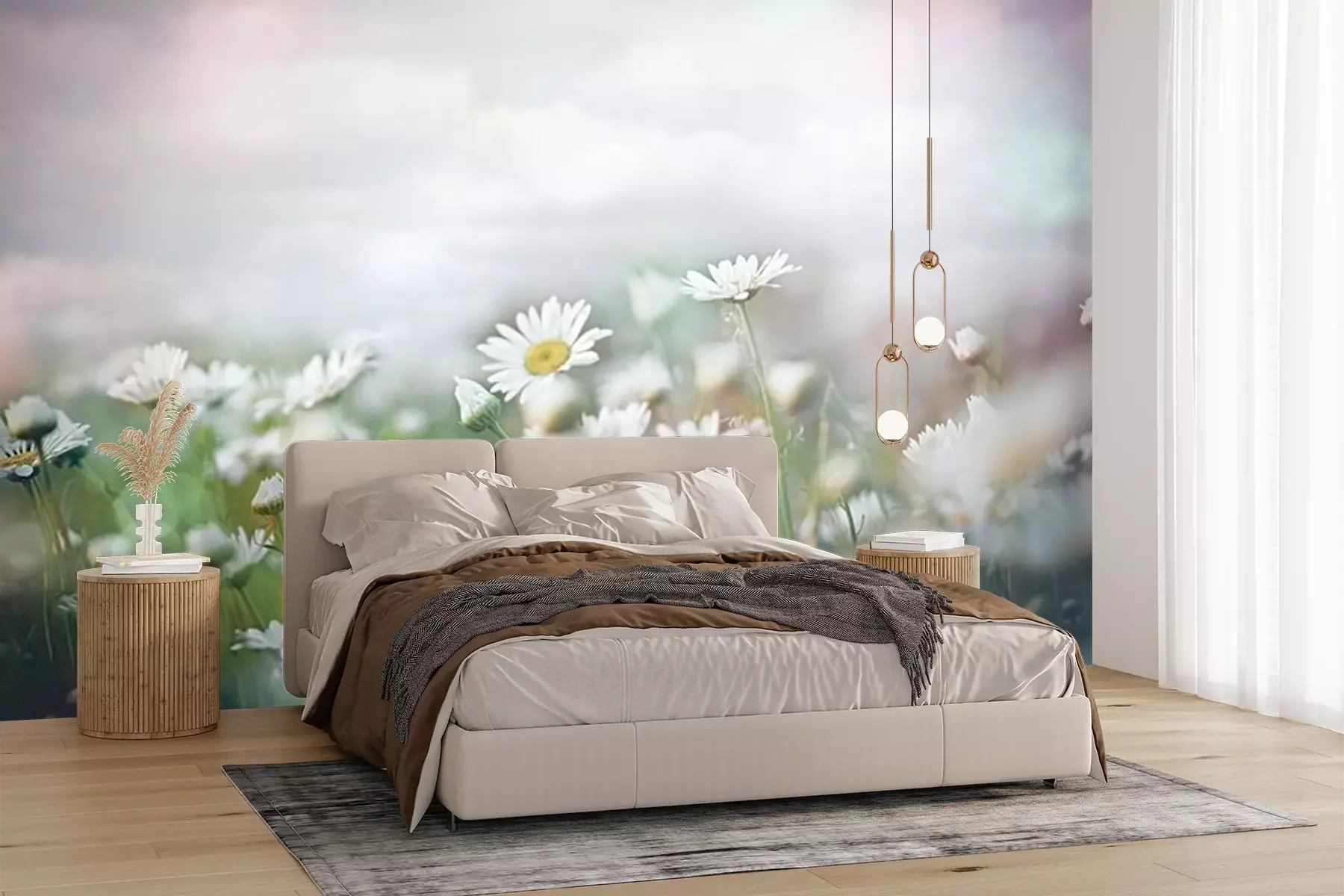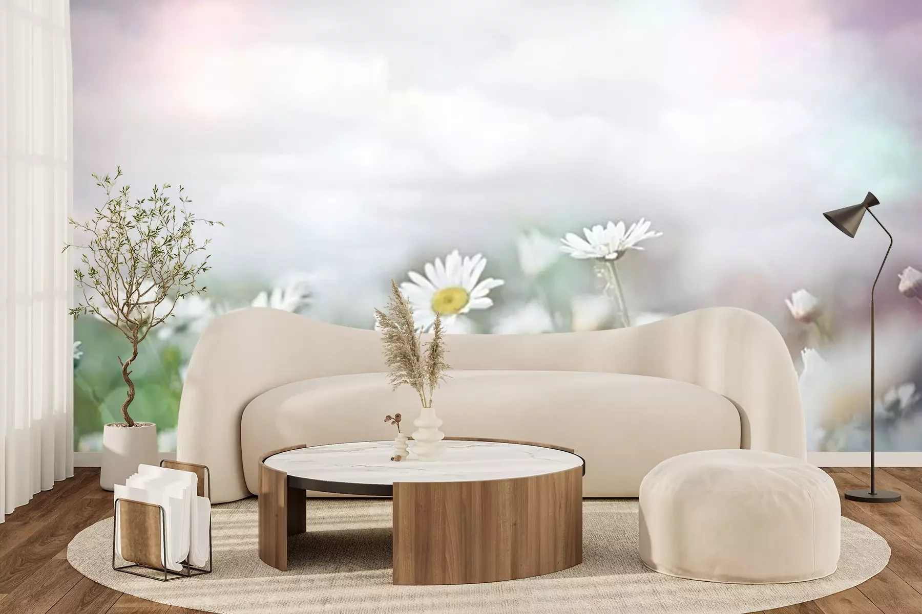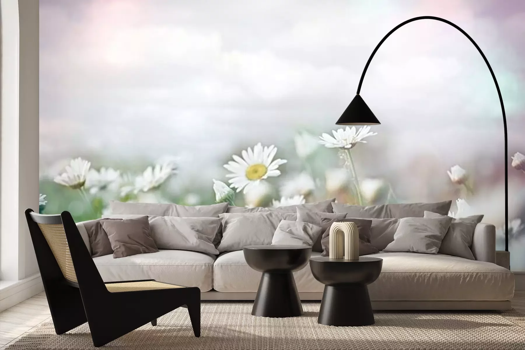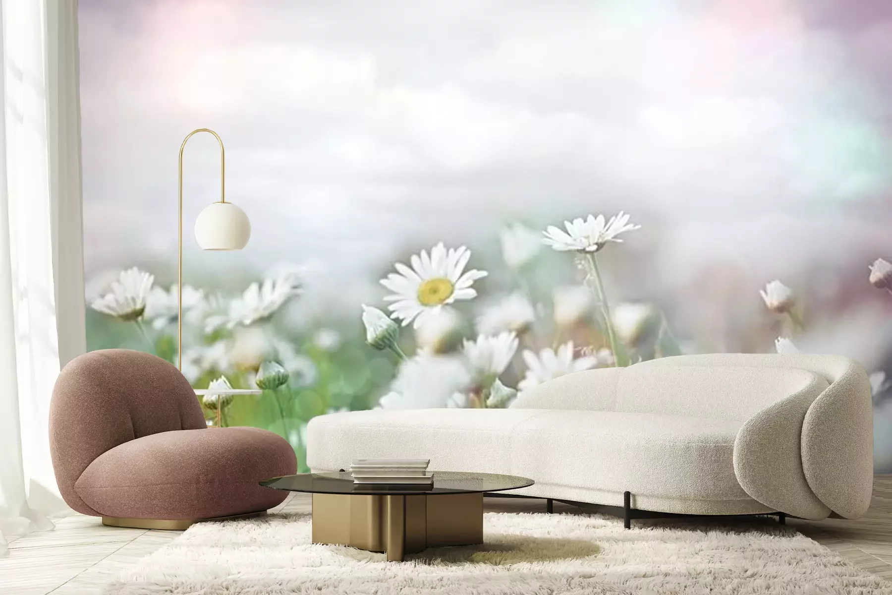 Fototapete Gänseblümchen mit Wolken im Hintergrund
