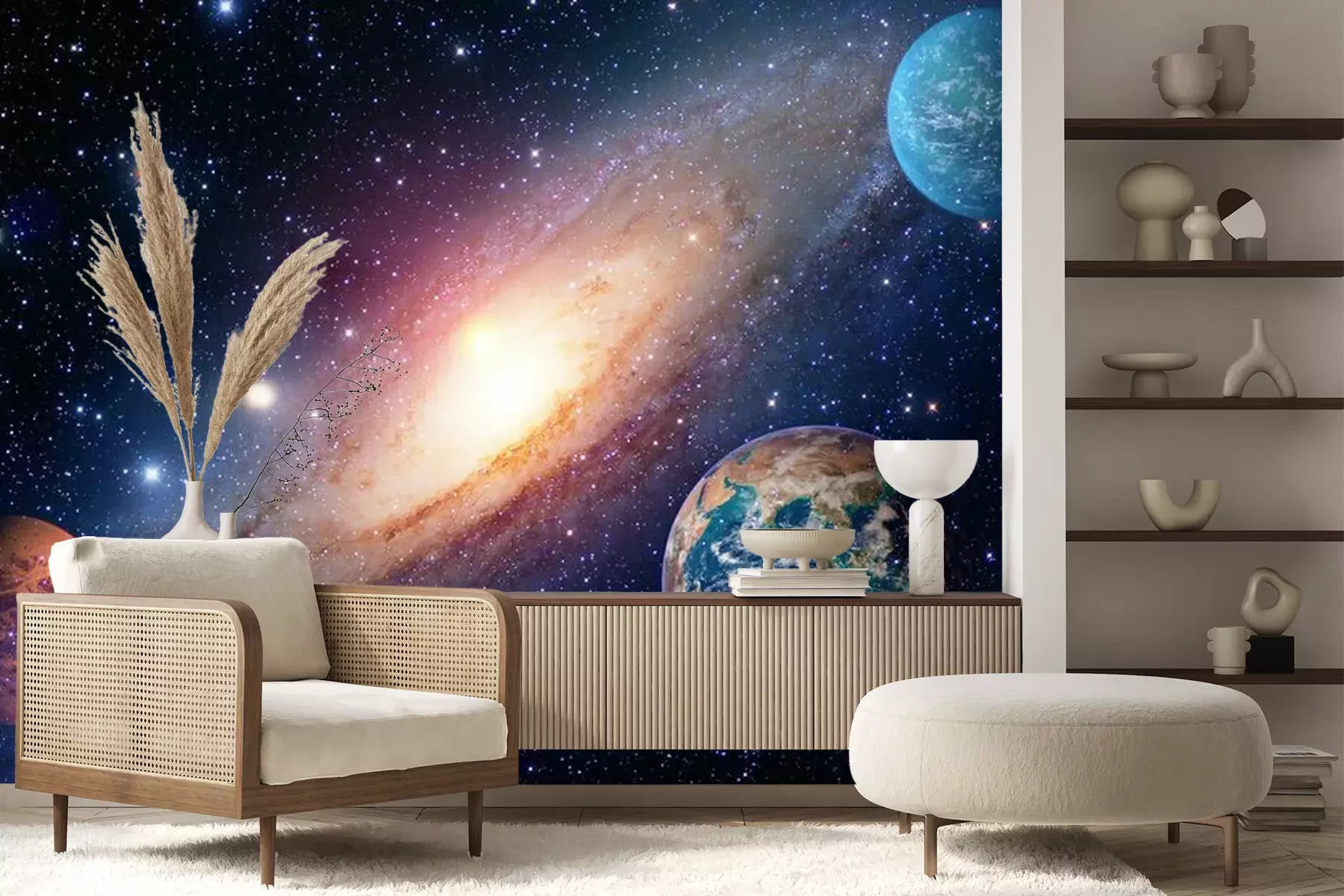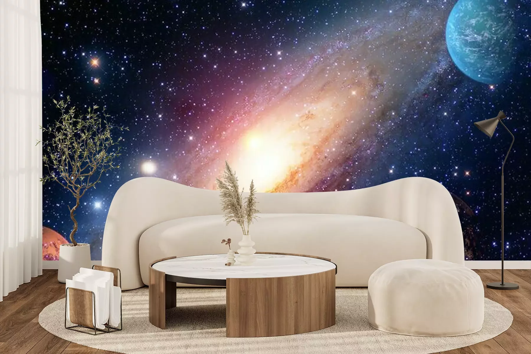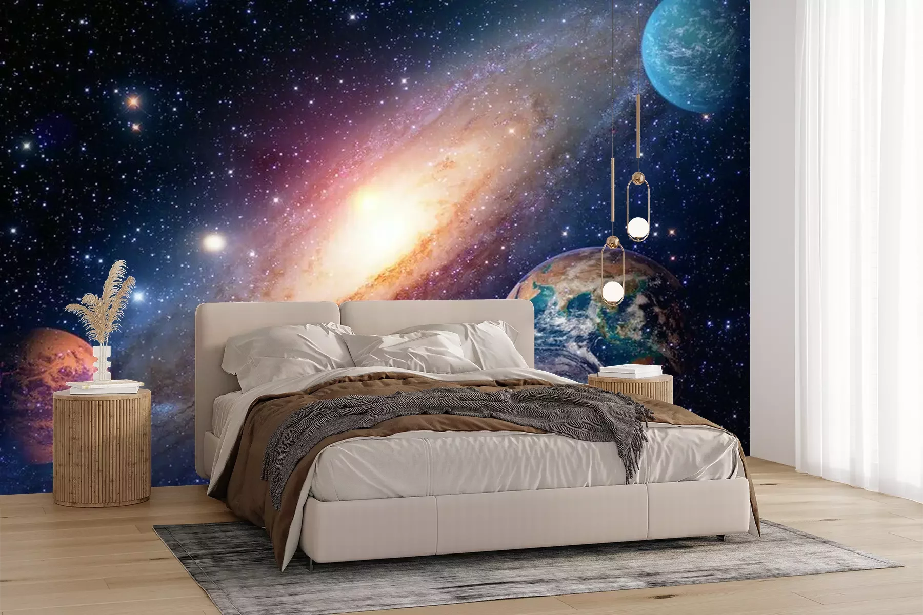 Das Material Premium+ besteht aus einer strukturierten Vinyl-Oberschicht und einem Trägermaterial (Vlies) mit einer Grammatur von 255 g/m², das kleine Unebenheiten der Wand zuverlässig kaschiert. Die feine Sandstruktur verleiht der Oberfläche eine luxuriöse Haptik, während das halbmatte Finish die Tiefe der Farben betont. Das Material ist dampfdurchlässig – so kann diese Fototapete auch in Küchen und Badezimmern eingesetzt werden. Die maximale Breite einer Tapetenbahn beträgt 100 cm. Bei größeren Abmessungen besteht die Fototapete aus mehreren gleich großen Bahnen. Der Kleber wird direkt auf die Wand aufgetragen, und die Fototapete wird auf Stoß angebracht, was für einen ästhetischen Effekt ohne sichtbare Fugen sorgt. Die Oberfläche ist pflegeleicht und kann bei Bedarf sanft mit einem feuchten Tuch abgewischt werden.