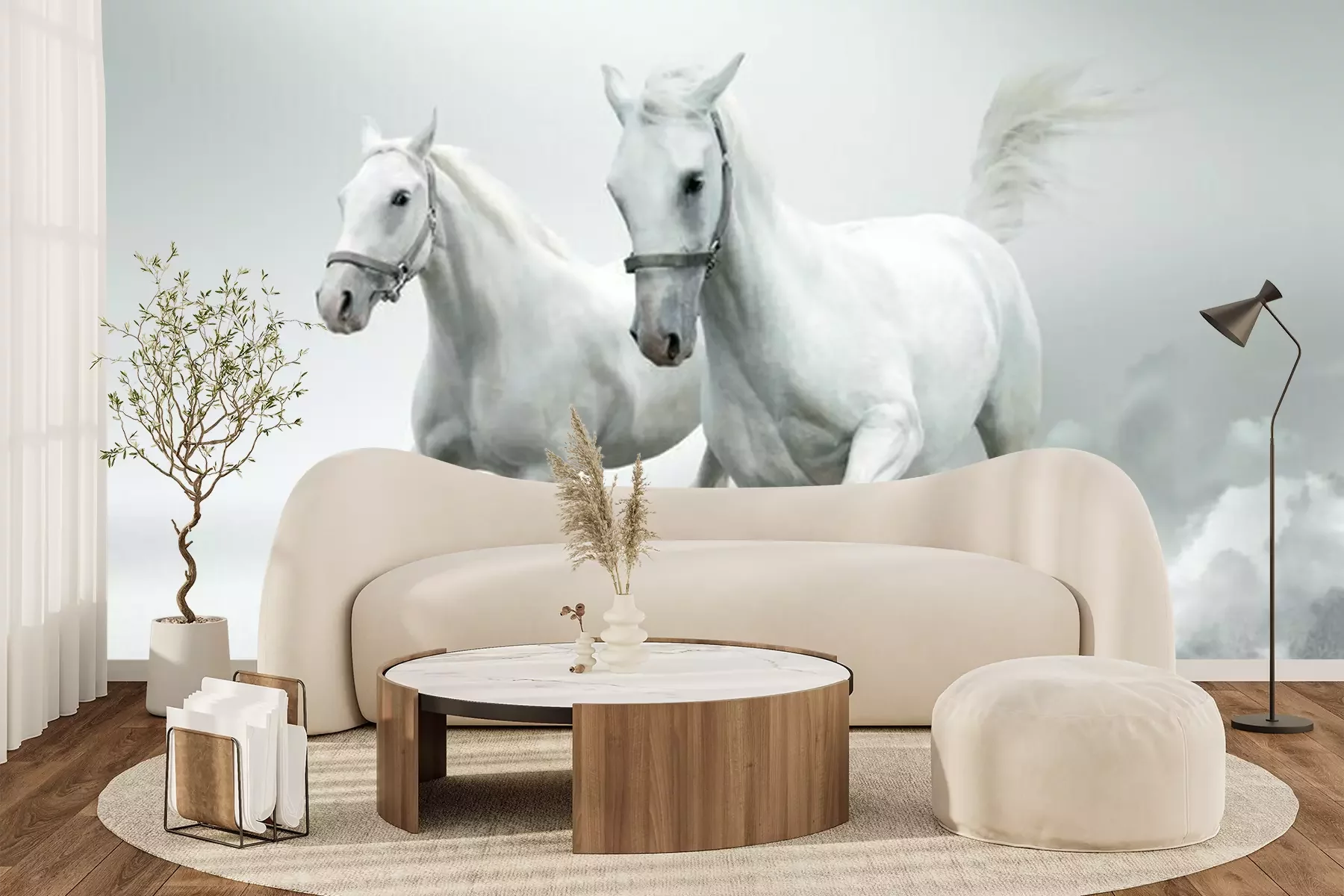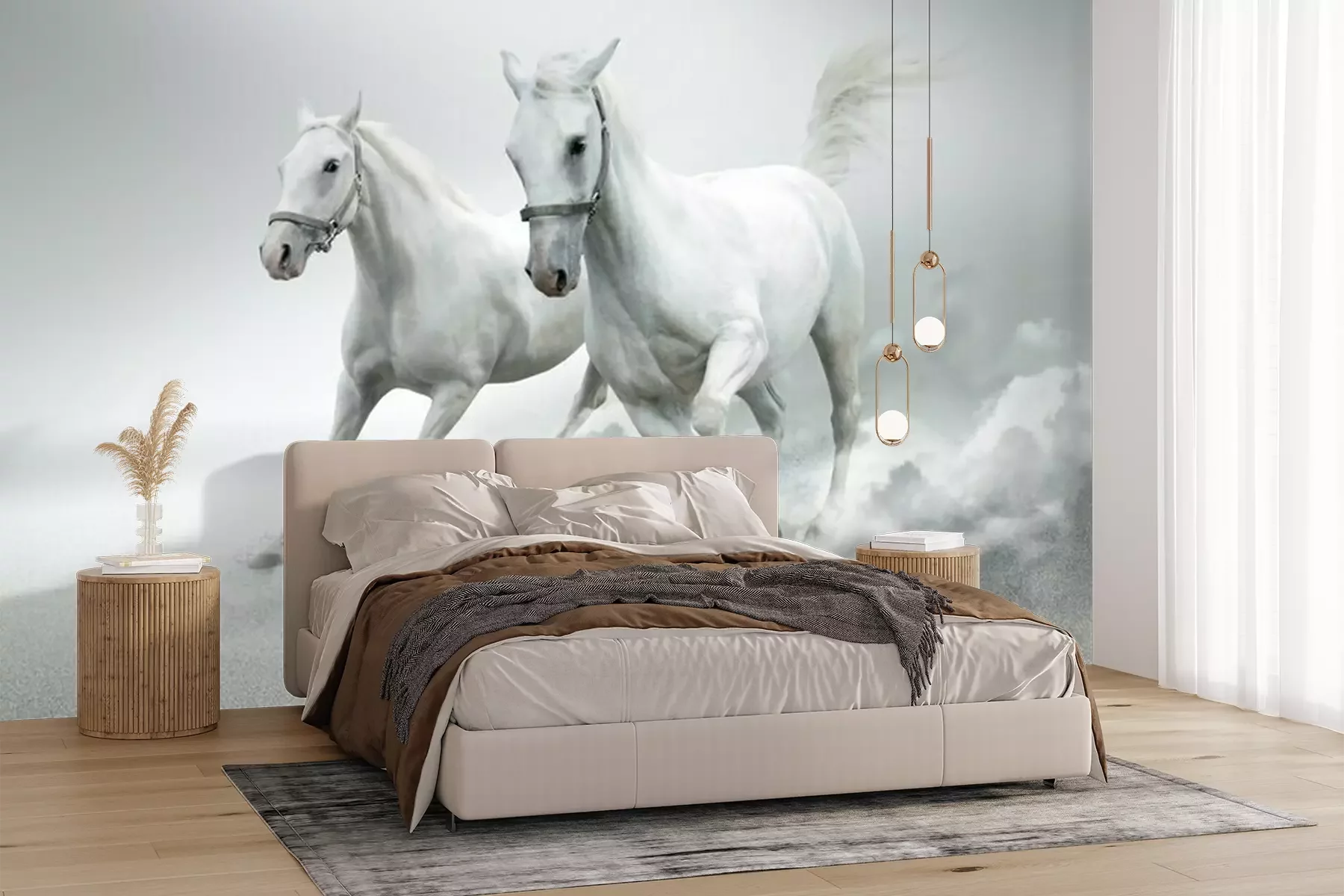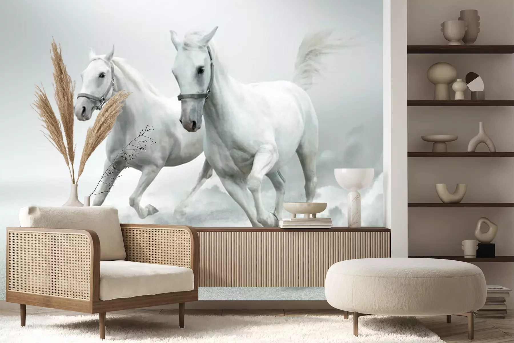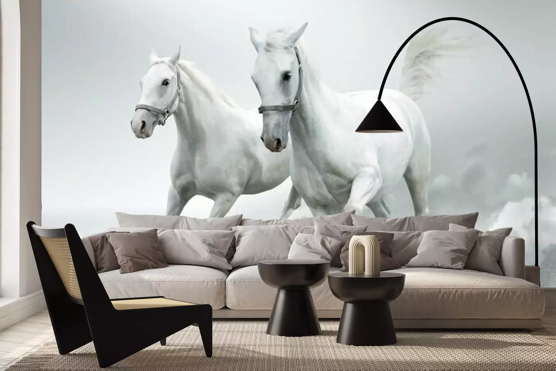 Fototapete Galoppierende pferde auf weißem hintergrund
