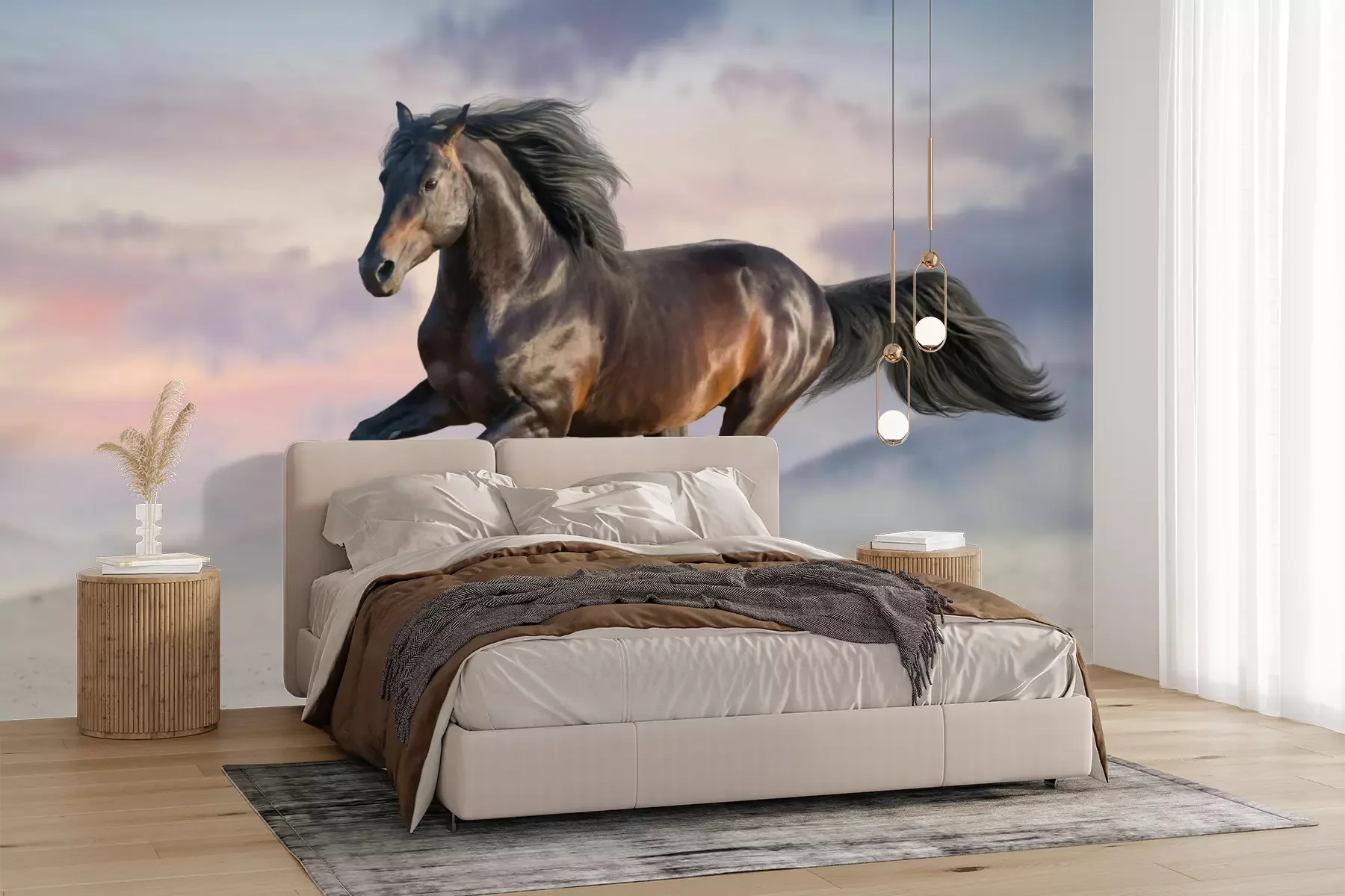 Die Fototapeten werden in Bahnen geliefert. Die Größe und die Anzahl der Bahnen, aus denen die gesamte Fototapete besteht, hängen vom gewählten Material ab. Wenn die Größe die maximale Breite des Materials überschreitet, besteht der Ausdruck aus mehreren gleich großen Bahnen.