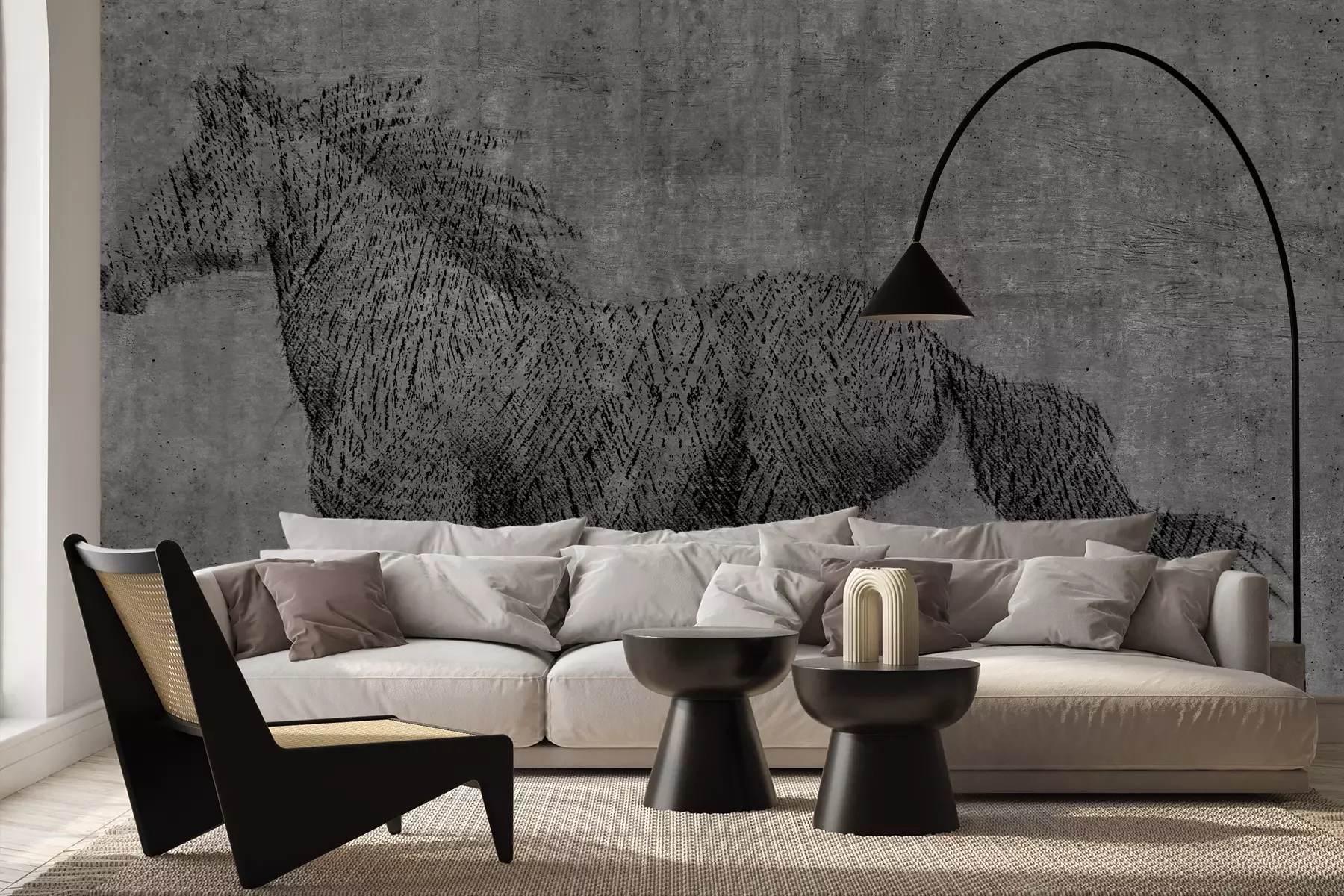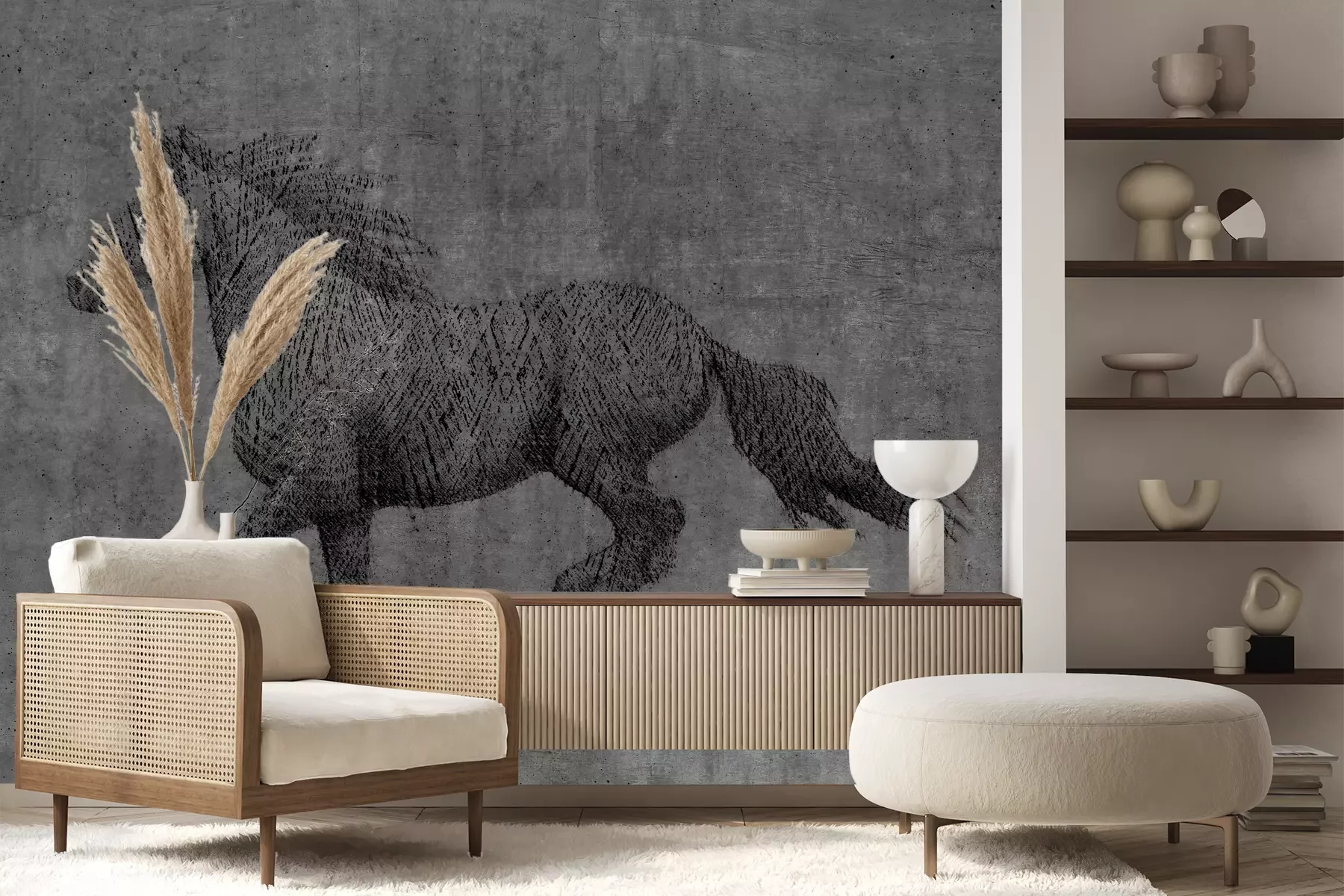 Das Material Premium+ besteht aus einer strukturierten Vinyl-Oberschicht und einem Trägermaterial (Vlies) mit einer Grammatur von 255 g/m², das kleine Unebenheiten der Wand zuverlässig kaschiert. Die feine Sandstruktur verleiht der Oberfläche eine luxuriöse Haptik, während das halbmatte Finish die Tiefe der Farben betont. Das Material ist dampfdurchlässig – so kann diese Fototapete auch in Küchen und Badezimmern eingesetzt werden. Die maximale Breite einer Tapetenbahn beträgt 100 cm. Bei größeren Abmessungen besteht die Fototapete aus mehreren gleich großen Bahnen. Der Kleber wird direkt auf die Wand aufgetragen, und die Fototapete wird auf Stoß angebracht, was für einen ästhetischen Effekt ohne sichtbare Fugen sorgt. Die Oberfläche ist pflegeleicht und kann bei Bedarf sanft mit einem feuchten Tuch abgewischt werden.