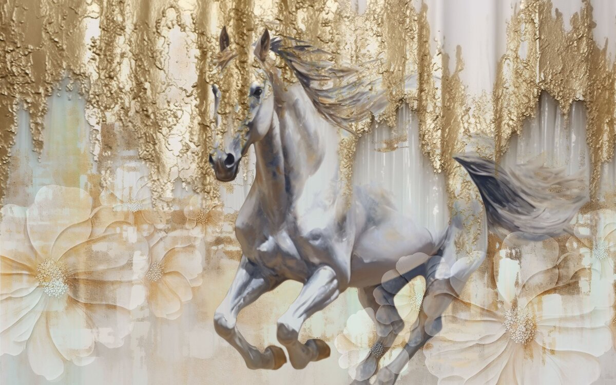 Fototapete: Galoppierendes Pferd mit Goldimitation