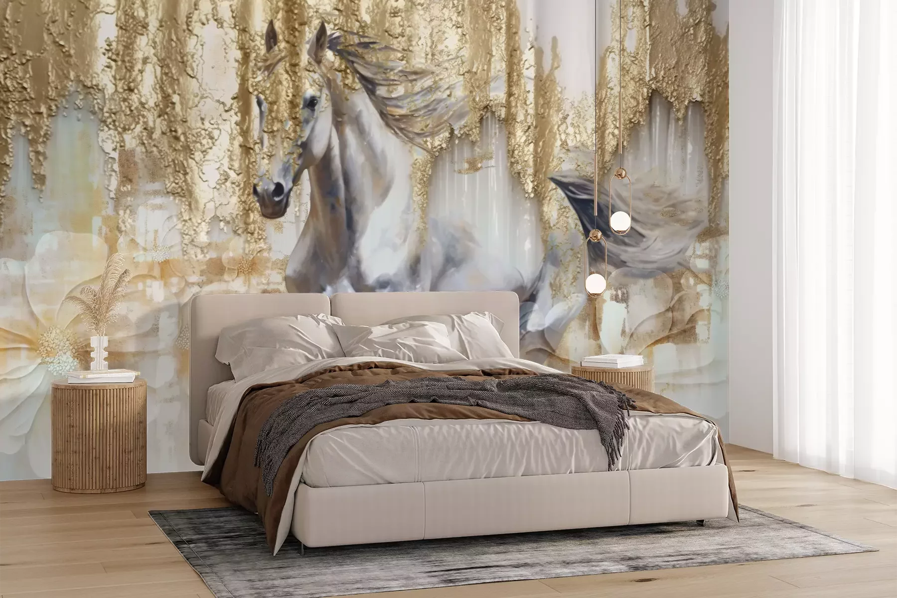 Das Material Premium+ besteht aus einer strukturierten Vinyl-Oberschicht und einem Trägermaterial (Vlies) mit einer Grammatur von 255 g/m², das kleine Unebenheiten der Wand zuverlässig kaschiert. Die feine Sandstruktur verleiht der Oberfläche eine luxuriöse Haptik, während das halbmatte Finish die Tiefe der Farben betont. Das Material ist dampfdurchlässig – so kann diese Fototapete auch in Küchen und Badezimmern eingesetzt werden. Die maximale Breite einer Tapetenbahn beträgt 100 cm. Bei größeren Abmessungen besteht die Fototapete aus mehreren gleich großen Bahnen. Der Kleber wird direkt auf die Wand aufgetragen, und die Fototapete wird auf Stoß angebracht, was für einen ästhetischen Effekt ohne sichtbare Fugen sorgt. Die Oberfläche ist pflegeleicht und kann bei Bedarf sanft mit einem feuchten Tuch abgewischt werden.