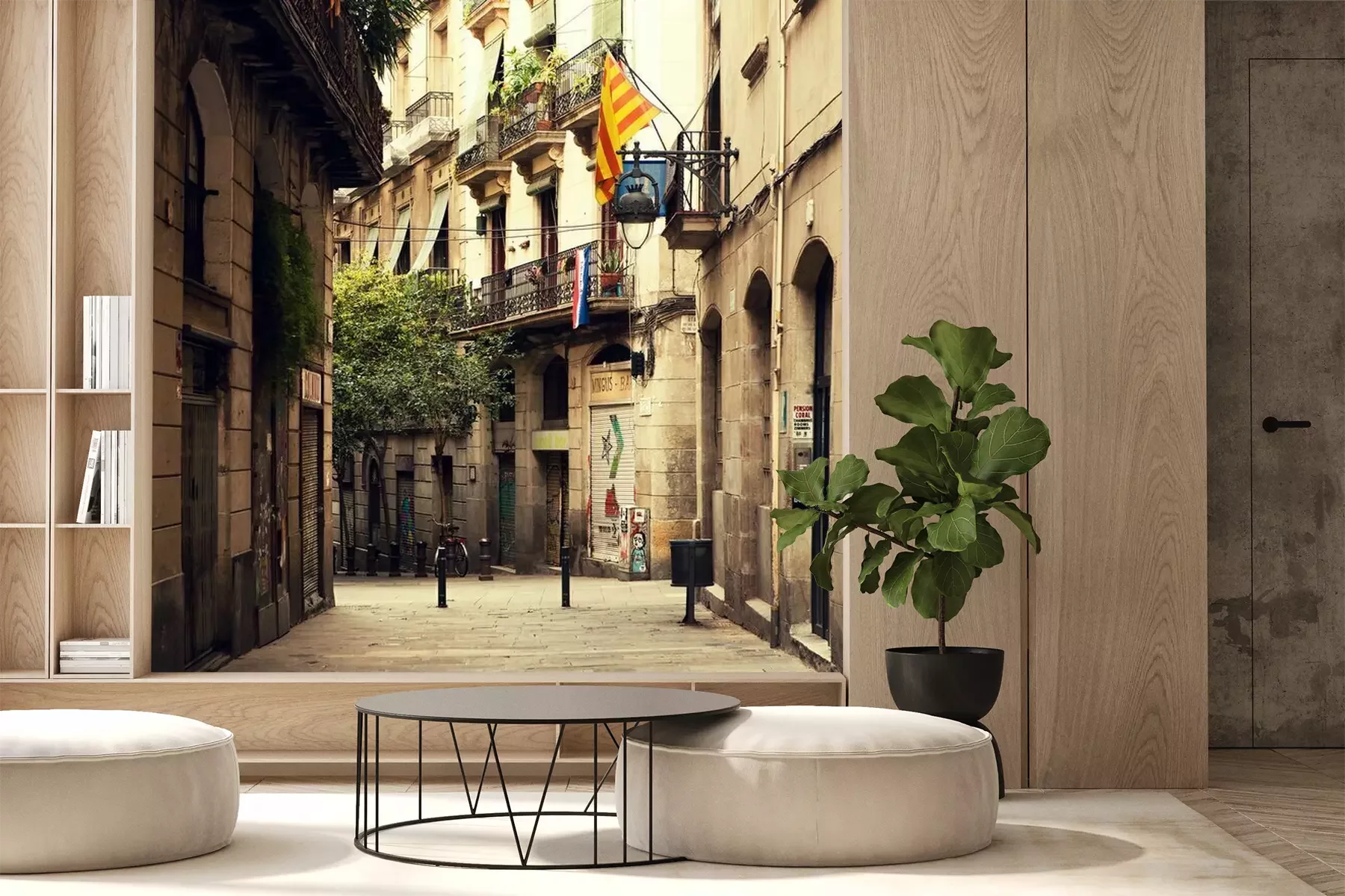 Das Material Premium+ besteht aus einer strukturierten Vinyl-Oberschicht und einem Trägermaterial (Vlies) mit einer Grammatur von 255 g/m², das kleine Unebenheiten der Wand zuverlässig kaschiert. Die feine Sandstruktur verleiht der Oberfläche eine luxuriöse Haptik, während das halbmatte Finish die Tiefe der Farben betont. Das Material ist dampfdurchlässig – so kann diese Fototapete auch in Küchen und Badezimmern eingesetzt werden. Die maximale Breite einer Tapetenbahn beträgt 100 cm. Bei größeren Abmessungen besteht die Fototapete aus mehreren gleich großen Bahnen. Der Kleber wird direkt auf die Wand aufgetragen, und die Fototapete wird auf Stoß angebracht, was für einen ästhetischen Effekt ohne sichtbare Fugen sorgt. Die Oberfläche ist pflegeleicht und kann bei Bedarf sanft mit einem feuchten Tuch abgewischt werden.