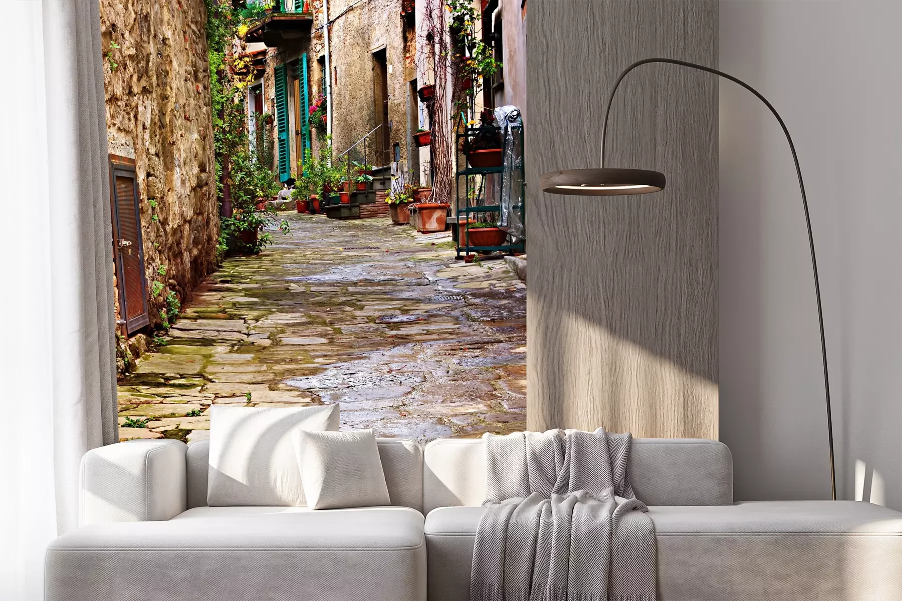 Das Material Premium besteht aus einer glatten Vinyl-Oberschicht und einem Trägermaterial (Vlies), das dehnungsfest und verformungsbeständig ist. Es ist dampfdurchlässig und atmungsaktiv. So können solche Fototapeten in Küchen und Badezimmern verwendet werden. Bei Verschmutzung kann das Material mit einem feuchten Tuch abgewischt werden. Die maximale Breite einer Tapetenbahn beträgt 95 cm oder 105 cm – je nach Verfügbarkeit. Unsere Fototapeten sind für die Tapeziermethode auf Stoß konzipiert. So erzielen Sie einen ästhetischen Effekt ohne sichtbare Fugen. Das Auftragen des Klebers auf die Wand macht die Anbringung der Fototapete schnell und bequem.