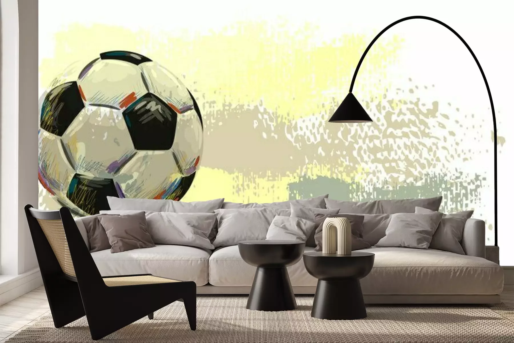 Ein Fußball vor einem Farbklecks-HintergrundSticker