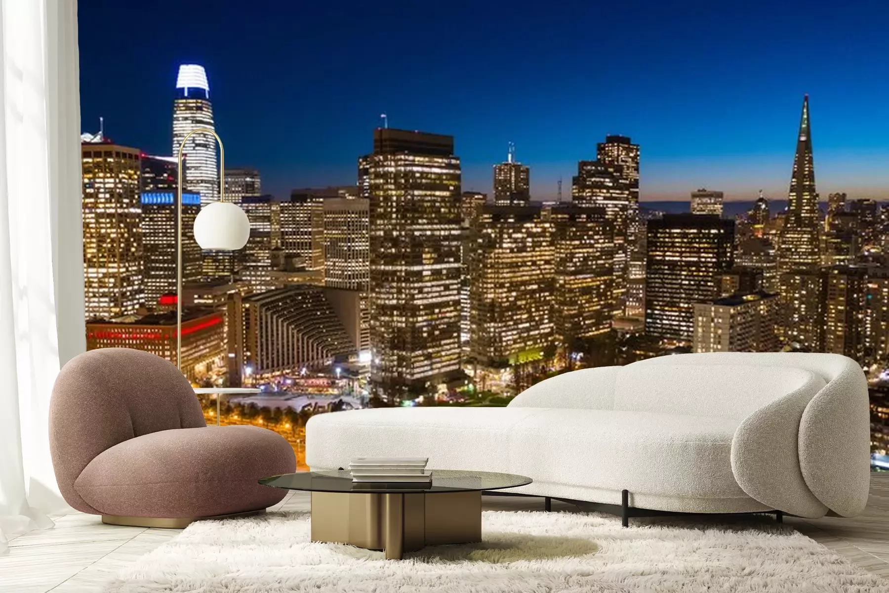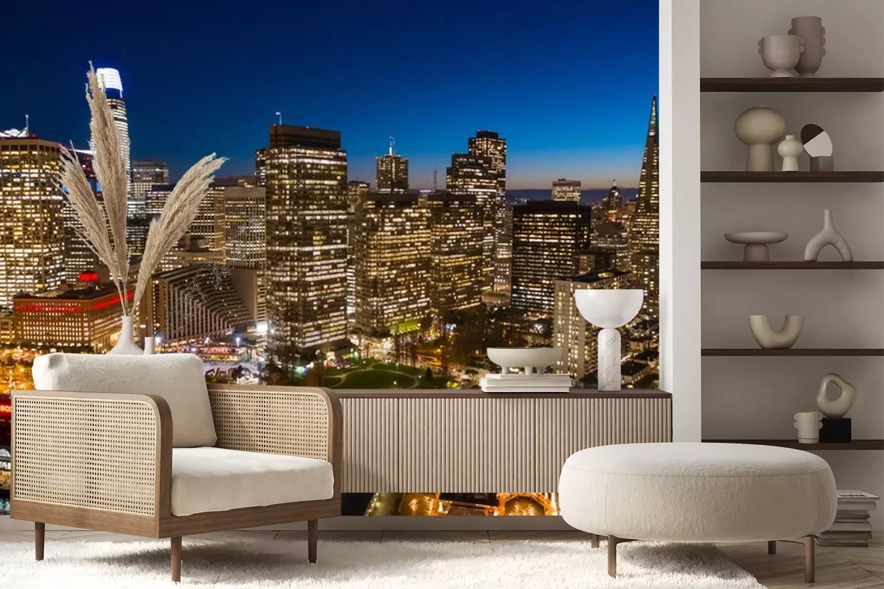 Fototapete Gebäude auf nächtlichem Panorama von San Francisco