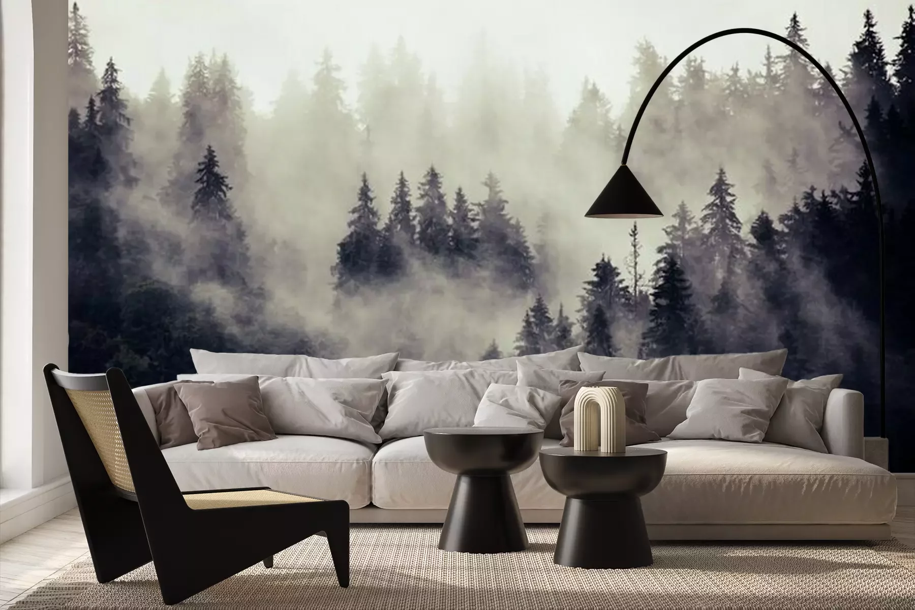 Stahlgrauer wald im nebelFototapete