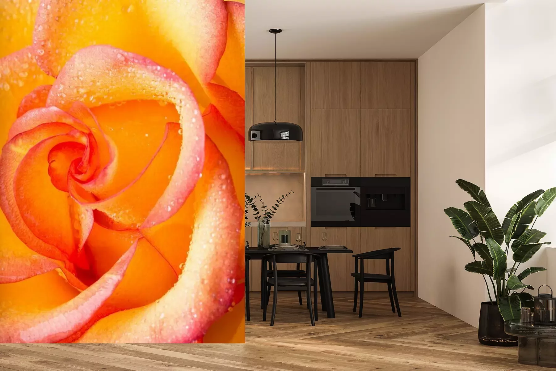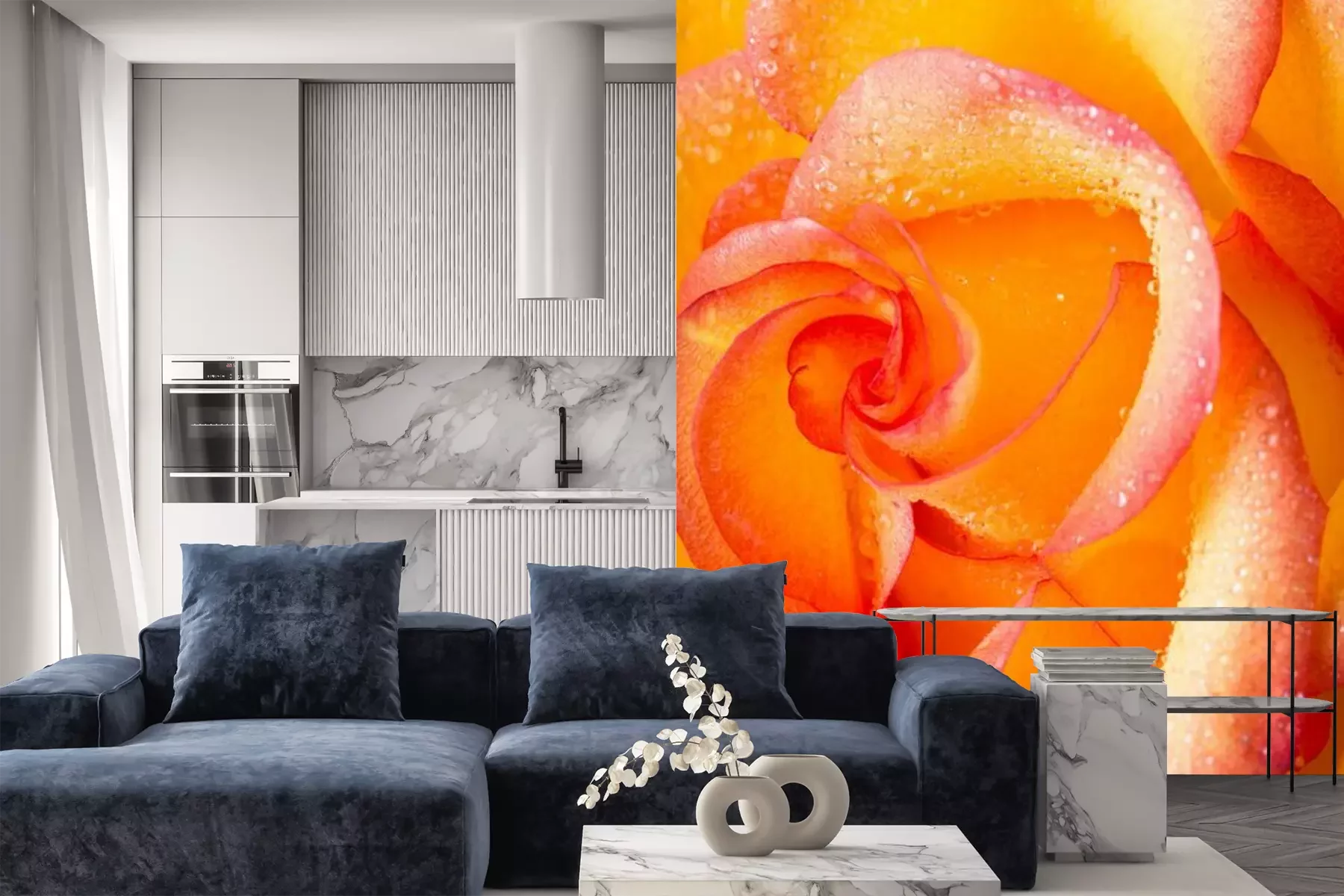 Fototapete Gelb-orange Rose in Nahaufnahme