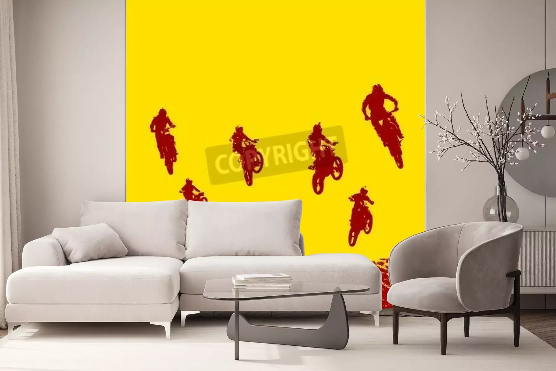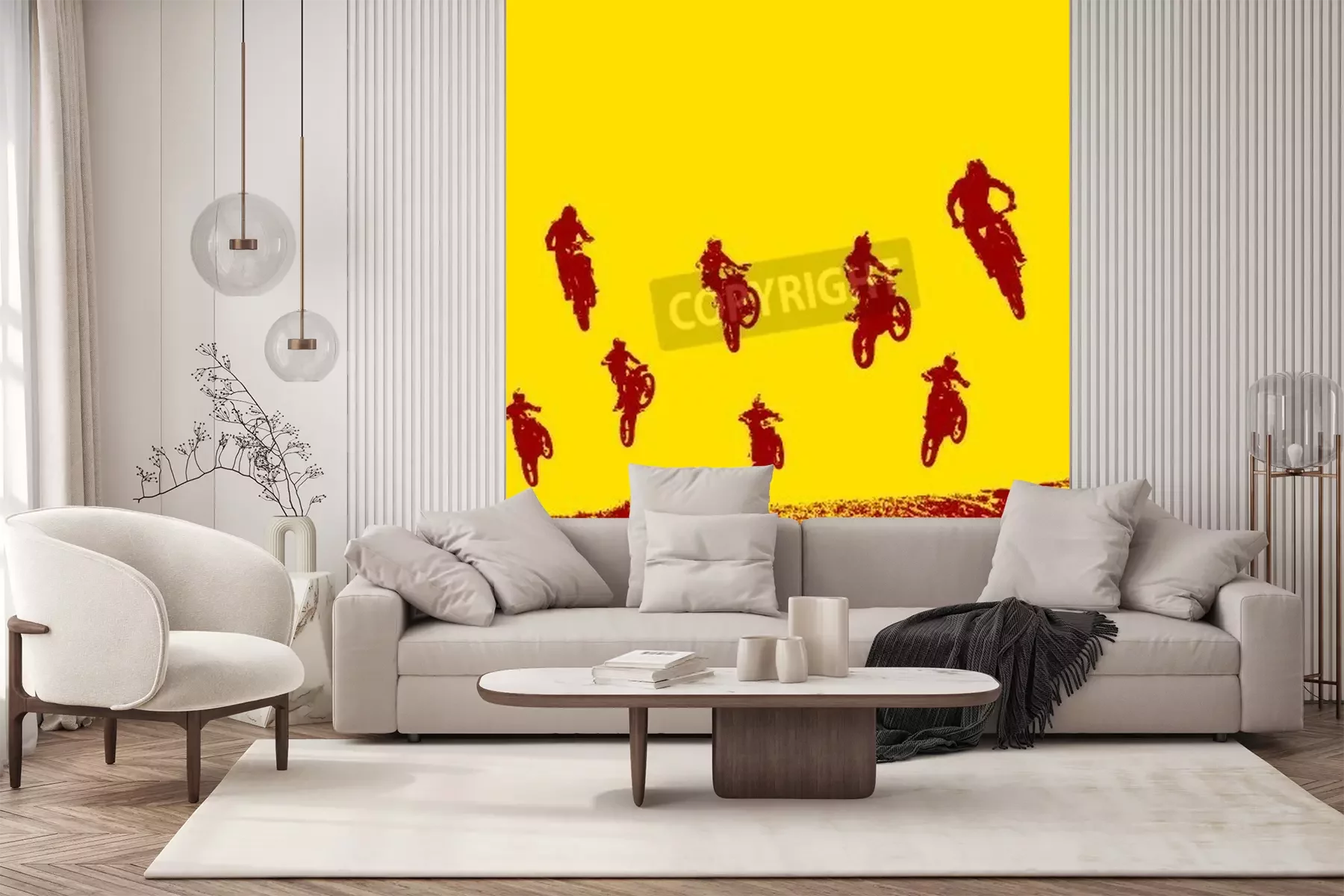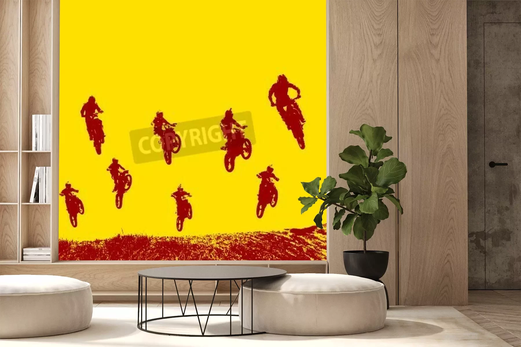 Fototapete Gelb-rote Grafik mit Motorradfahrern