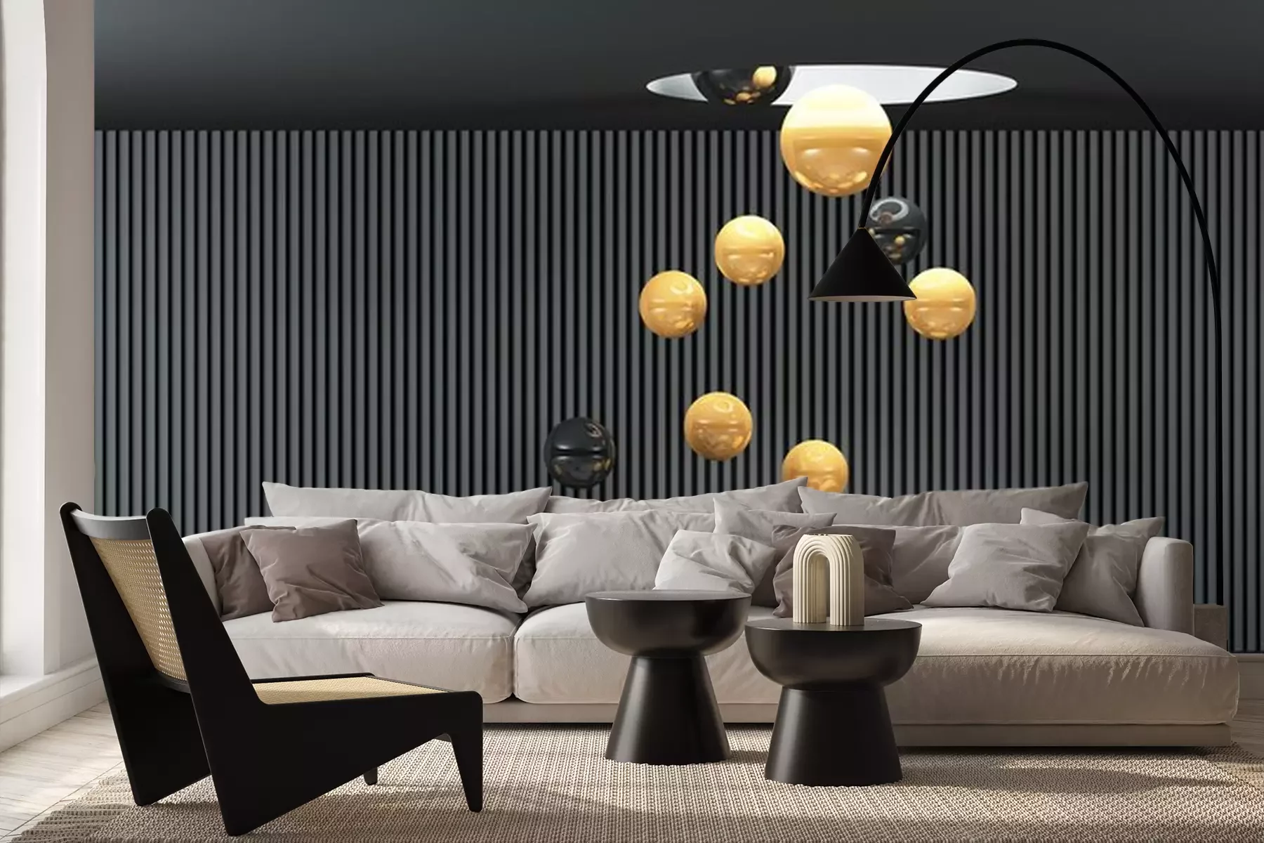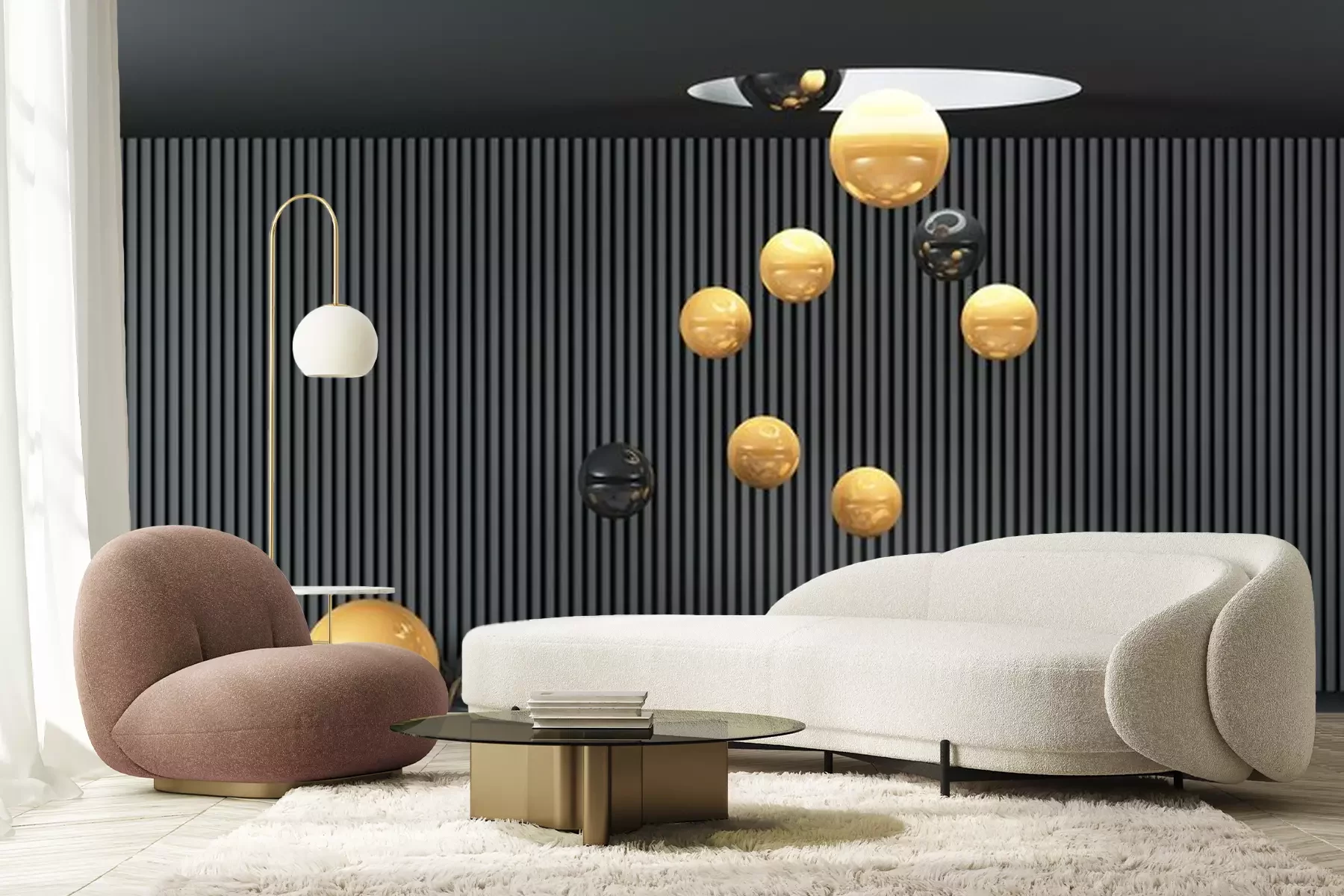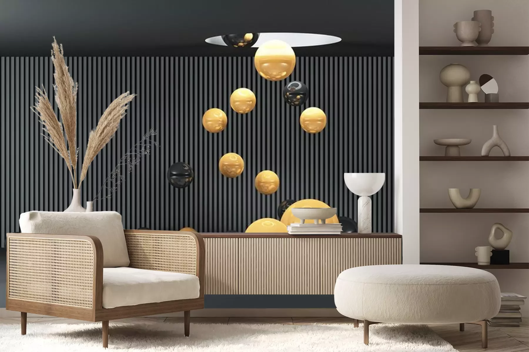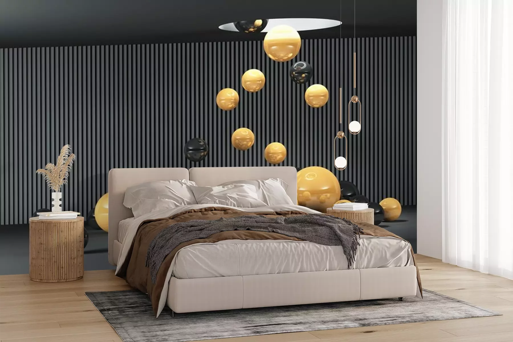 Fototapete Gelbe und schwarze Kugeln im Korridor
