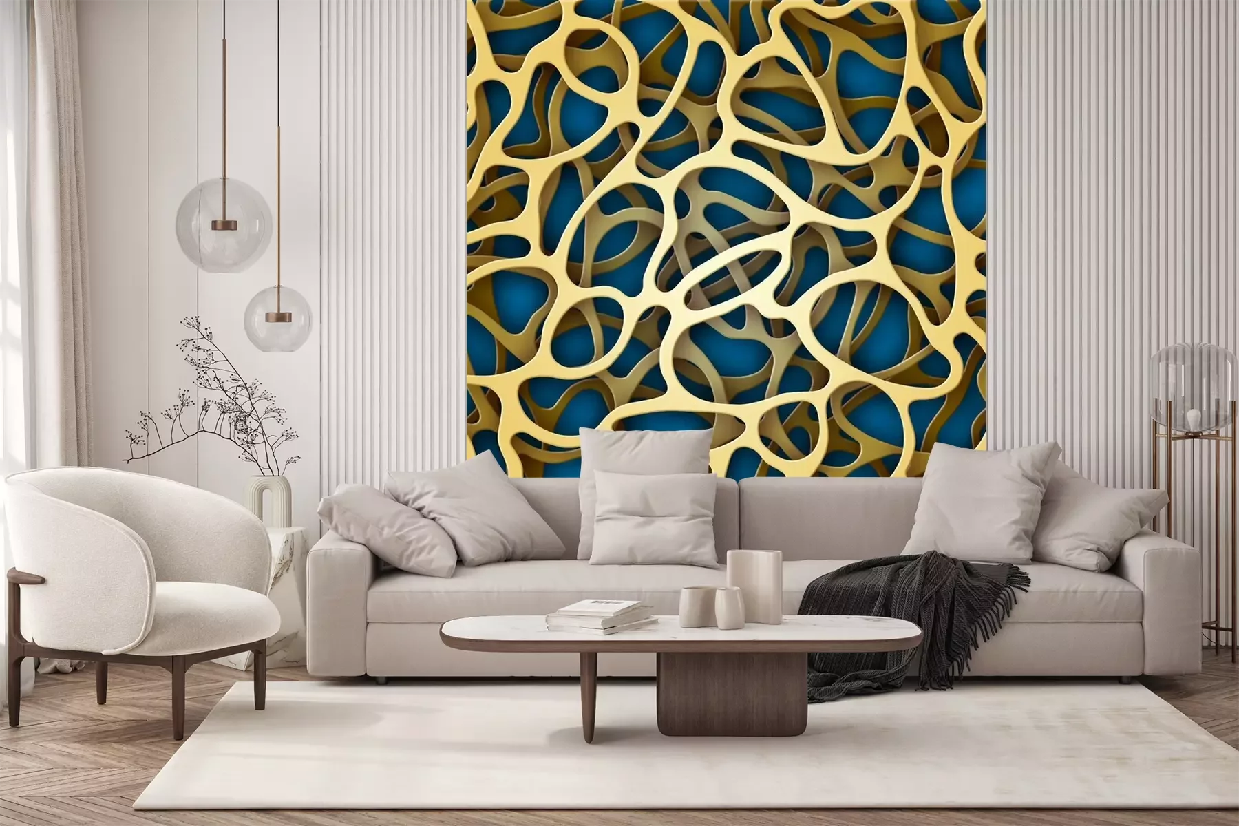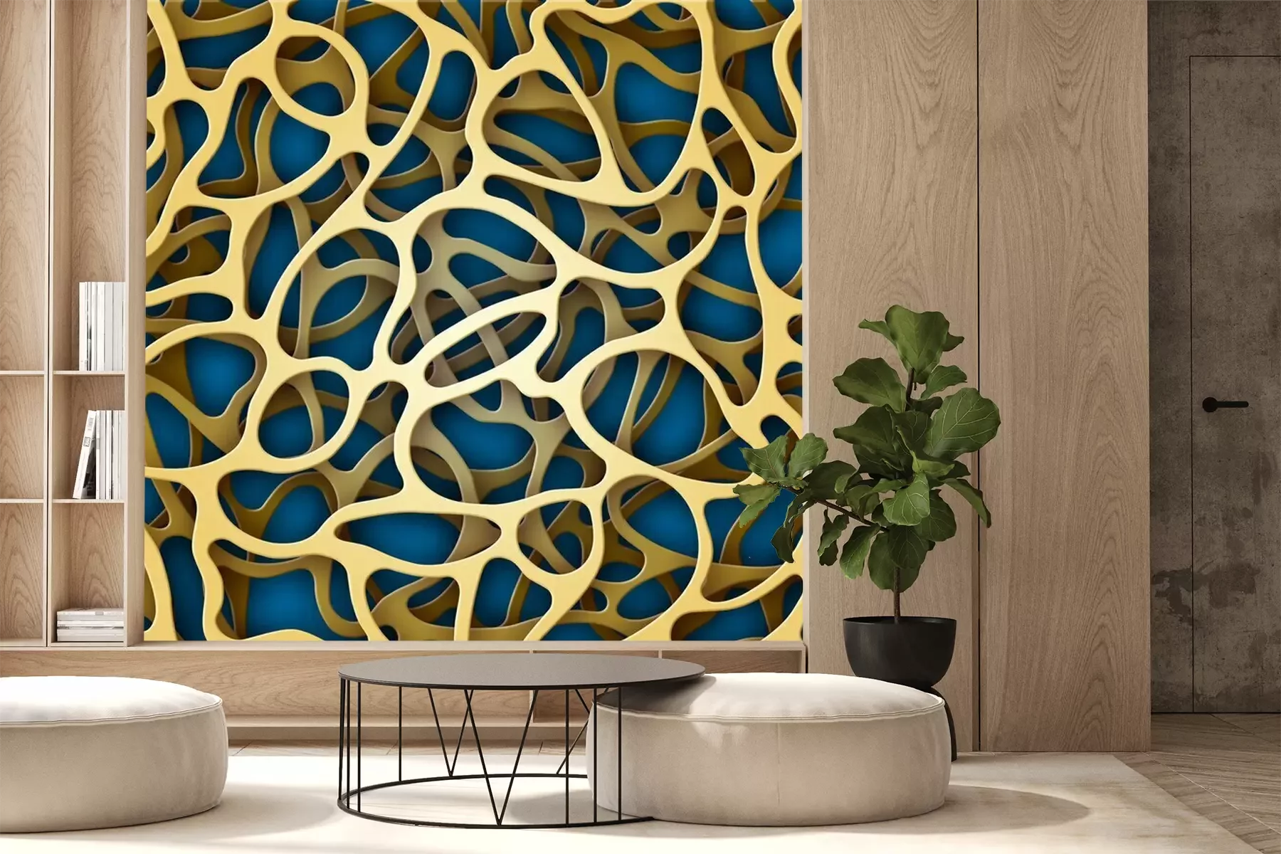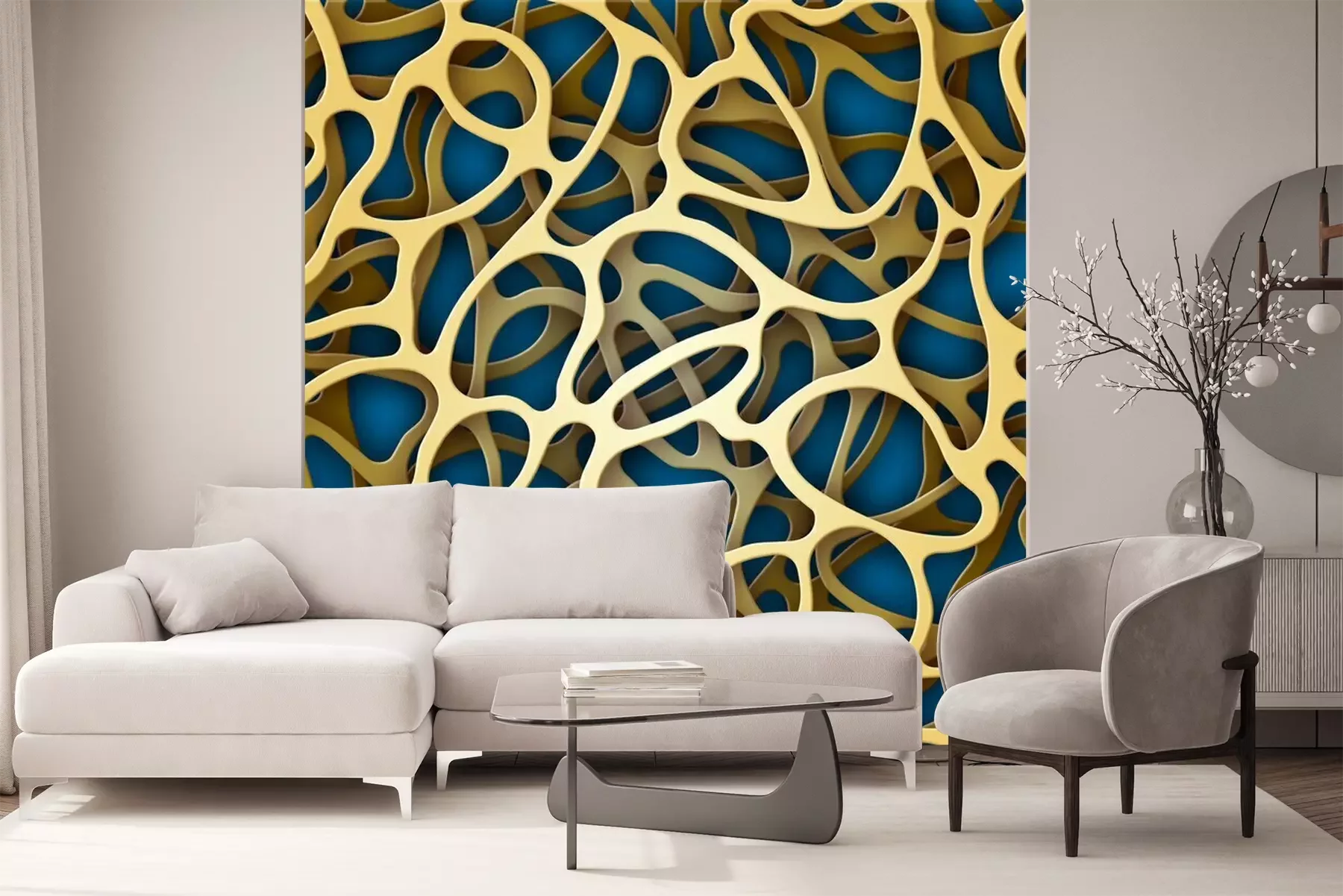 Fototapete Gelbes Muster vor blauem Hintergrund