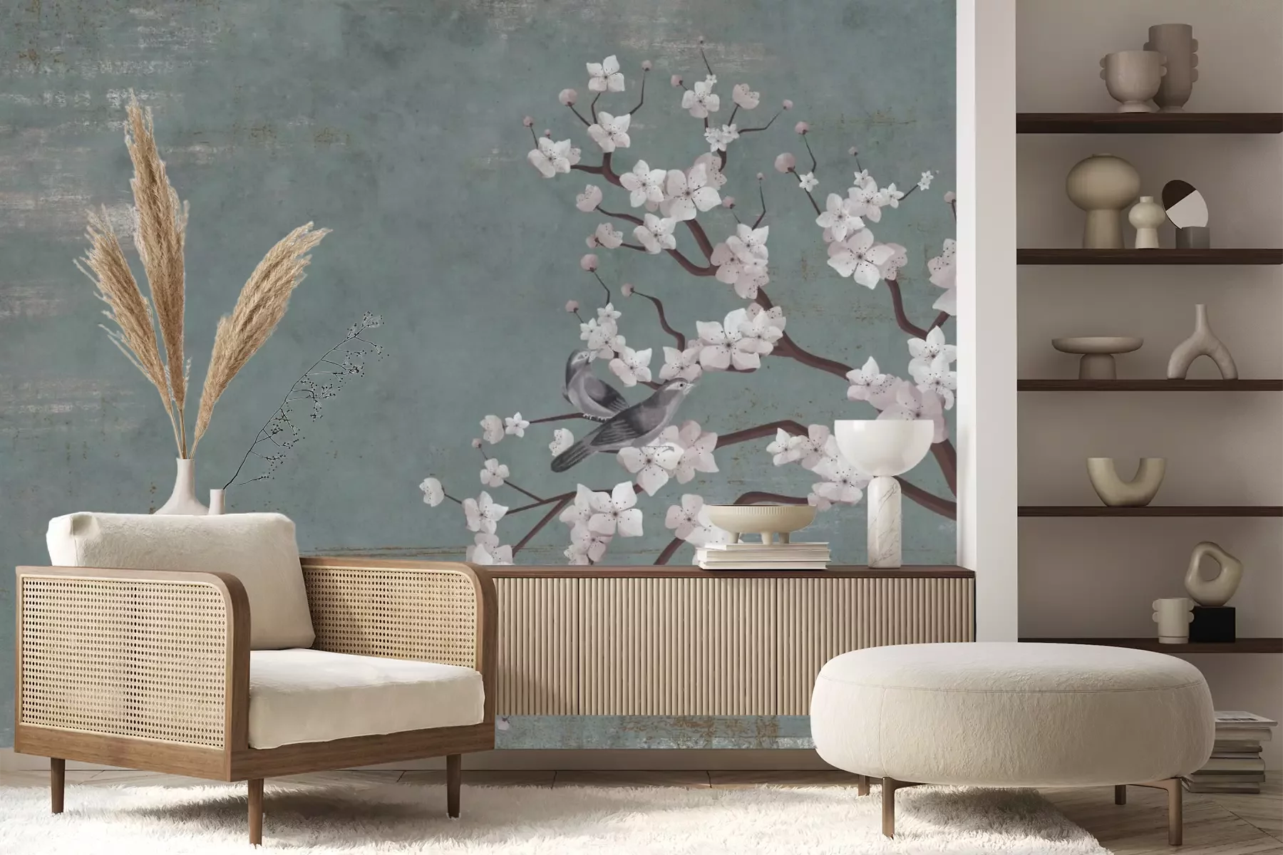 Das Material Premium+ besteht aus einer strukturierten Vinyl-Oberschicht und einem Trägermaterial (Vlies) mit einer Grammatur von 255 g/m², das kleine Unebenheiten der Wand zuverlässig kaschiert. Die feine Sandstruktur verleiht der Oberfläche eine luxuriöse Haptik, während das halbmatte Finish die Tiefe der Farben betont. Das Material ist dampfdurchlässig – so kann diese Fototapete auch in Küchen und Badezimmern eingesetzt werden. Die maximale Breite einer Tapetenbahn beträgt 100 cm. Bei größeren Abmessungen besteht die Fototapete aus mehreren gleich großen Bahnen. Der Kleber wird direkt auf die Wand aufgetragen, und die Fototapete wird auf Stoß angebracht, was für einen ästhetischen Effekt ohne sichtbare Fugen sorgt. Die Oberfläche ist pflegeleicht und kann bei Bedarf sanft mit einem feuchten Tuch abgewischt werden.