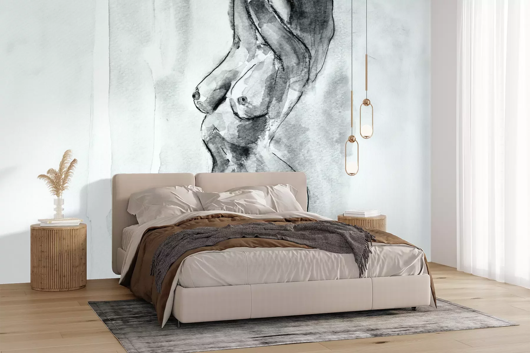 Das Material Premium+ besteht aus einer strukturierten Vinyl-Oberschicht und einem Trägermaterial (Vlies) mit einer Grammatur von 255 g/m², das kleine Unebenheiten der Wand zuverlässig kaschiert. Die feine Sandstruktur verleiht der Oberfläche eine luxuriöse Haptik, während das halbmatte Finish die Tiefe der Farben betont. Das Material ist dampfdurchlässig – so kann diese Fototapete auch in Küchen und Badezimmern eingesetzt werden. Die maximale Breite einer Tapetenbahn beträgt 100 cm. Bei größeren Abmessungen besteht die Fototapete aus mehreren gleich großen Bahnen. Der Kleber wird direkt auf die Wand aufgetragen, und die Fototapete wird auf Stoß angebracht, was für einen ästhetischen Effekt ohne sichtbare Fugen sorgt. Die Oberfläche ist pflegeleicht und kann bei Bedarf sanft mit einem feuchten Tuch abgewischt werden.