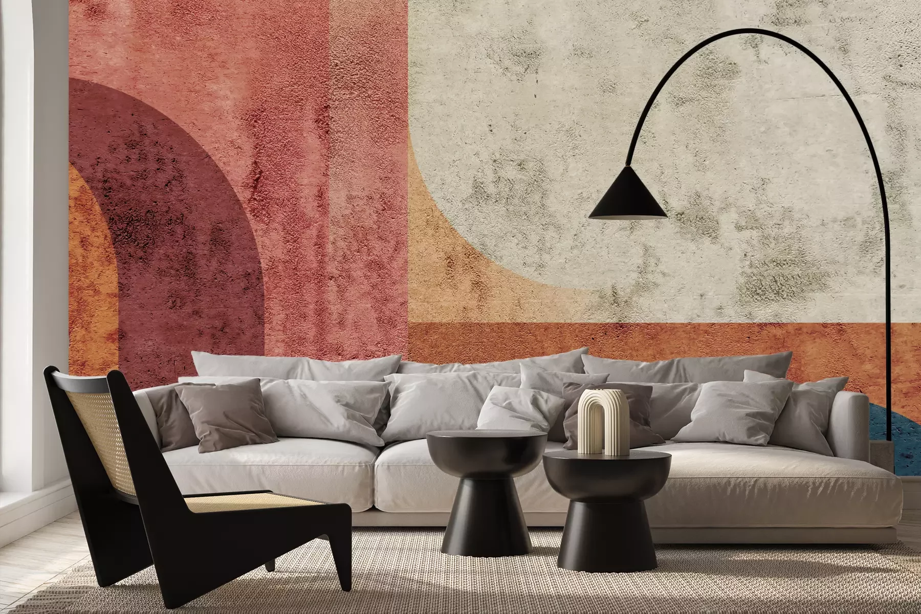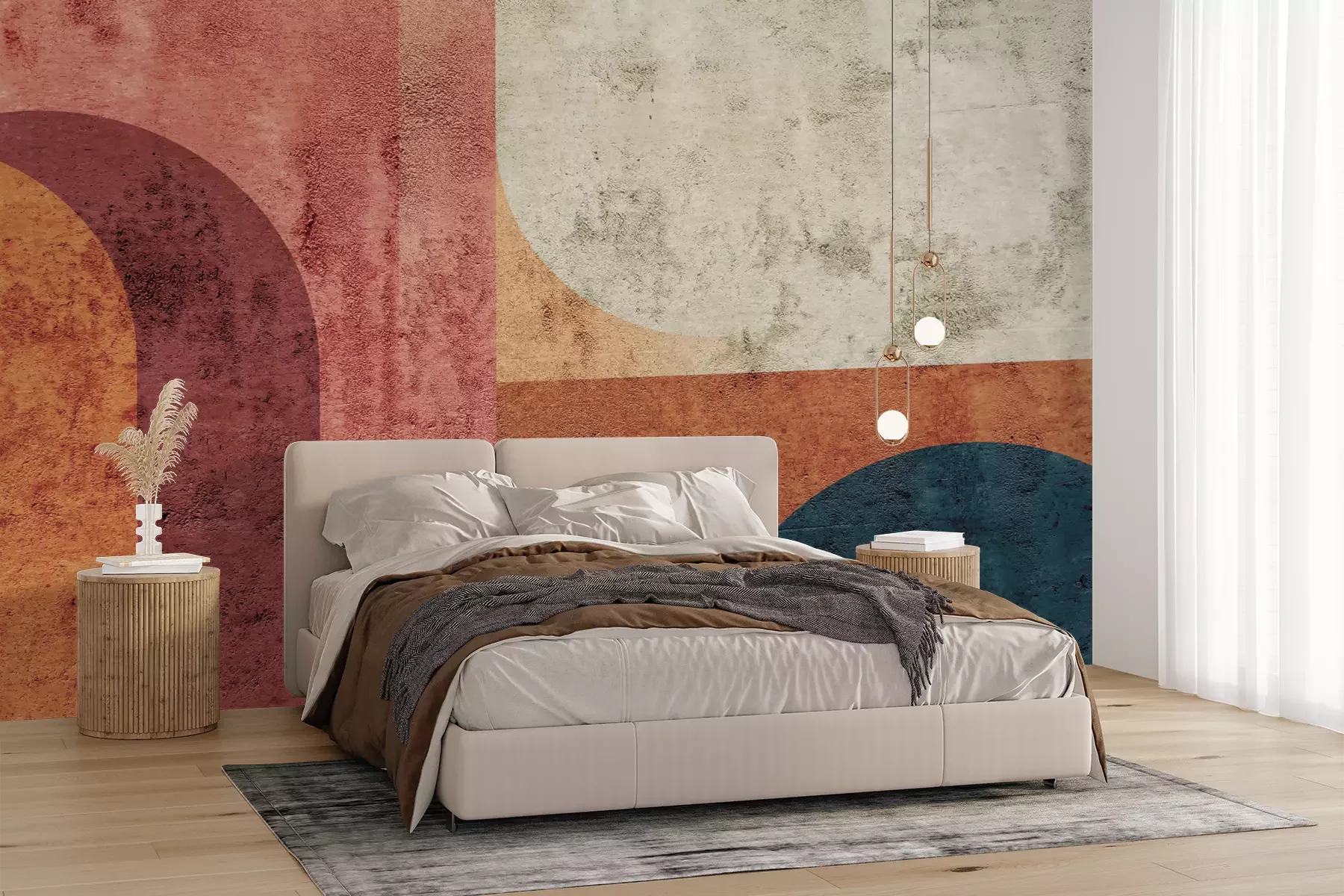 Das Material Premium+ besteht aus einer strukturierten Vinyl-Oberschicht und einem Trägermaterial (Vlies) mit einer Grammatur von 255 g/m², das kleine Unebenheiten der Wand zuverlässig kaschiert. Die feine Sandstruktur verleiht der Oberfläche eine luxuriöse Haptik, während das halbmatte Finish die Tiefe der Farben betont. Das Material ist dampfdurchlässig – so kann diese Fototapete auch in Küchen und Badezimmern eingesetzt werden. Die maximale Breite einer Tapetenbahn beträgt 100 cm. Bei größeren Abmessungen besteht die Fototapete aus mehreren gleich großen Bahnen. Der Kleber wird direkt auf die Wand aufgetragen, und die Fototapete wird auf Stoß angebracht, was für einen ästhetischen Effekt ohne sichtbare Fugen sorgt. Die Oberfläche ist pflegeleicht und kann bei Bedarf sanft mit einem feuchten Tuch abgewischt werden.