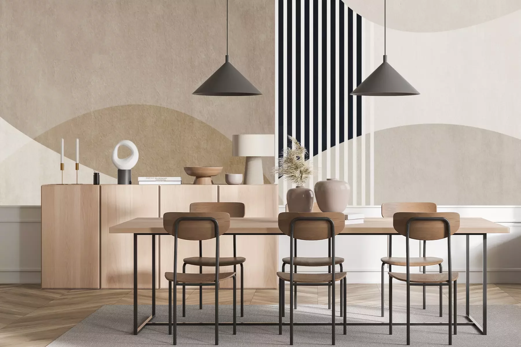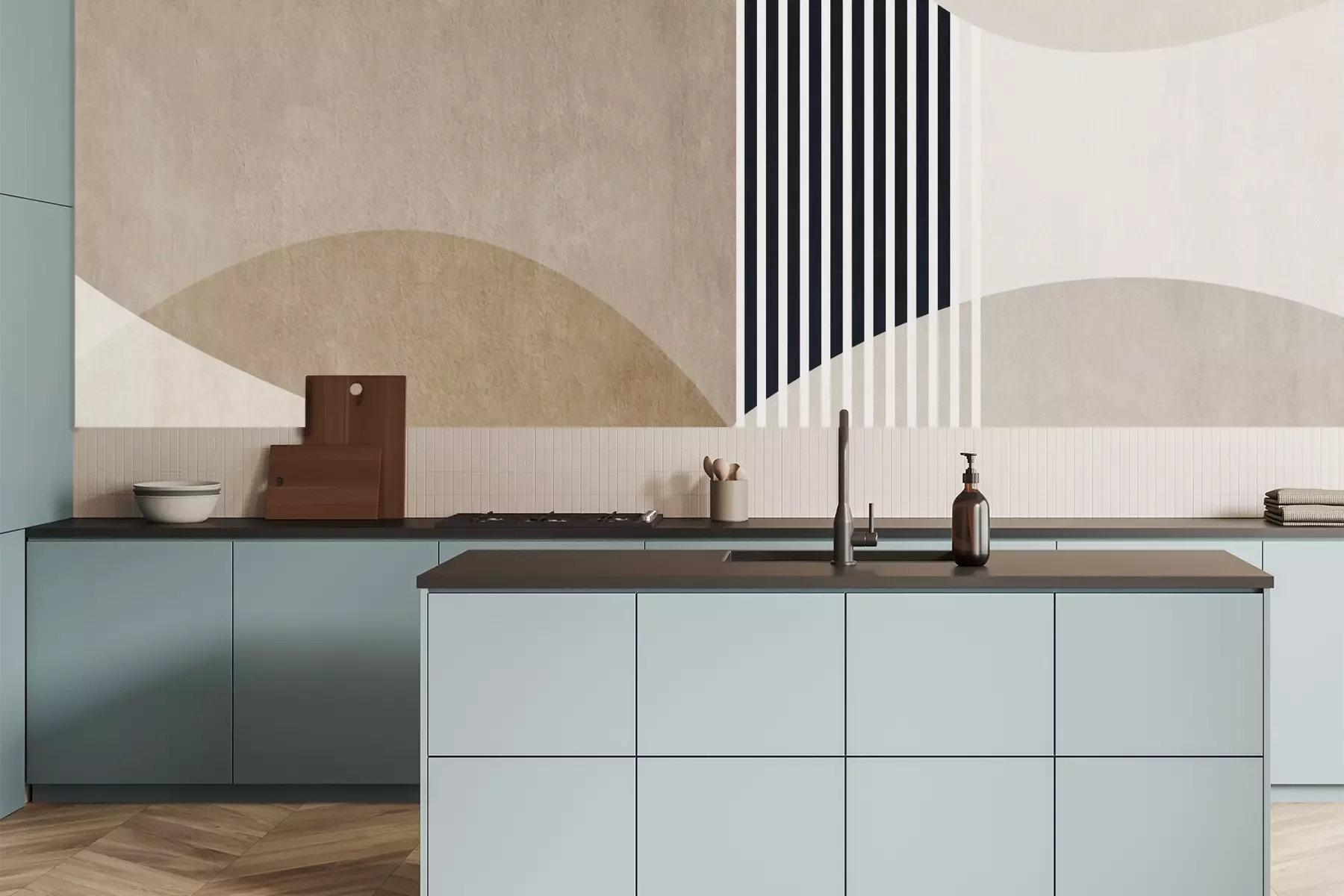 Das Material Premium+ besteht aus einer strukturierten Vinyl-Oberschicht und einem Trägermaterial (Vlies) mit einer Grammatur von 255 g/m², das kleine Unebenheiten der Wand zuverlässig kaschiert. Die feine Sandstruktur verleiht der Oberfläche eine luxuriöse Haptik, während das halbmatte Finish die Tiefe der Farben betont. Das Material ist dampfdurchlässig – so kann diese Fototapete auch in Küchen und Badezimmern eingesetzt werden. Die maximale Breite einer Tapetenbahn beträgt 100 cm. Bei größeren Abmessungen besteht die Fototapete aus mehreren gleich großen Bahnen. Der Kleber wird direkt auf die Wand aufgetragen, und die Fototapete wird auf Stoß angebracht, was für einen ästhetischen Effekt ohne sichtbare Fugen sorgt. Die Oberfläche ist pflegeleicht und kann bei Bedarf sanft mit einem feuchten Tuch abgewischt werden.