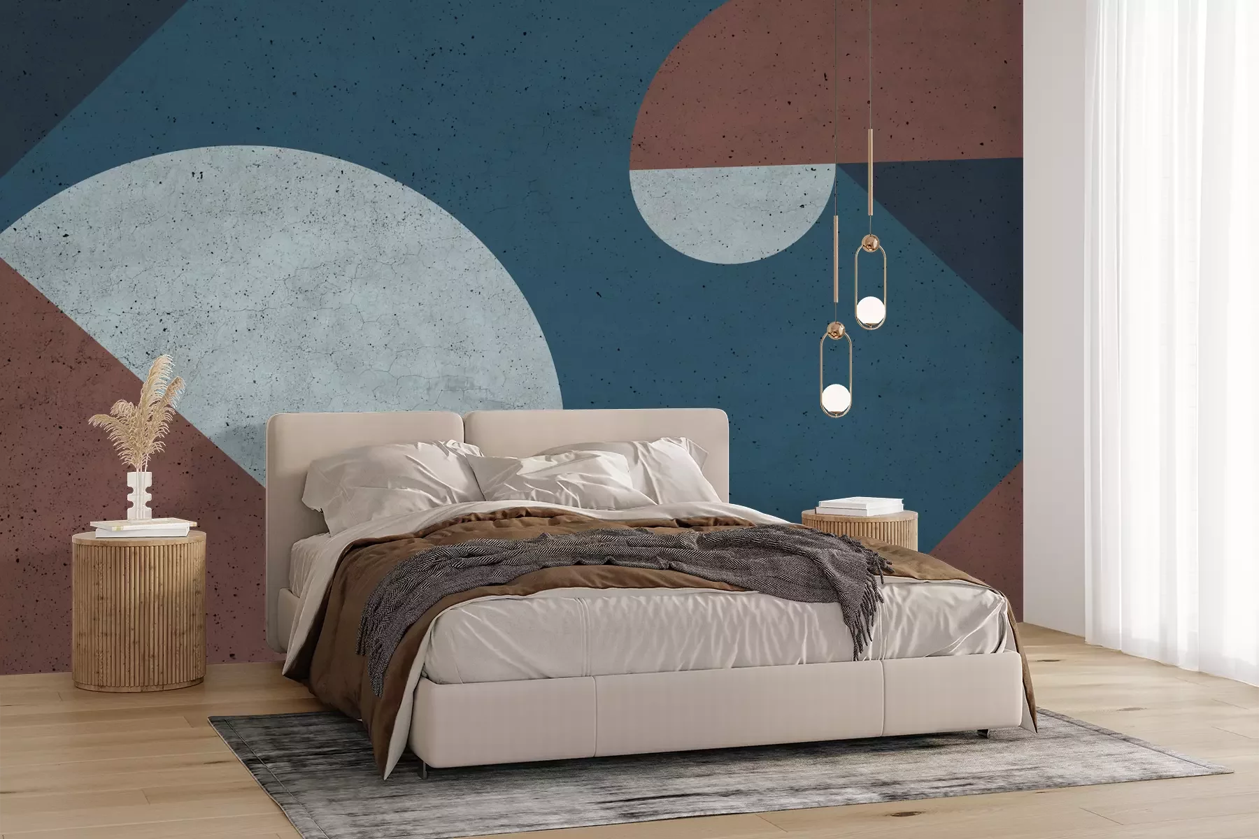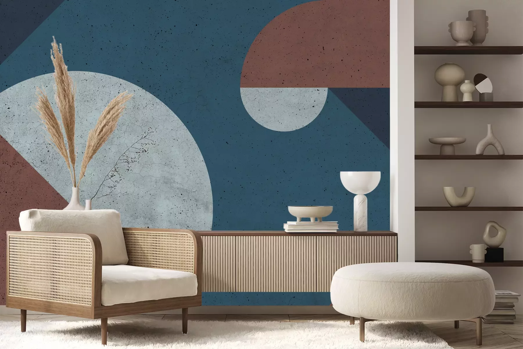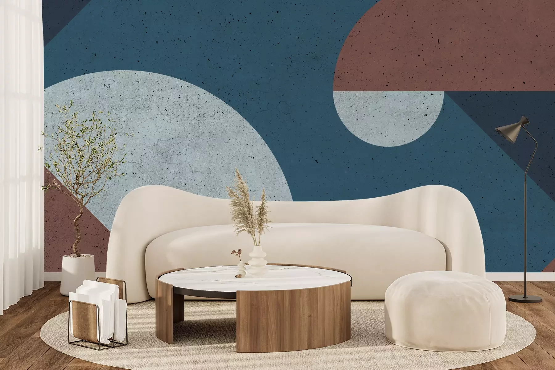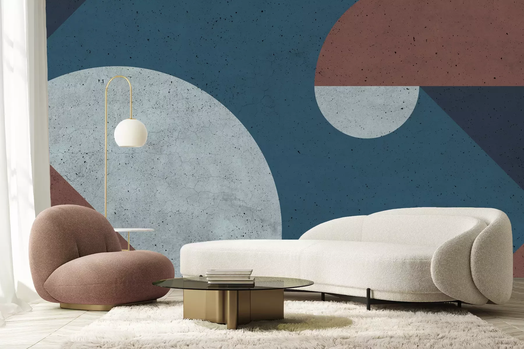 Geometrische komposition mit dunkelblauem akzent und betonstruktur