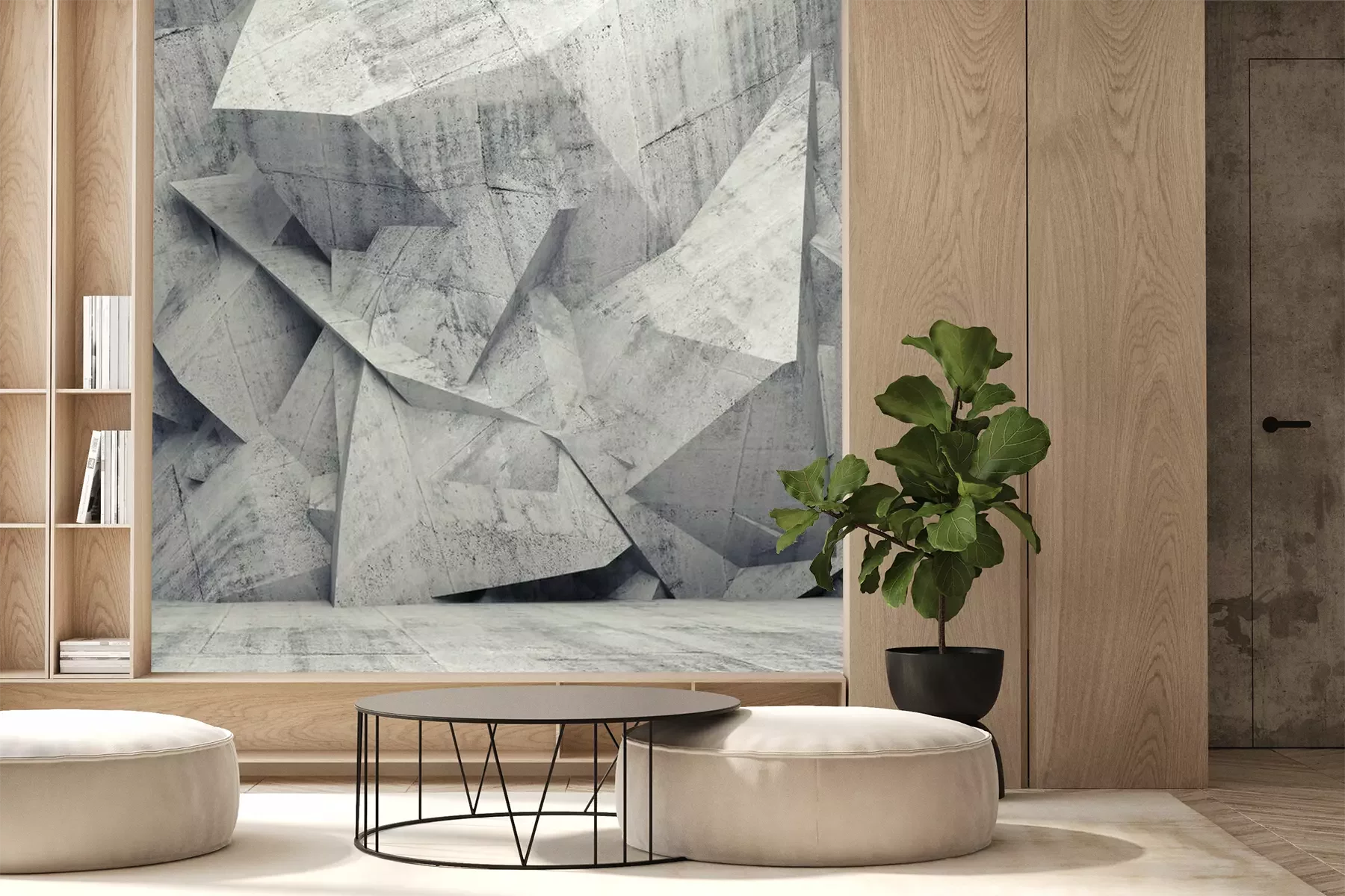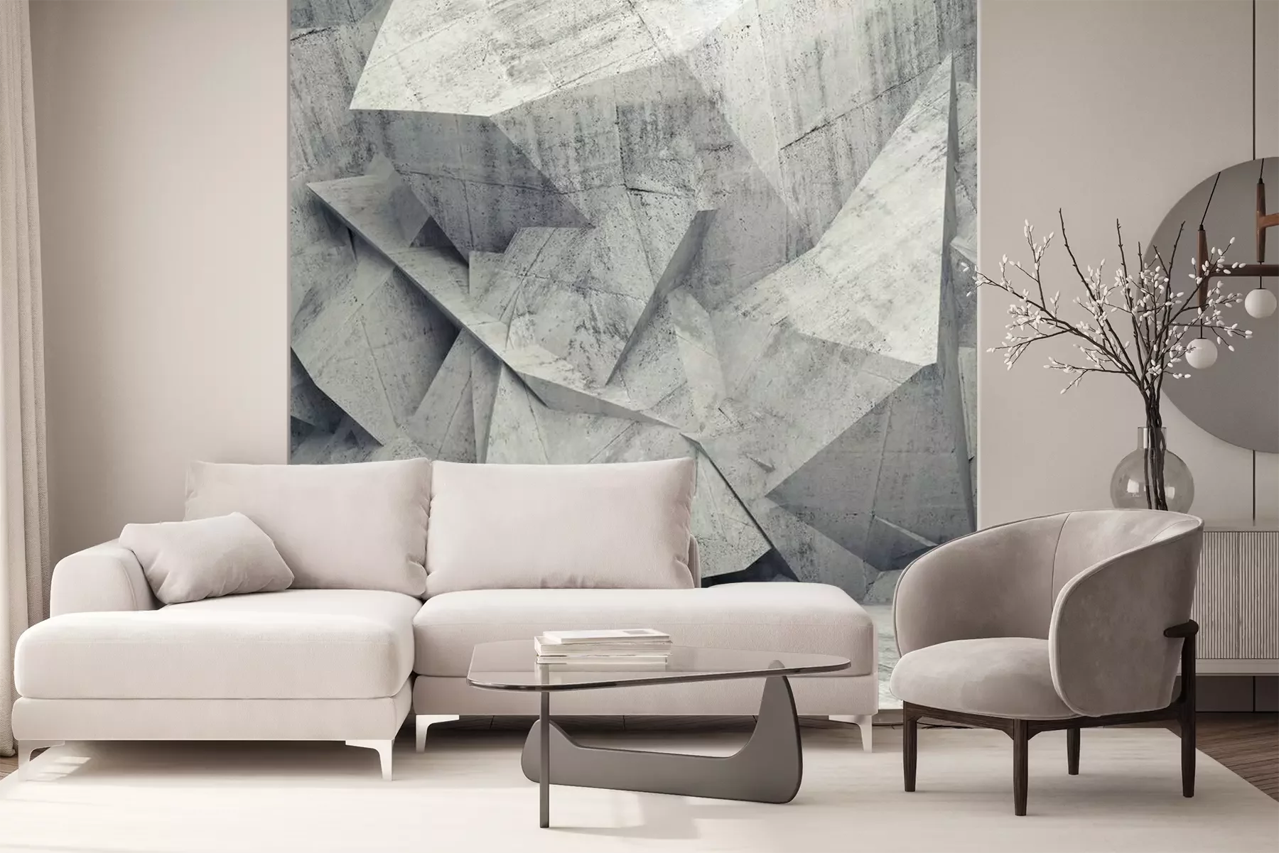 Weißer Raum mit geometrischer 3D-WandProblemlose Lieferung durch vertrauenswürdige Spediteure