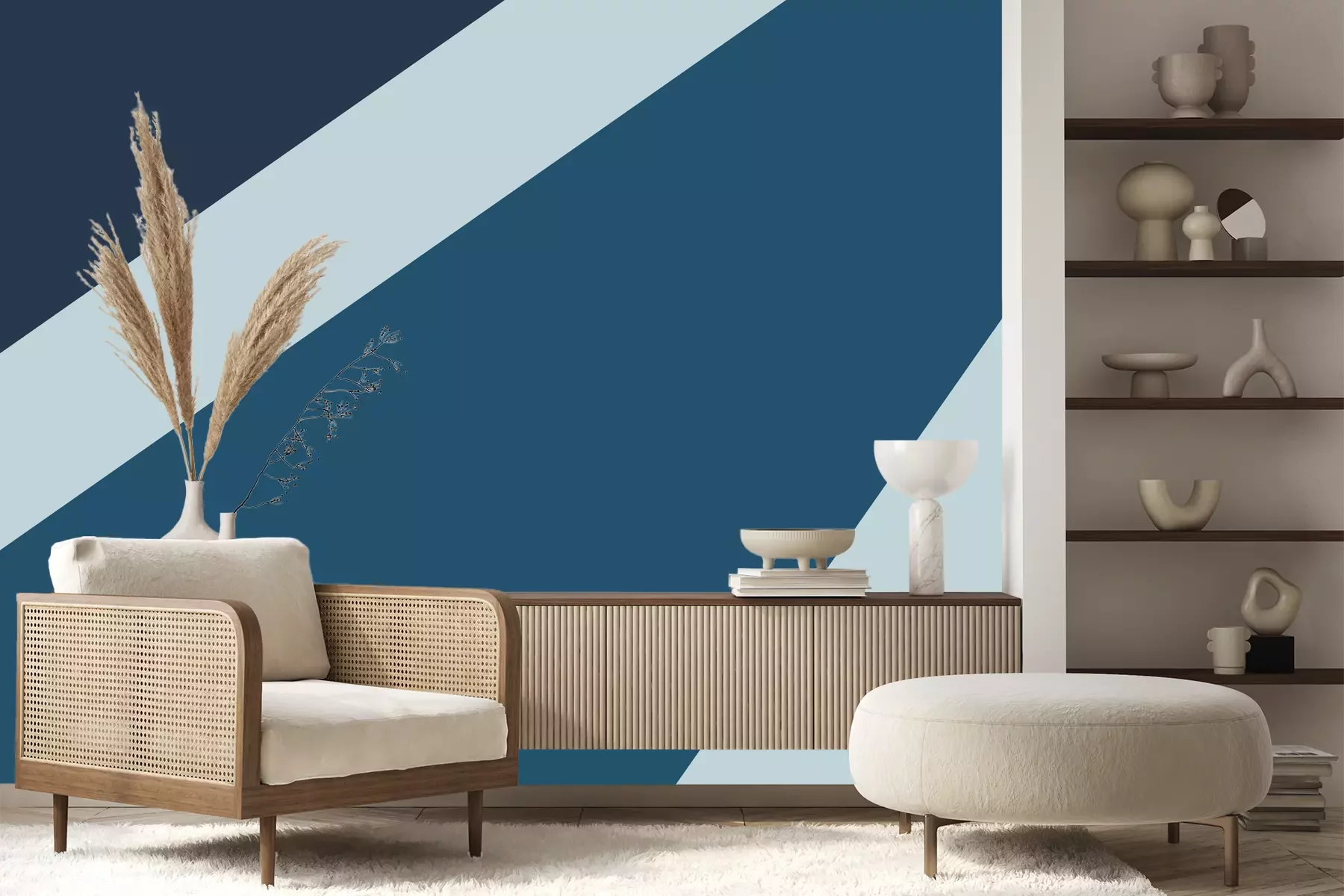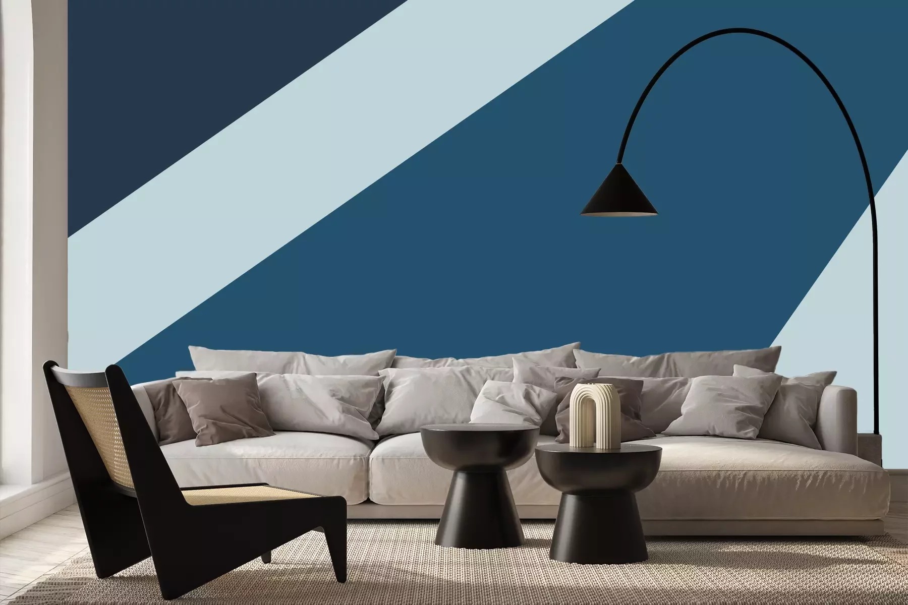 Das Material Premium+ besteht aus einer strukturierten Vinyl-Oberschicht und einem Trägermaterial (Vlies) mit einer Grammatur von 255 g/m², das kleine Unebenheiten der Wand zuverlässig kaschiert. Die feine Sandstruktur verleiht der Oberfläche eine luxuriöse Haptik, während das halbmatte Finish die Tiefe der Farben betont. Das Material ist dampfdurchlässig – so kann diese Fototapete auch in Küchen und Badezimmern eingesetzt werden. Die maximale Breite einer Tapetenbahn beträgt 100 cm. Bei größeren Abmessungen besteht die Fototapete aus mehreren gleich großen Bahnen. Der Kleber wird direkt auf die Wand aufgetragen, und die Fototapete wird auf Stoß angebracht, was für einen ästhetischen Effekt ohne sichtbare Fugen sorgt. Die Oberfläche ist pflegeleicht und kann bei Bedarf sanft mit einem feuchten Tuch abgewischt werden.