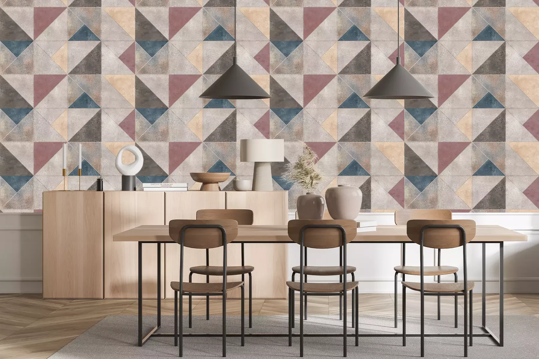 Das Material Premium+ besteht aus einer strukturierten Vinyl-Oberschicht und einem Trägermaterial (Vlies) mit einer Grammatur von 255 g/m², das kleine Unebenheiten der Wand zuverlässig kaschiert. Die feine Sandstruktur verleiht der Oberfläche eine luxuriöse Haptik, während das halbmatte Finish die Tiefe der Farben betont. Das Material ist dampfdurchlässig – so kann diese Fototapete auch in Küchen und Badezimmern eingesetzt werden. Die maximale Breite einer Tapetenbahn beträgt 100 cm. Bei größeren Abmessungen besteht die Fototapete aus mehreren gleich großen Bahnen. Der Kleber wird direkt auf die Wand aufgetragen, und die Fototapete wird auf Stoß angebracht, was für einen ästhetischen Effekt ohne sichtbare Fugen sorgt. Die Oberfläche ist pflegeleicht und kann bei Bedarf sanft mit einem feuchten Tuch abgewischt werden.
