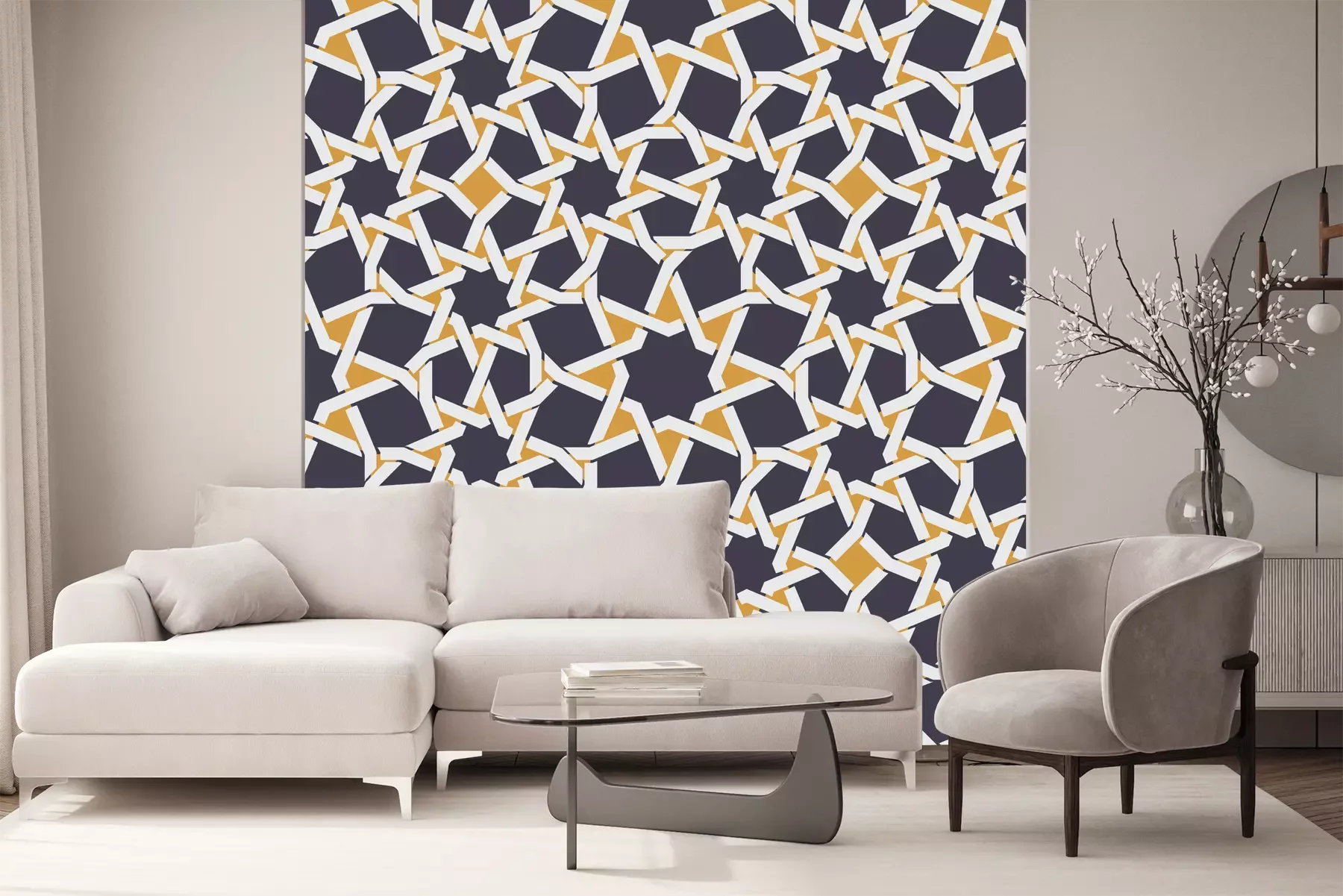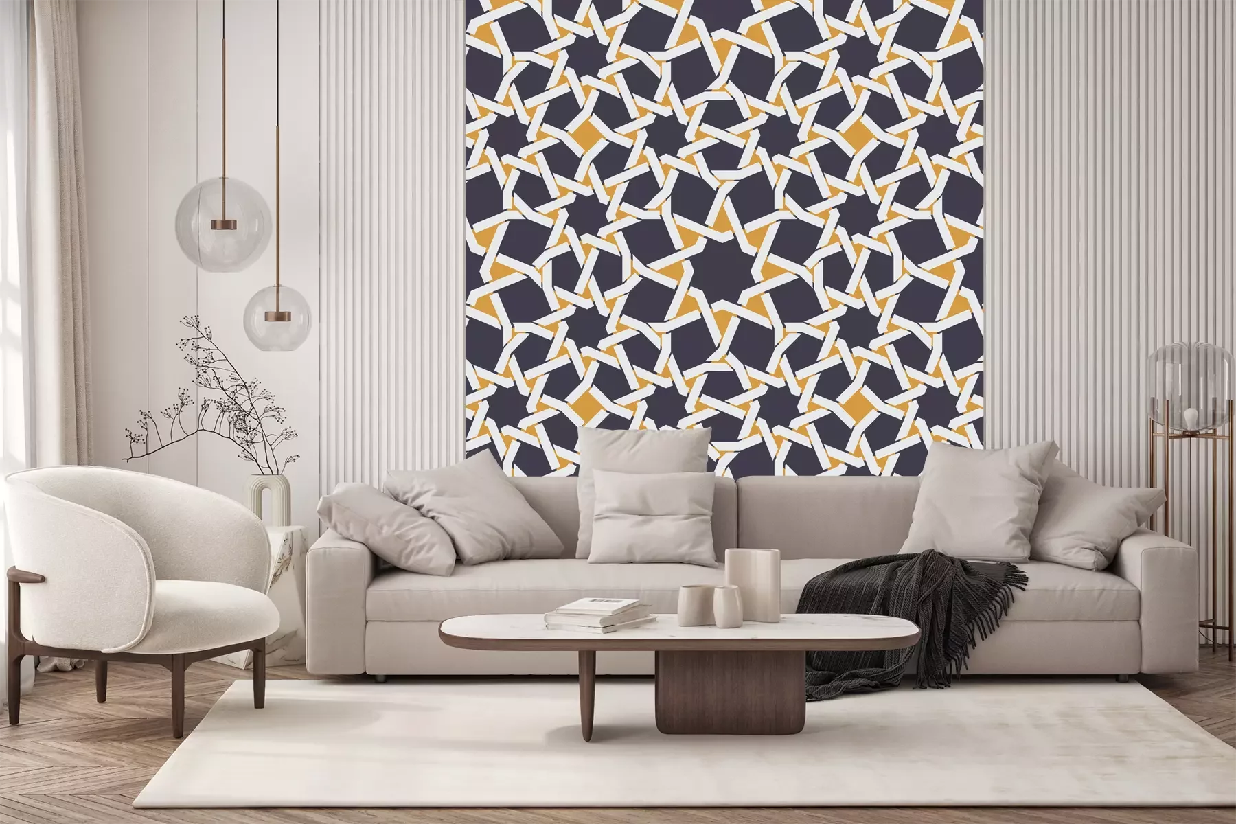 Das Material Standard ist ein hochwertiges Latexmaterial mit einer glatten, matten Oberfläche. Durch den Einsatz von HP-Latex-Drucktechnologie sind die Farben satt, langlebig und UV-beständig. So bleibt das Muster über Jahre hinweg makellos schön. Die verschmutzte Oberfläche dieses Materials kann sanft mit einem trockenen Tuch abgewischt werden. Die maximale Breite einer einzelnen Bahn beträgt 95 cm oder 105 cm – je nach Breite der bestellten Fototapete. Bei Fototapeten mit größeren Abmessungen besteht der Ausdruck aus mehreren gleich großen Tapetenbahnen. Die Fototapete wird auf Stoß angebracht, wodurch die Fugen nahezu unsichtbar sind.