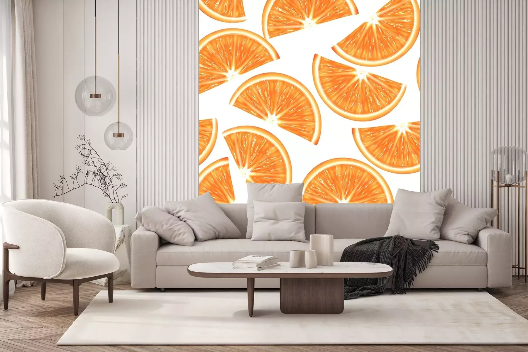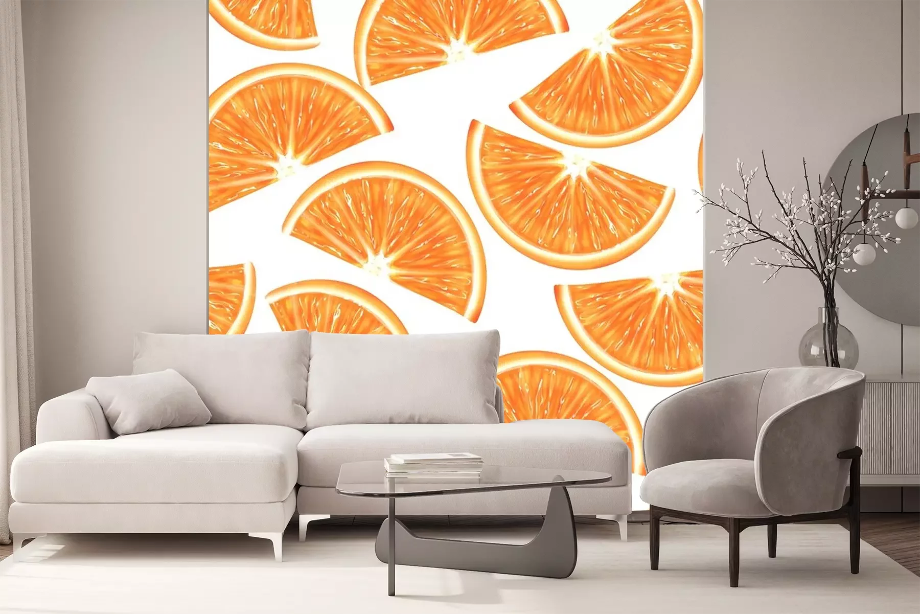 Fototapete Geschnittene Orangenscheiben auf weißem Hintergrund