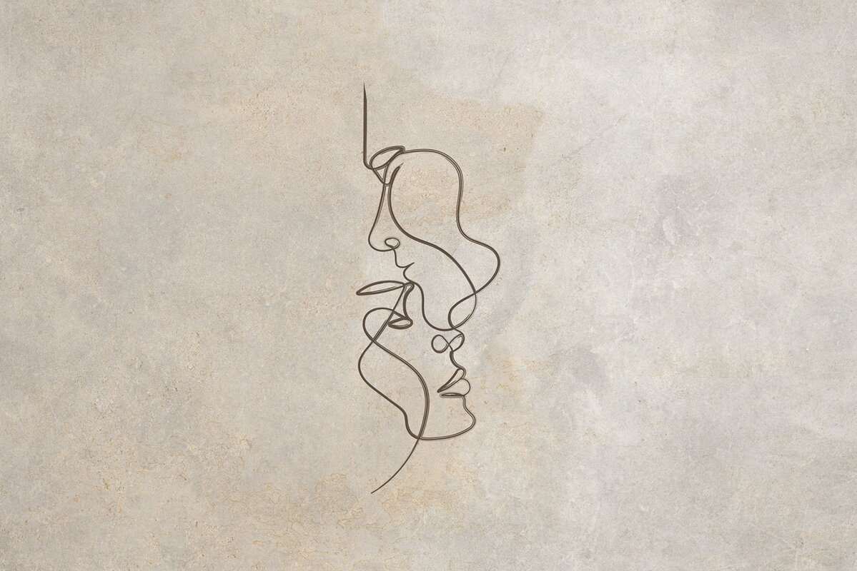 Fototapete: Gesicht einer Frau und eines Mannes auf beigem Hintergrund