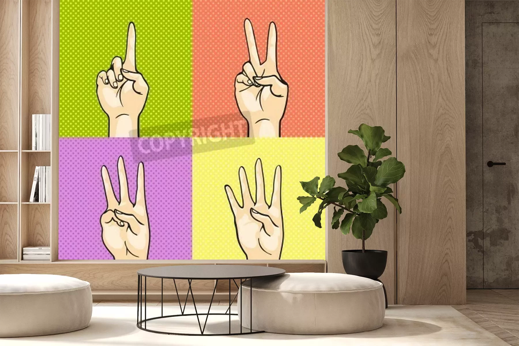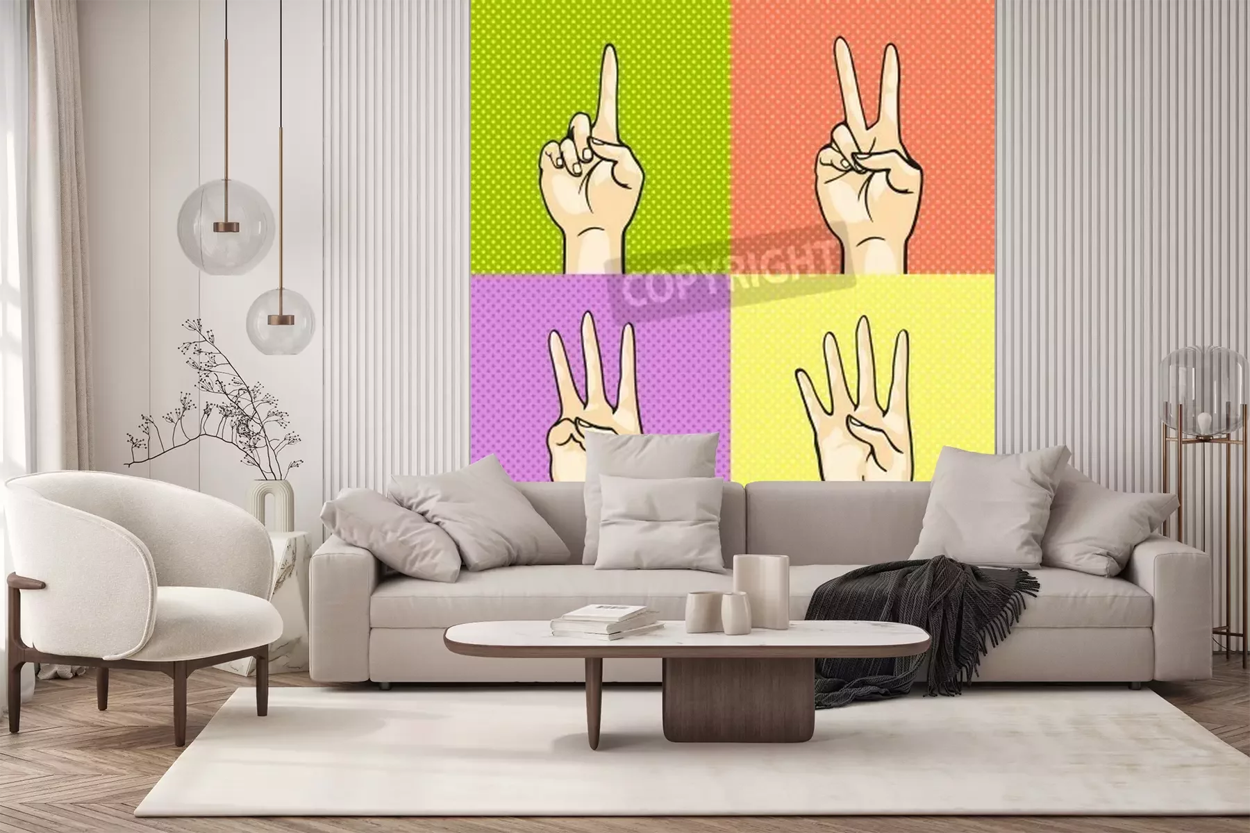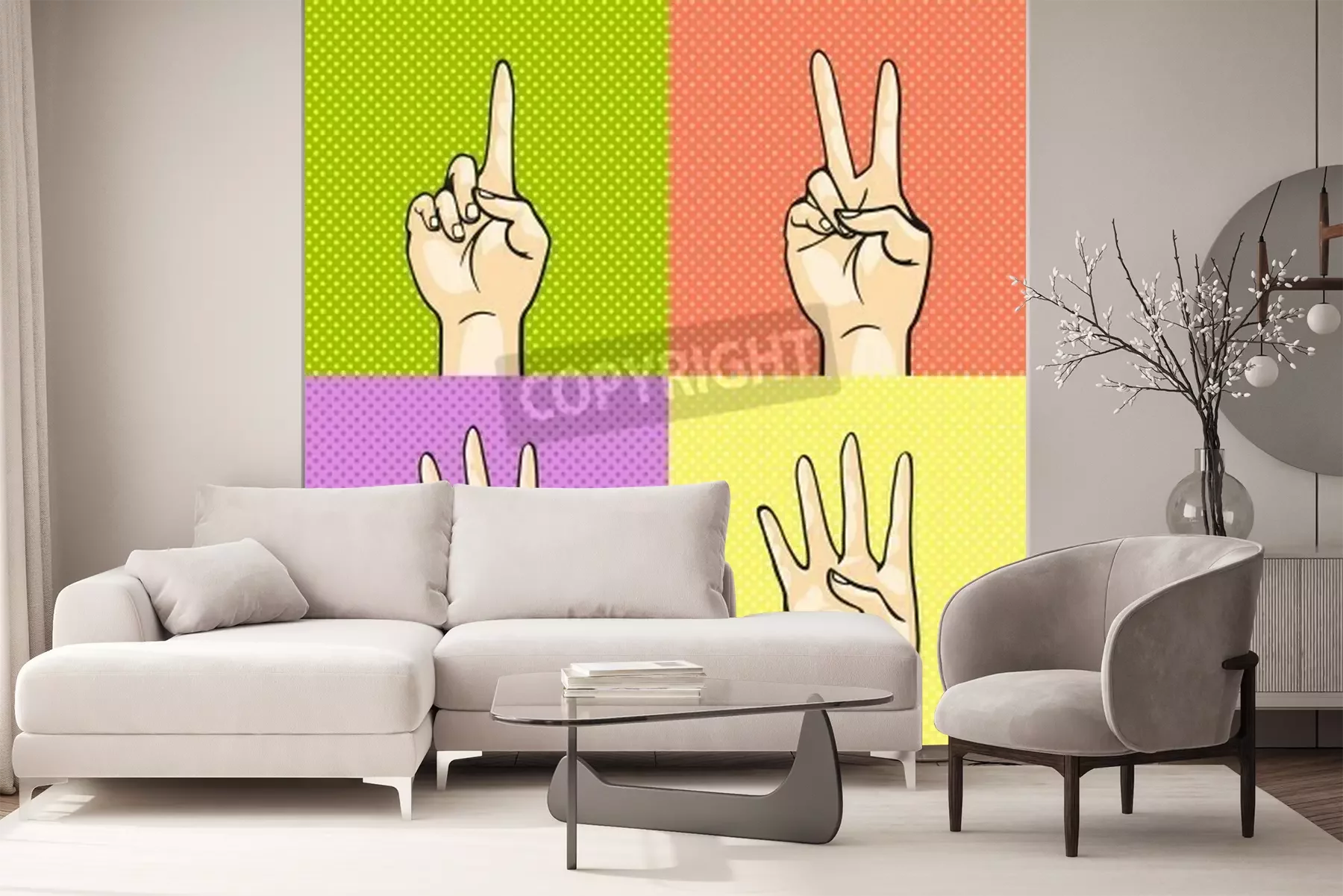 Fototapete Gesten mit Pop-Art-Händen gezeigt