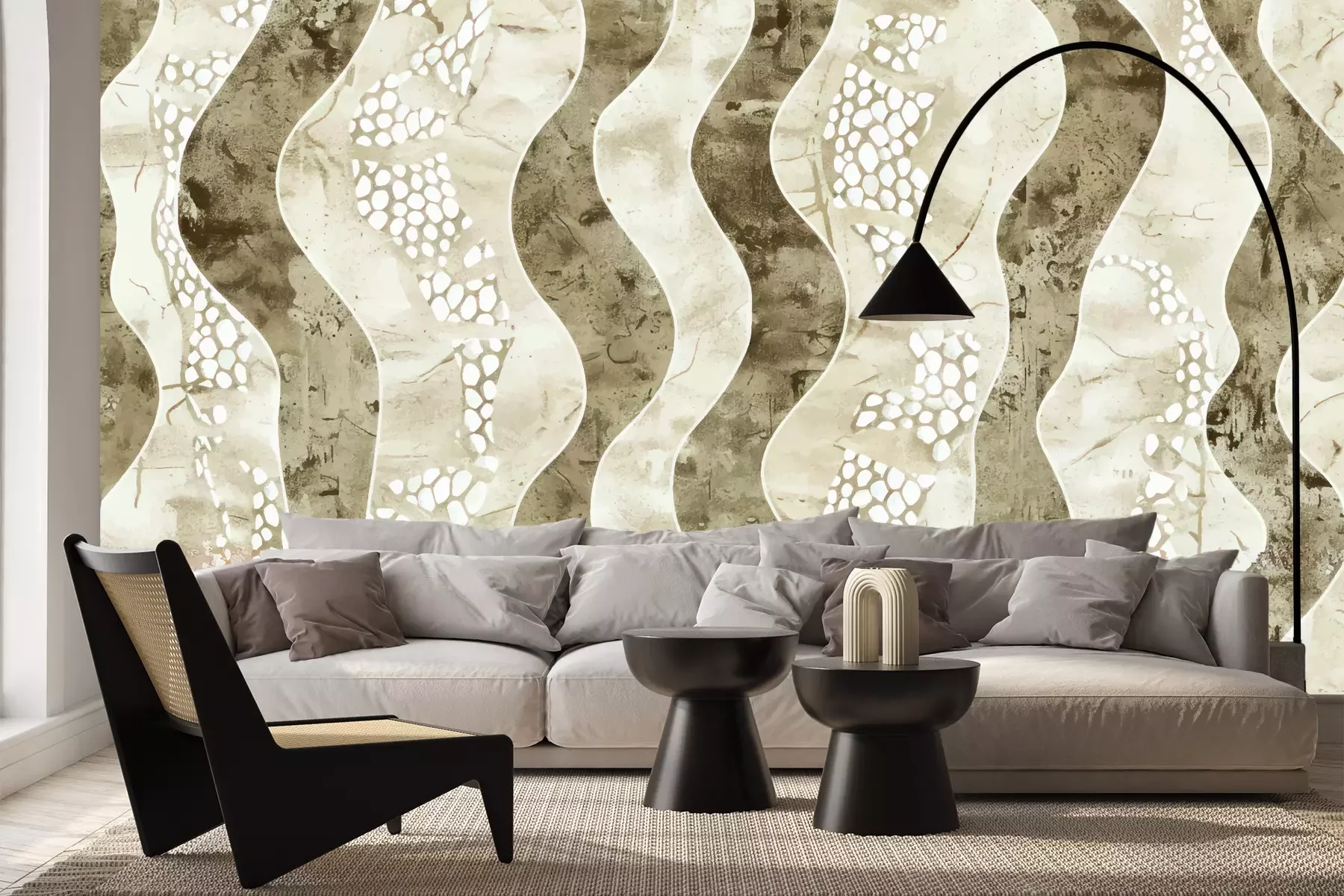 Das Material Premium+ besteht aus einer strukturierten Vinyl-Oberschicht und einem Trägermaterial (Vlies) mit einer Grammatur von 255 g/m², das kleine Unebenheiten der Wand zuverlässig kaschiert. Die feine Sandstruktur verleiht der Oberfläche eine luxuriöse Haptik, während das halbmatte Finish die Tiefe der Farben betont. Das Material ist dampfdurchlässig – so kann diese Fototapete auch in Küchen und Badezimmern eingesetzt werden. Die maximale Breite einer Tapetenbahn beträgt 100 cm. Bei größeren Abmessungen besteht die Fototapete aus mehreren gleich großen Bahnen. Der Kleber wird direkt auf die Wand aufgetragen, und die Fototapete wird auf Stoß angebracht, was für einen ästhetischen Effekt ohne sichtbare Fugen sorgt. Die Oberfläche ist pflegeleicht und kann bei Bedarf sanft mit einem feuchten Tuch abgewischt werden.