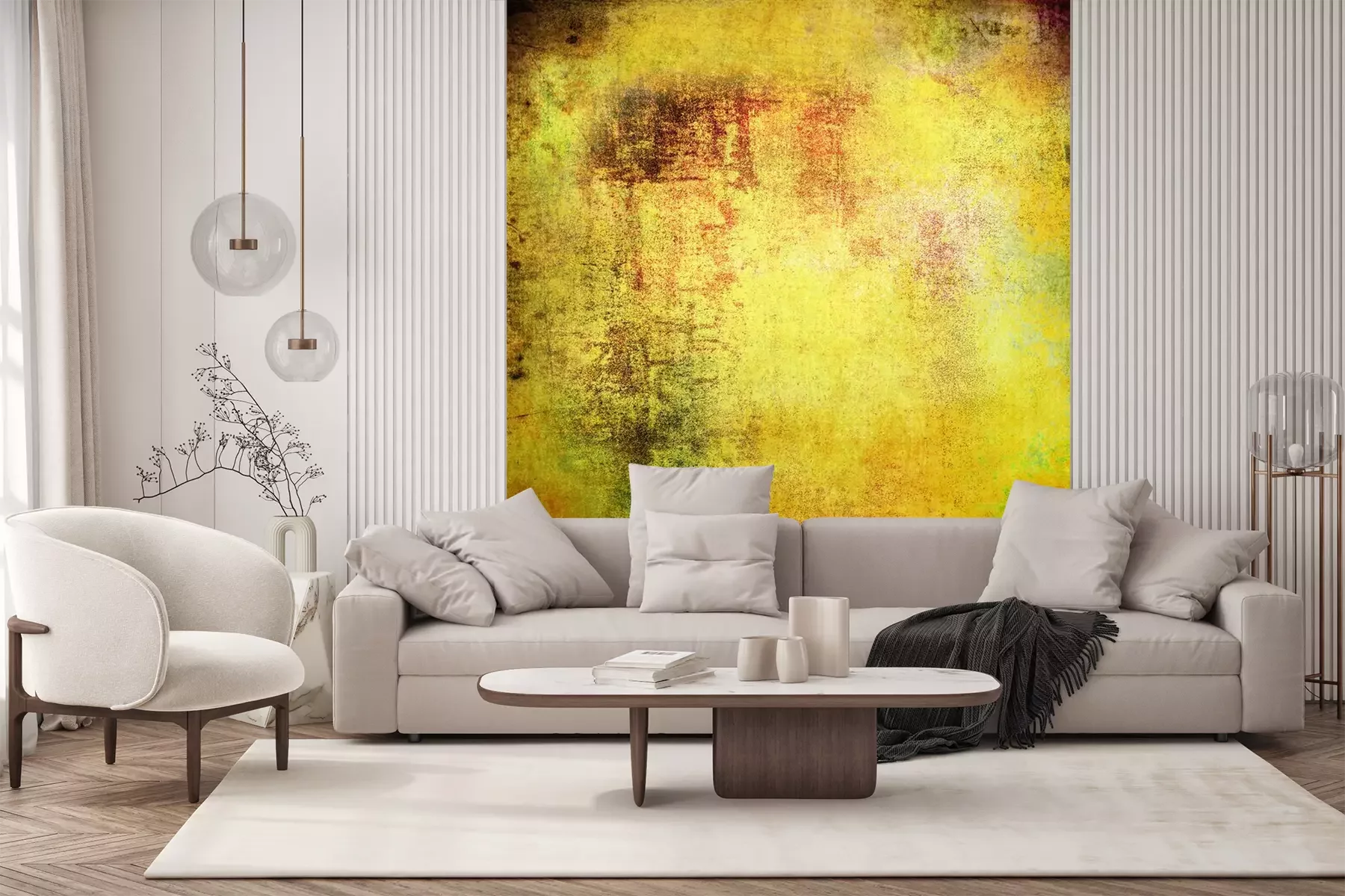Das Material Standard ist ein hochwertiges Latexmaterial mit einer glatten, matten Oberfläche. Durch den Einsatz von HP-Latex-Drucktechnologie sind die Farben satt, langlebig und UV-beständig. So bleibt das Muster über Jahre hinweg makellos schön. Die verschmutzte Oberfläche dieses Materials kann sanft mit einem trockenen Tuch abgewischt werden. Die maximale Breite einer einzelnen Bahn beträgt 95 cm oder 105 cm – je nach Breite der bestellten Fototapete. Bei Fototapeten mit größeren Abmessungen besteht der Ausdruck aus mehreren gleich großen Tapetenbahnen. Die Fototapete wird auf Stoß angebracht, wodurch die Fugen nahezu unsichtbar sind.
