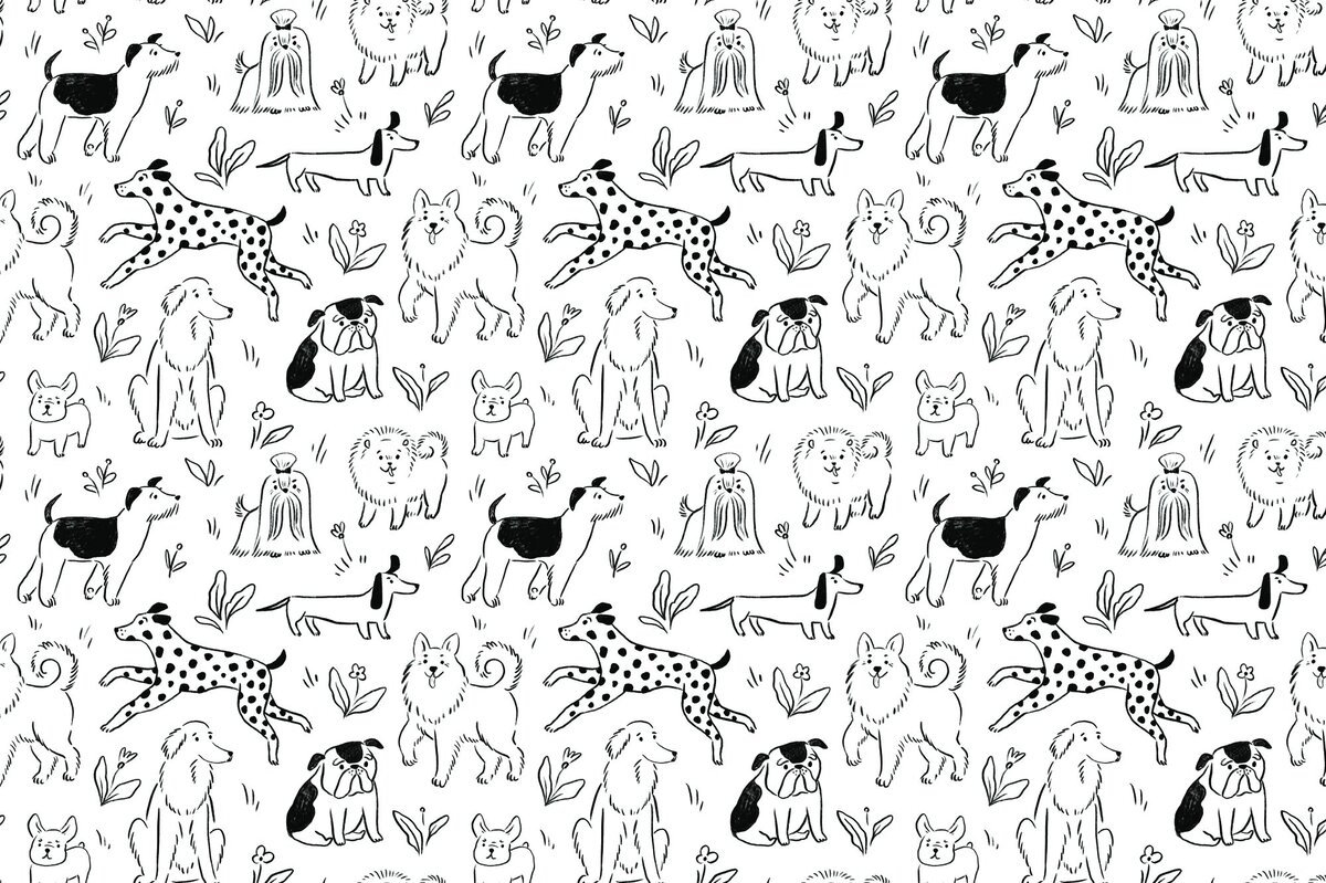 Fototapete: Gezeichnete Hunde auf einer Blumenwiese