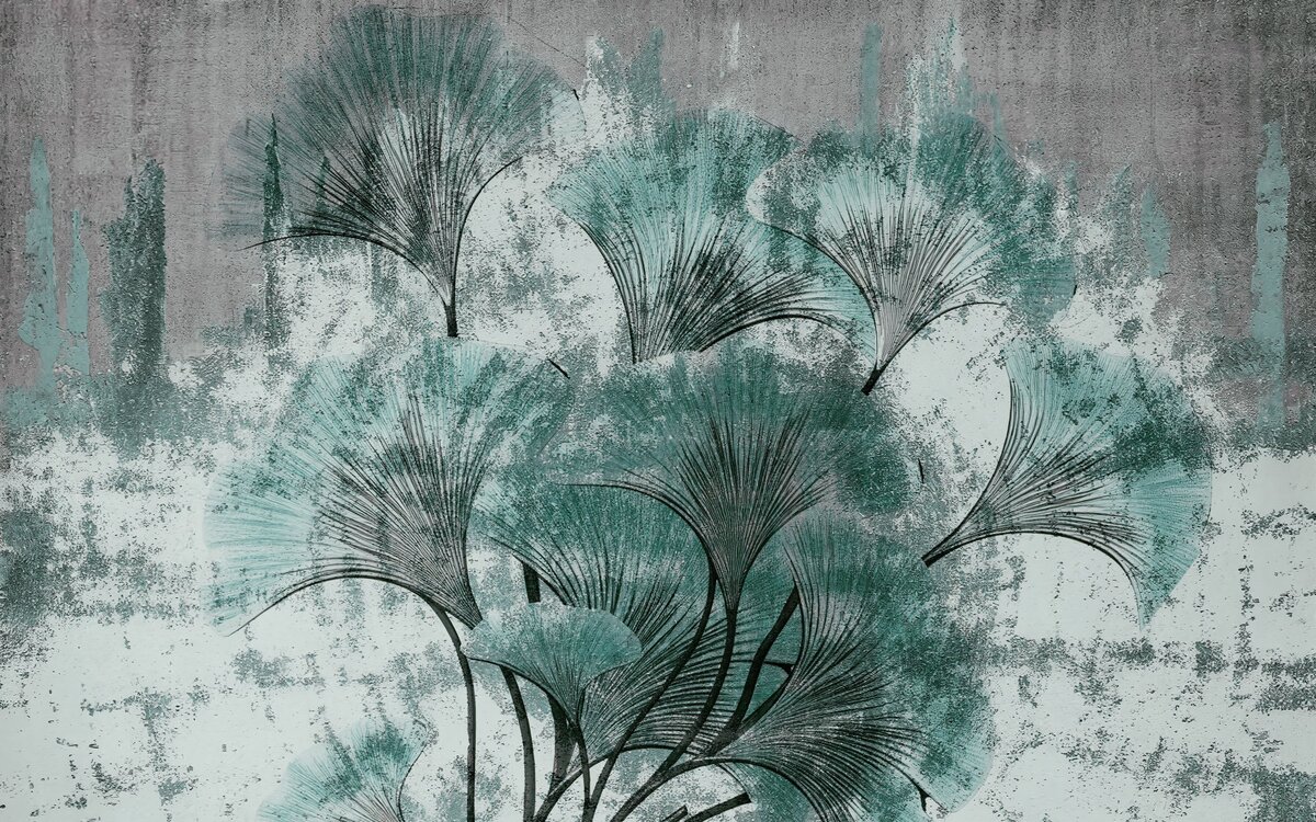 Fototapete: Ginkgoblätter auf konkretem Hintergrund