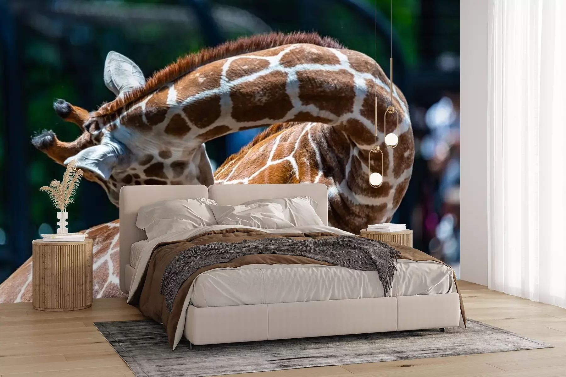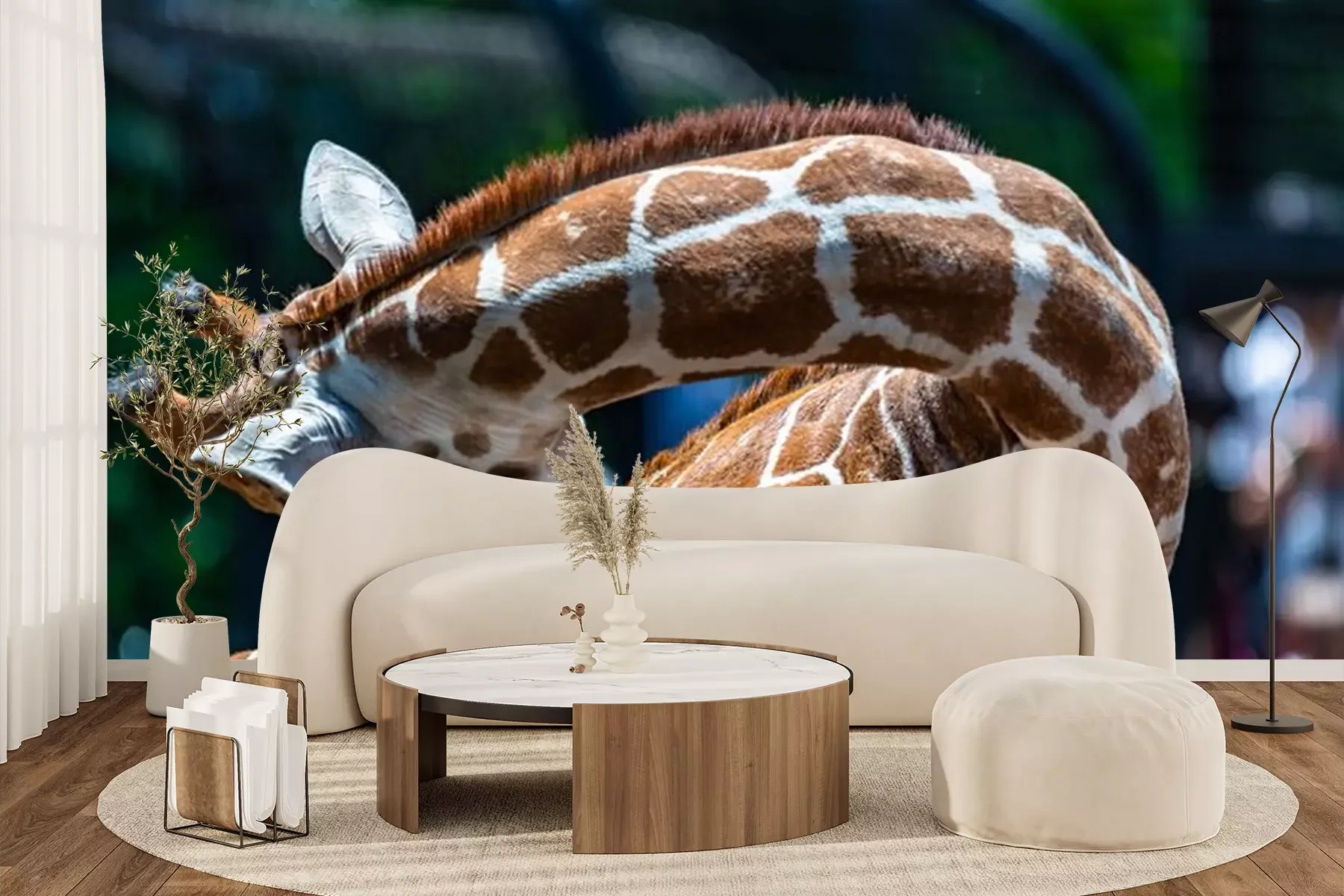 Fototapete Giraffe in einem Zoo mit Grün