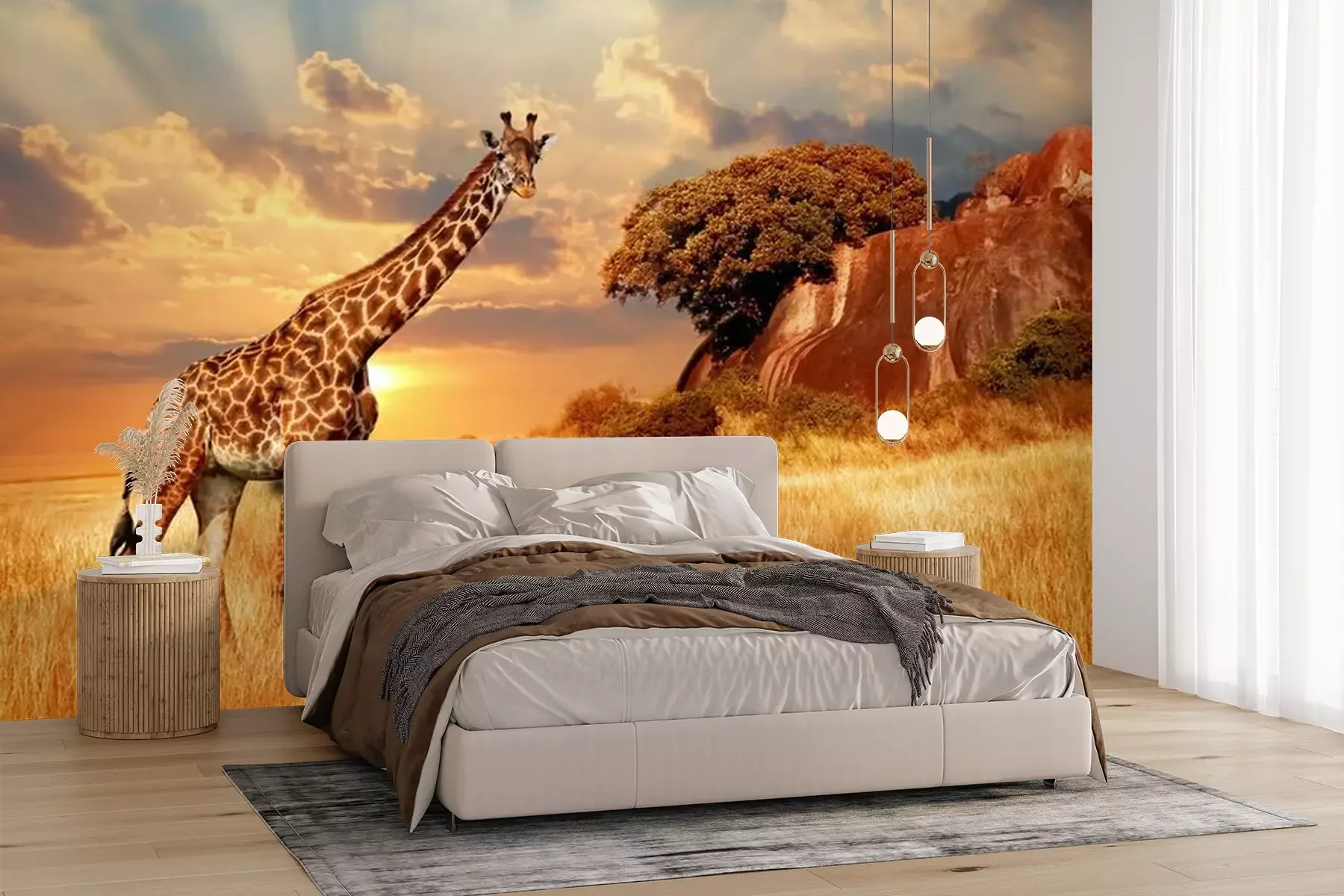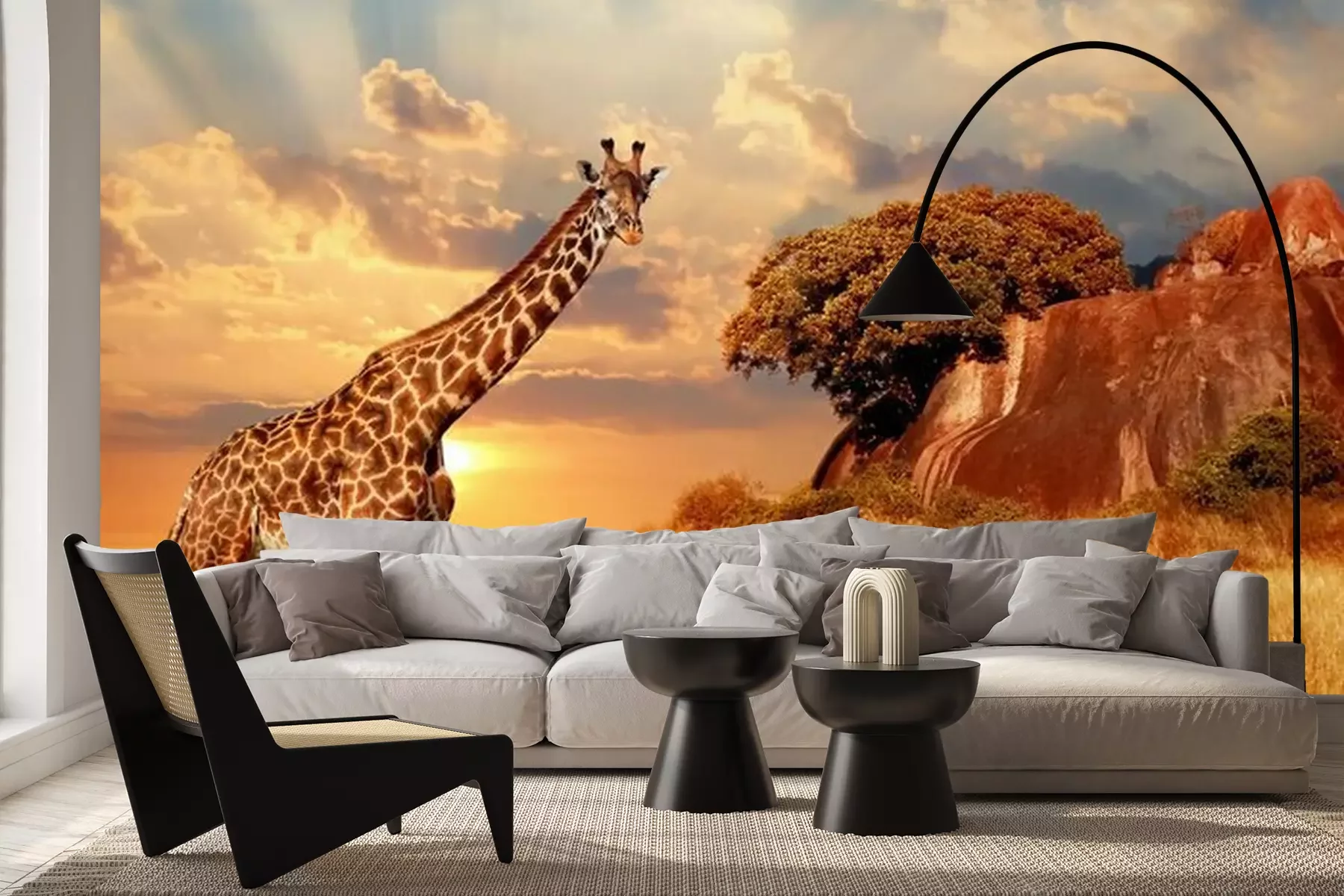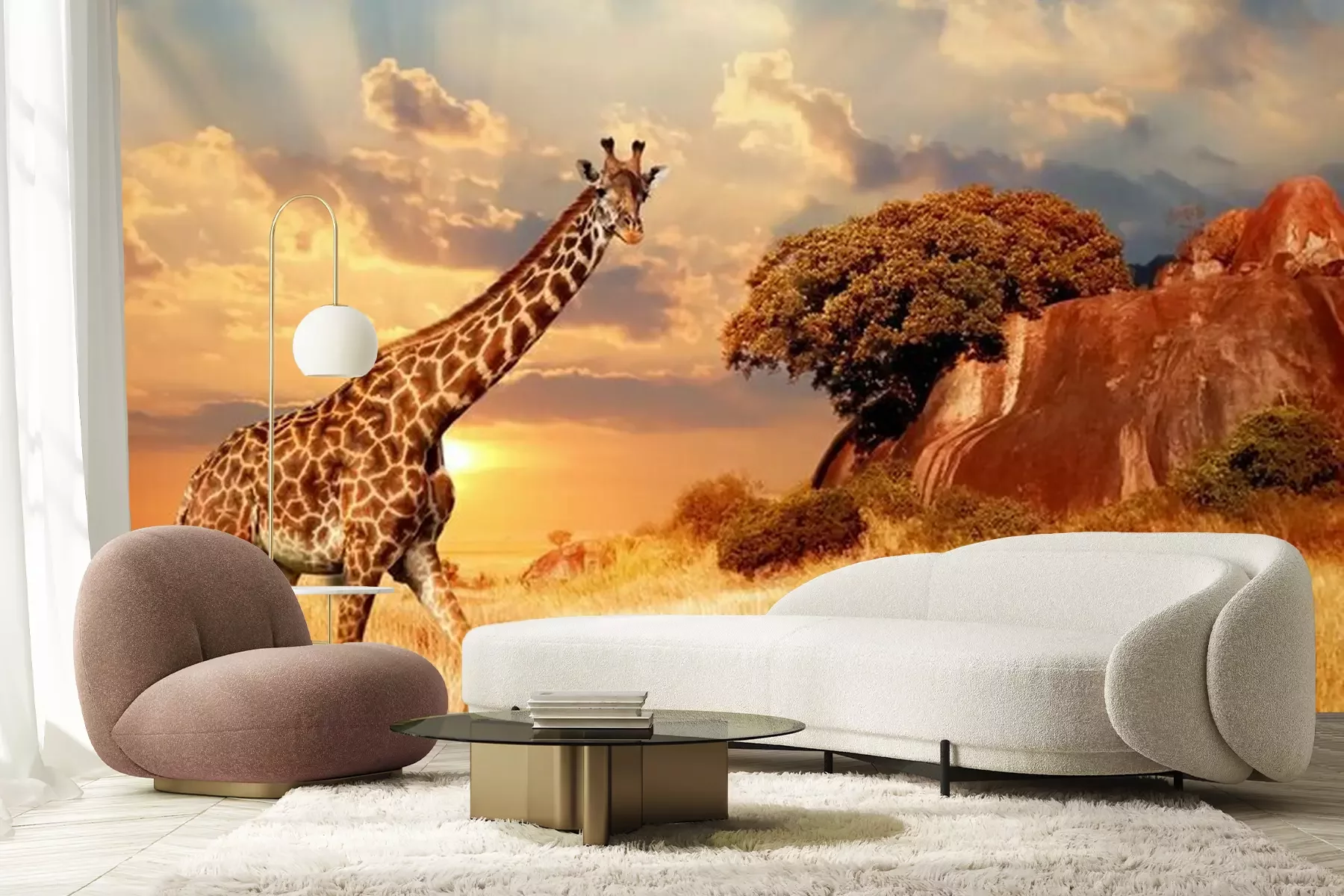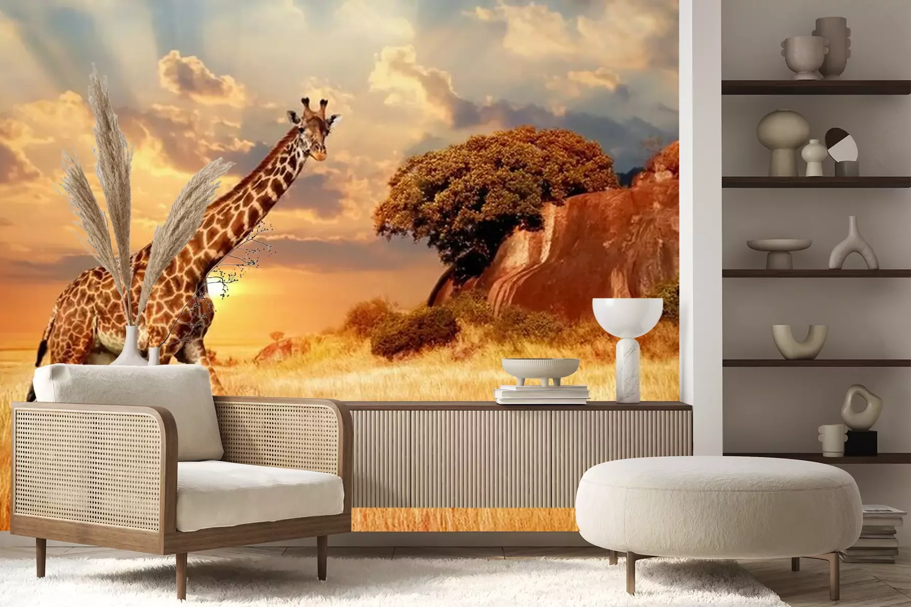 Afrikanische Tiere mit SonnenuntergangFototapete