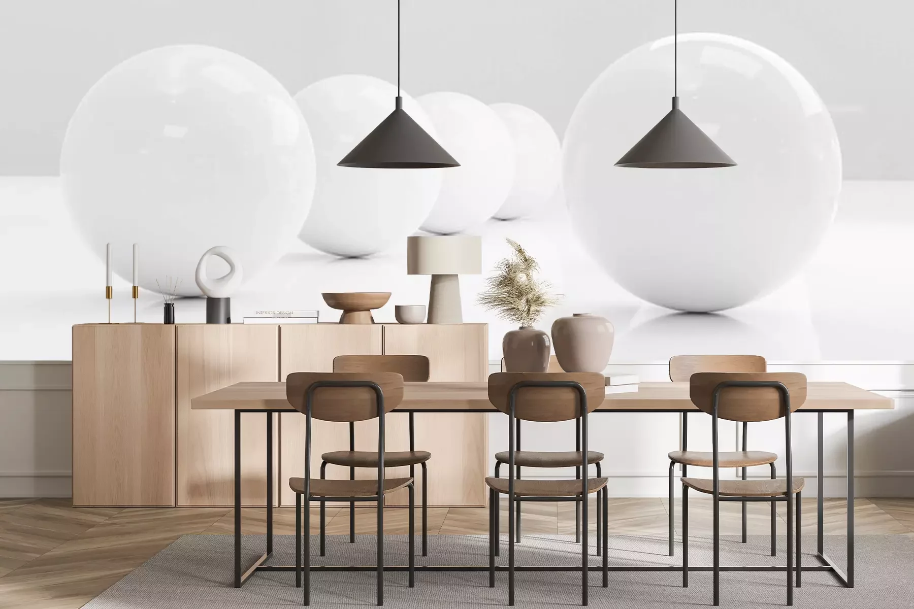 Fototapete Glänzende weiße Kugeln