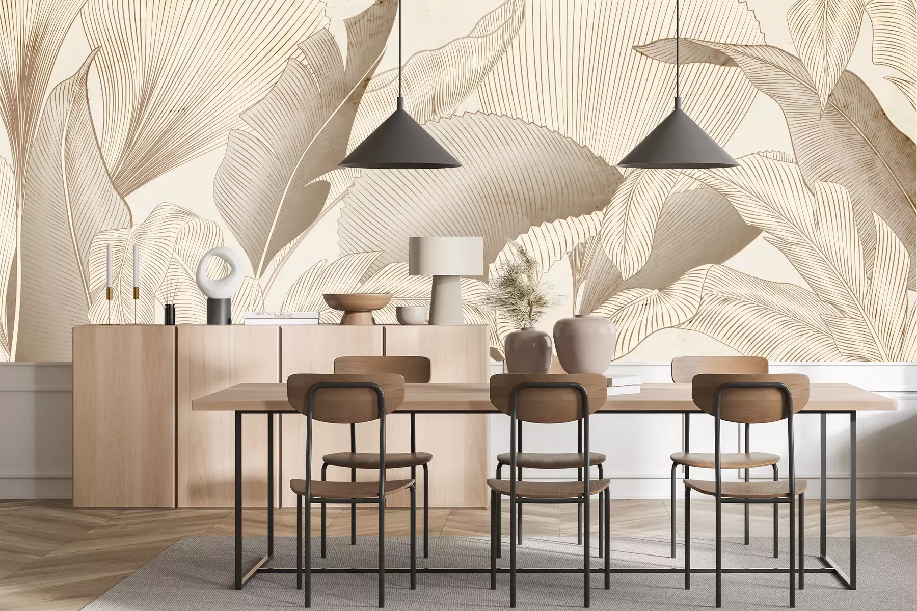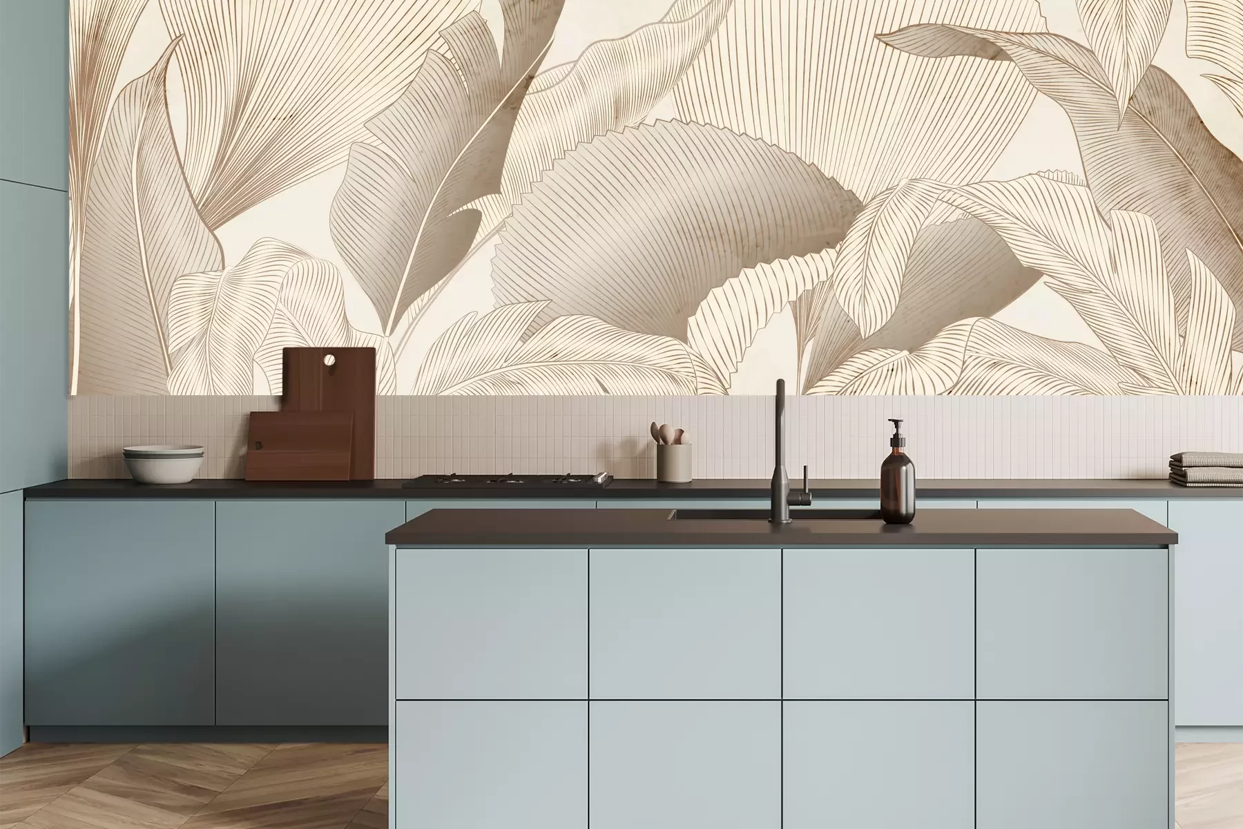 Das Material Premium+ besteht aus einer strukturierten Vinyl-Oberschicht und einem Trägermaterial (Vlies) mit einer Grammatur von 255 g/m², das kleine Unebenheiten der Wand zuverlässig kaschiert. Die feine Sandstruktur verleiht der Oberfläche eine luxuriöse Haptik, während das halbmatte Finish die Tiefe der Farben betont. Das Material ist dampfdurchlässig – so kann diese Fototapete auch in Küchen und Badezimmern eingesetzt werden. Die maximale Breite einer Tapetenbahn beträgt 100 cm. Bei größeren Abmessungen besteht die Fototapete aus mehreren gleich großen Bahnen. Der Kleber wird direkt auf die Wand aufgetragen, und die Fototapete wird auf Stoß angebracht, was für einen ästhetischen Effekt ohne sichtbare Fugen sorgt. Die Oberfläche ist pflegeleicht und kann bei Bedarf sanft mit einem feuchten Tuch abgewischt werden.