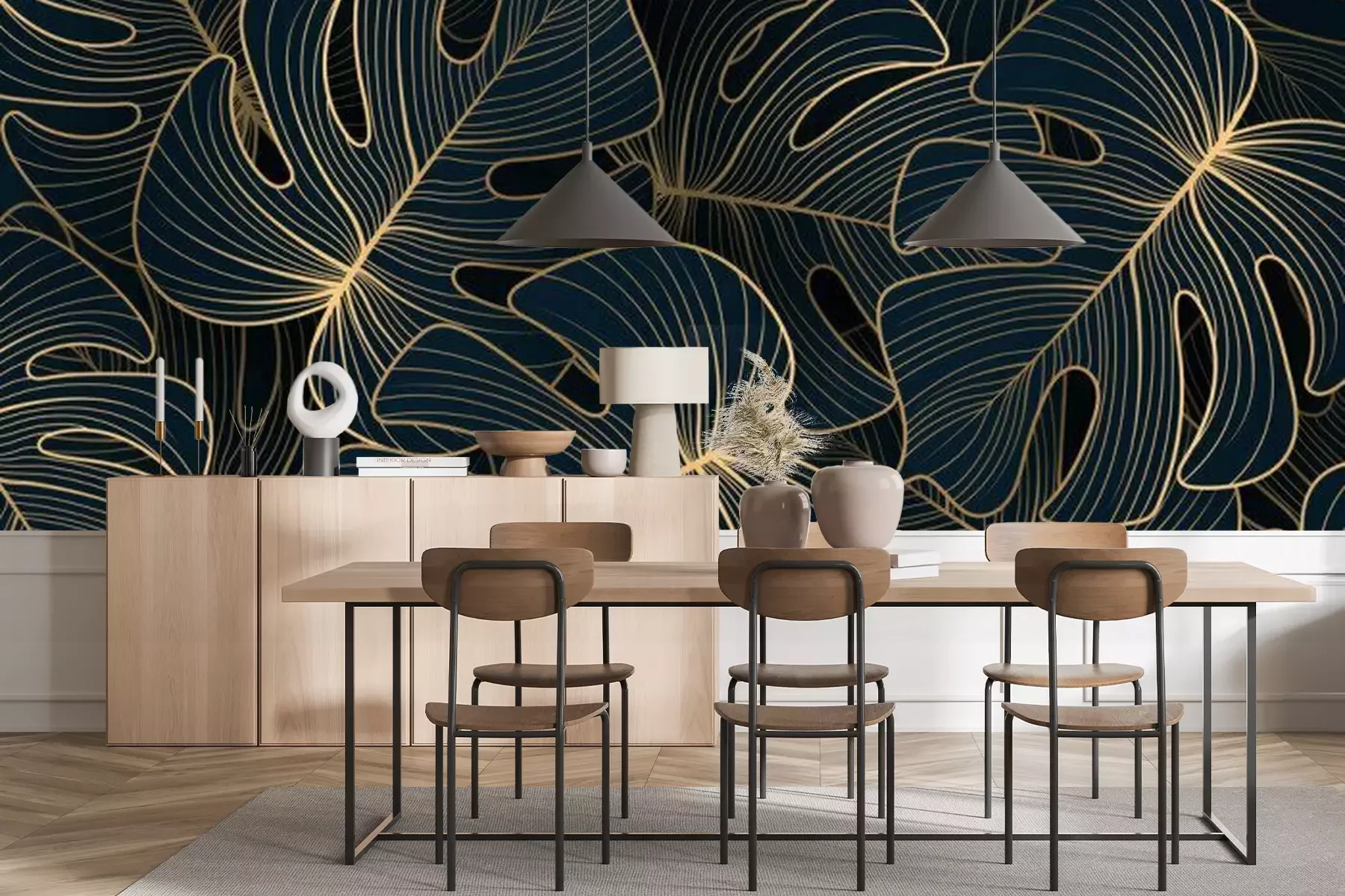 Das Material Premium+ besteht aus einer strukturierten Vinyl-Oberschicht und einem Trägermaterial (Vlies) mit einer Grammatur von 255 g/m², das kleine Unebenheiten der Wand zuverlässig kaschiert. Die feine Sandstruktur verleiht der Oberfläche eine luxuriöse Haptik, während das halbmatte Finish die Tiefe der Farben betont. Das Material ist dampfdurchlässig – so kann diese Fototapete auch in Küchen und Badezimmern eingesetzt werden. Die maximale Breite einer Tapetenbahn beträgt 100 cm. Bei größeren Abmessungen besteht die Fototapete aus mehreren gleich großen Bahnen. Der Kleber wird direkt auf die Wand aufgetragen, und die Fototapete wird auf Stoß angebracht, was für einen ästhetischen Effekt ohne sichtbare Fugen sorgt. Die Oberfläche ist pflegeleicht und kann bei Bedarf sanft mit einem feuchten Tuch abgewischt werden.