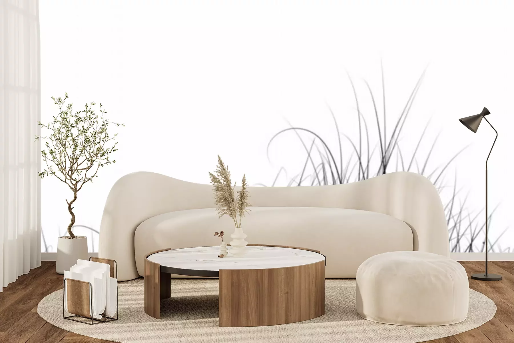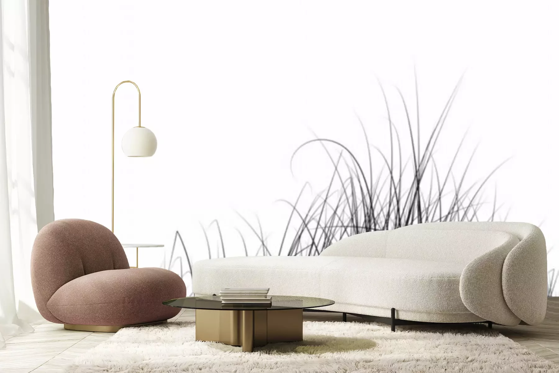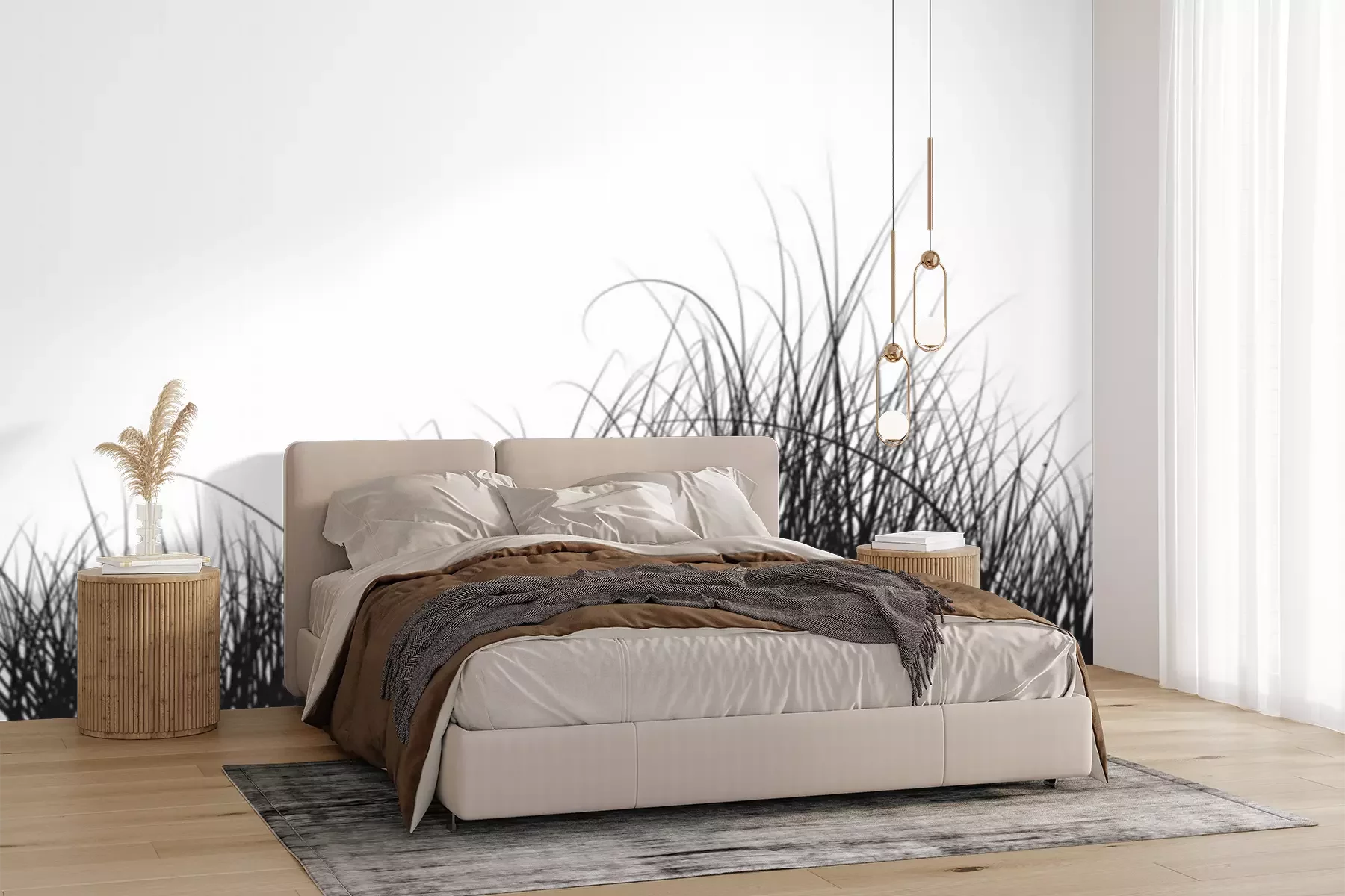 Fototapete Gräser schwarz-weiß