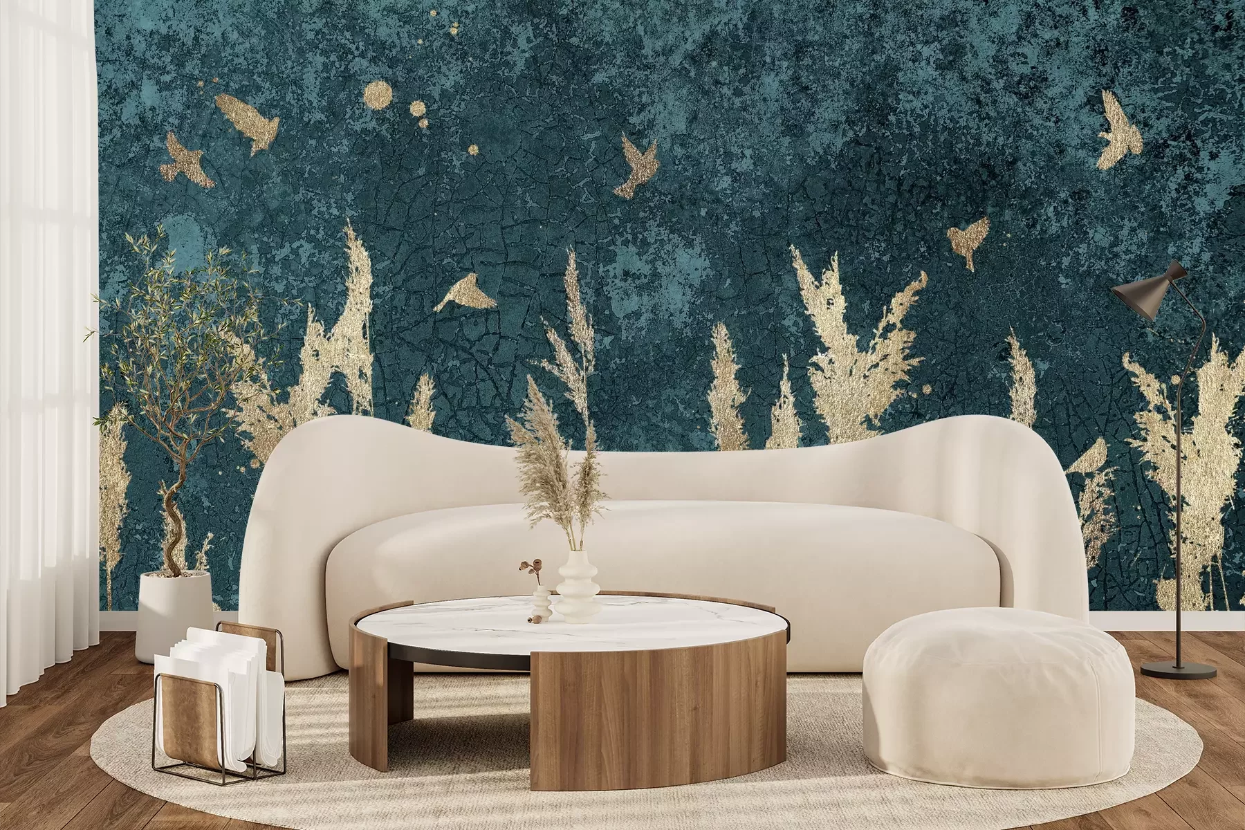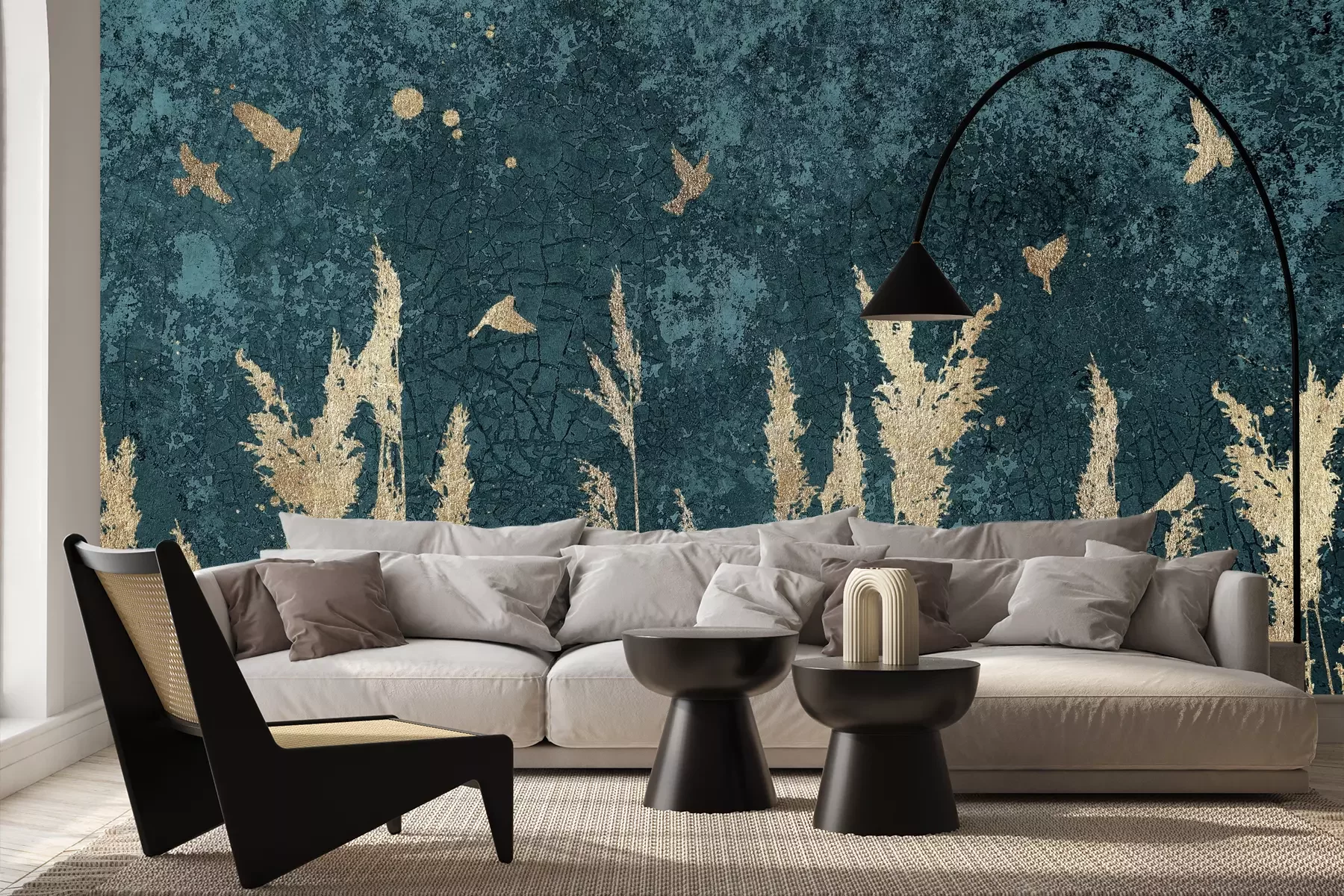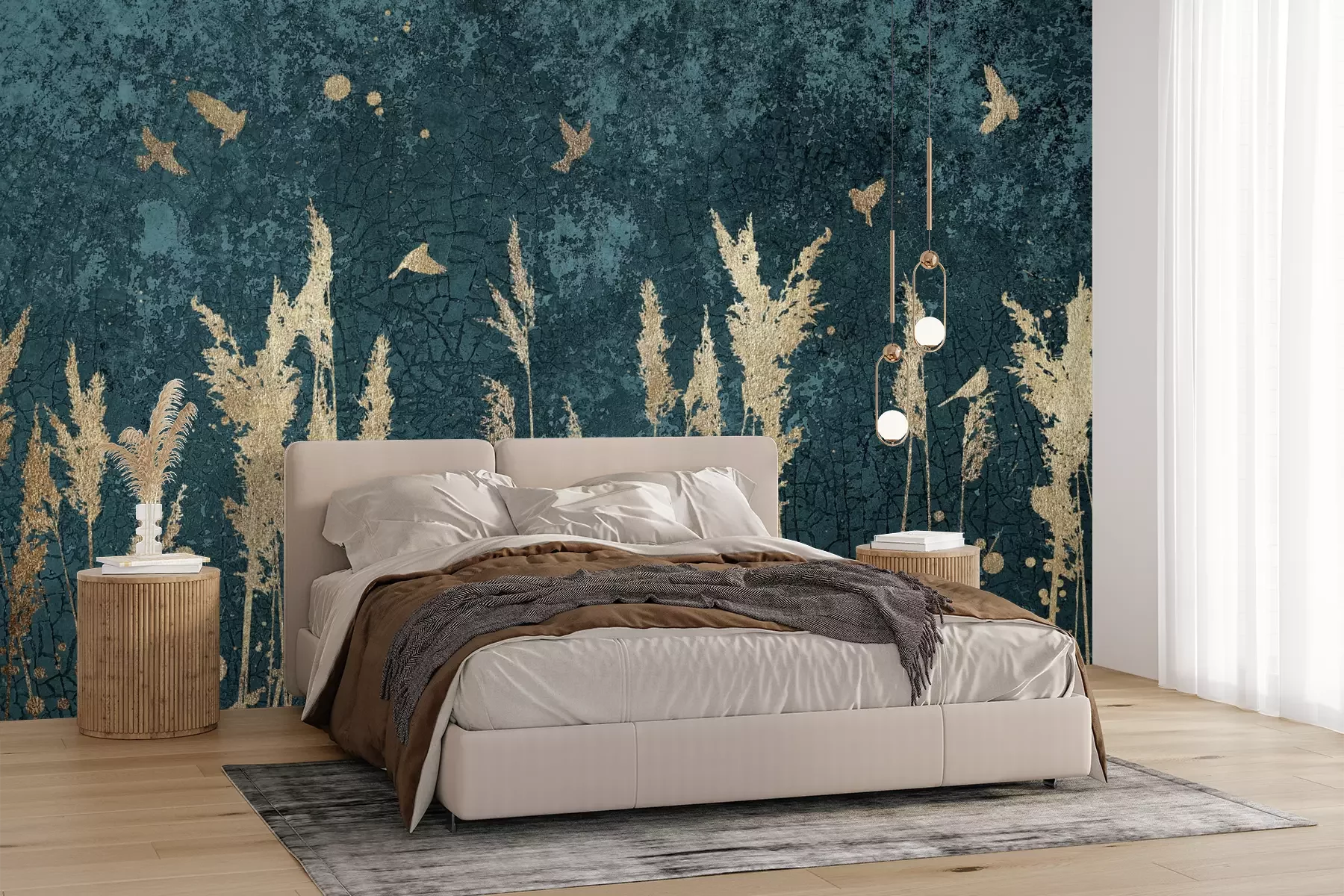 Das Material Premium+ besteht aus einer strukturierten Vinyl-Oberschicht und einem Trägermaterial (Vlies) mit einer Grammatur von 255 g/m², das kleine Unebenheiten der Wand zuverlässig kaschiert. Die feine Sandstruktur verleiht der Oberfläche eine luxuriöse Haptik, während das halbmatte Finish die Tiefe der Farben betont. Das Material ist dampfdurchlässig – so kann diese Fototapete auch in Küchen und Badezimmern eingesetzt werden. Die maximale Breite einer Tapetenbahn beträgt 100 cm. Bei größeren Abmessungen besteht die Fototapete aus mehreren gleich großen Bahnen. Der Kleber wird direkt auf die Wand aufgetragen, und die Fototapete wird auf Stoß angebracht, was für einen ästhetischen Effekt ohne sichtbare Fugen sorgt. Die Oberfläche ist pflegeleicht und kann bei Bedarf sanft mit einem feuchten Tuch abgewischt werden.