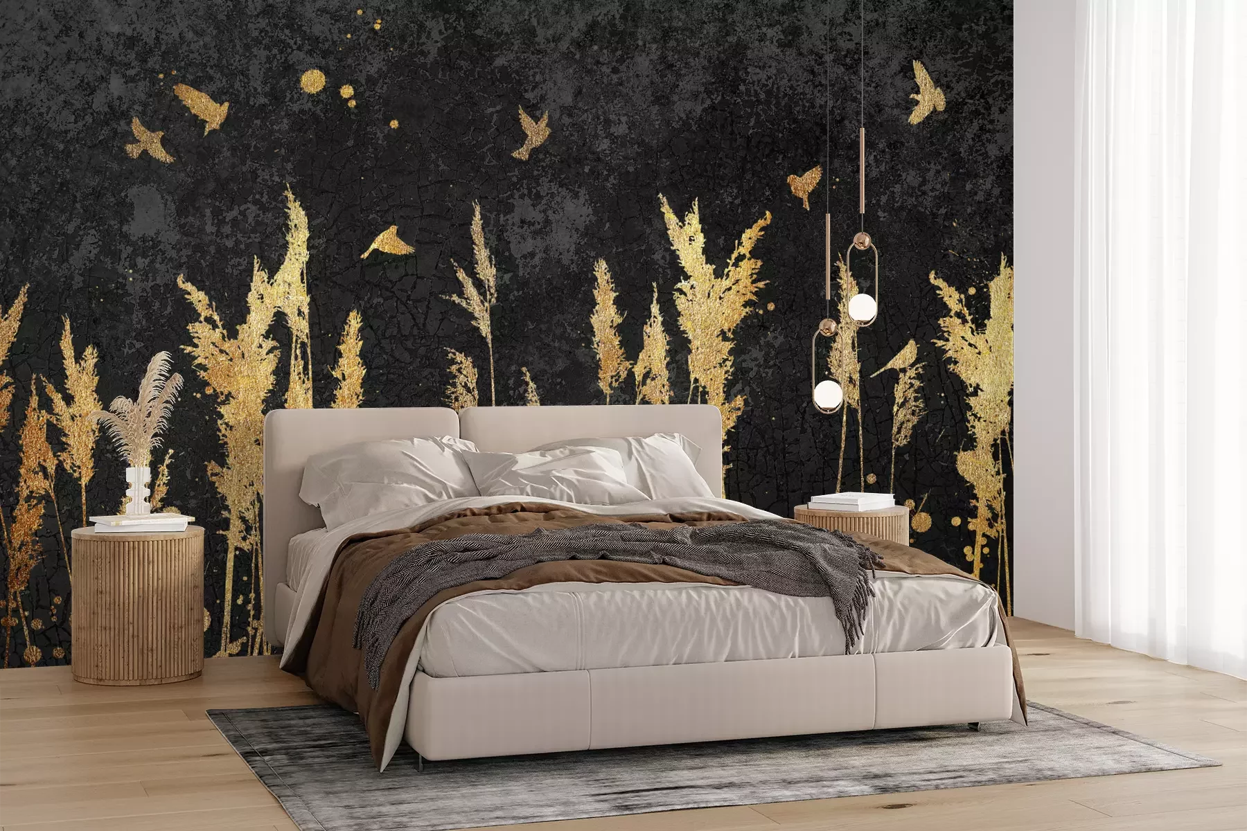 Das Material Premium+ besteht aus einer strukturierten Vinyl-Oberschicht und einem Trägermaterial (Vlies) mit einer Grammatur von 255 g/m², das kleine Unebenheiten der Wand zuverlässig kaschiert. Die feine Sandstruktur verleiht der Oberfläche eine luxuriöse Haptik, während das halbmatte Finish die Tiefe der Farben betont. Das Material ist dampfdurchlässig – so kann diese Fototapete auch in Küchen und Badezimmern eingesetzt werden. Die maximale Breite einer Tapetenbahn beträgt 100 cm. Bei größeren Abmessungen besteht die Fototapete aus mehreren gleich großen Bahnen. Der Kleber wird direkt auf die Wand aufgetragen, und die Fototapete wird auf Stoß angebracht, was für einen ästhetischen Effekt ohne sichtbare Fugen sorgt. Die Oberfläche ist pflegeleicht und kann bei Bedarf sanft mit einem feuchten Tuch abgewischt werden.