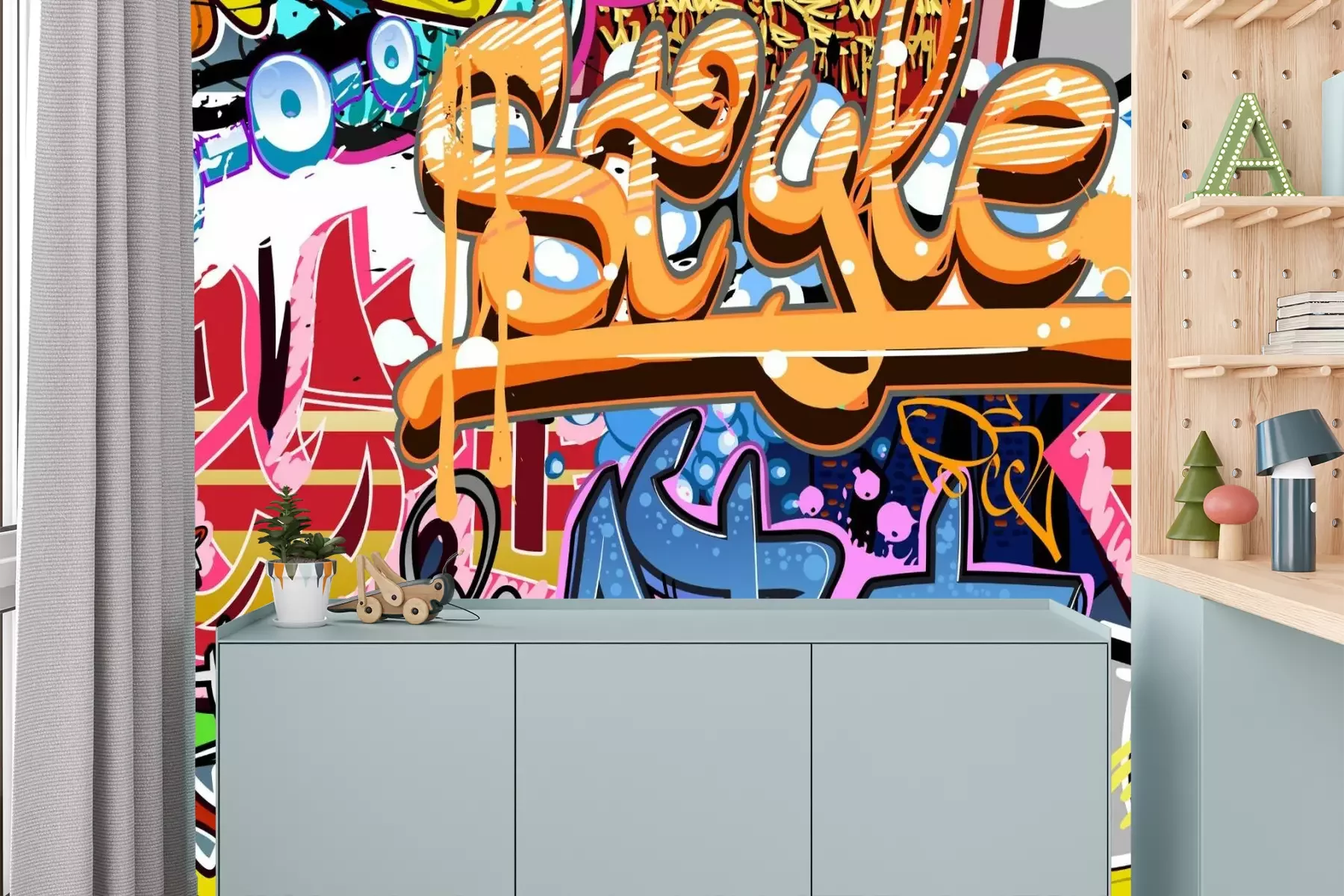 Buntes Graffiti mit Slogans und FarbeffektenFototapete