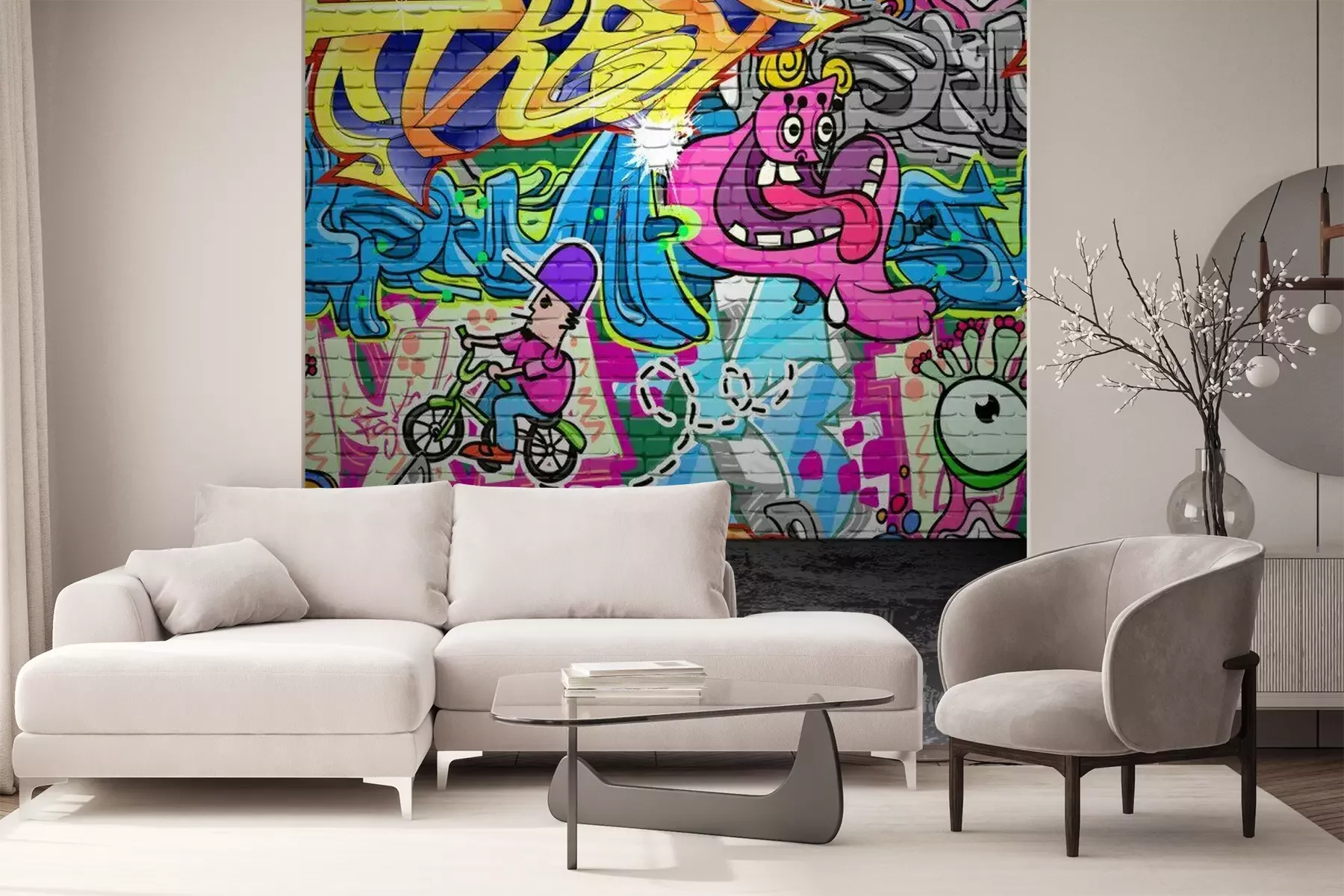 Buntes Graffiti mit Slogans und FarbeffektenFototapete