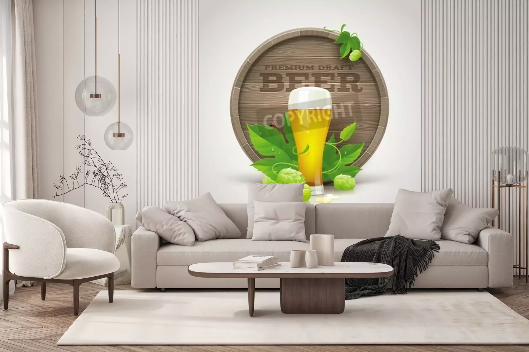 Fototapete Grafik mit Hopfengetränk