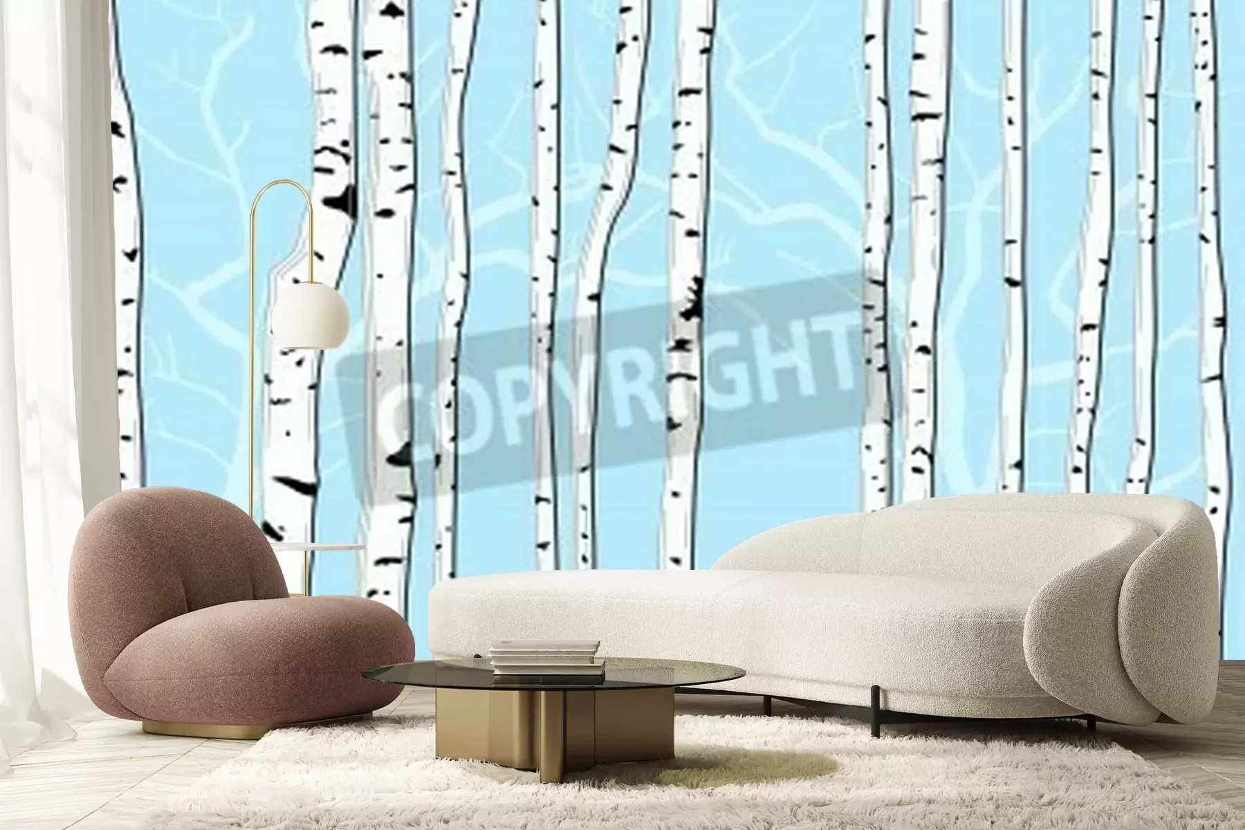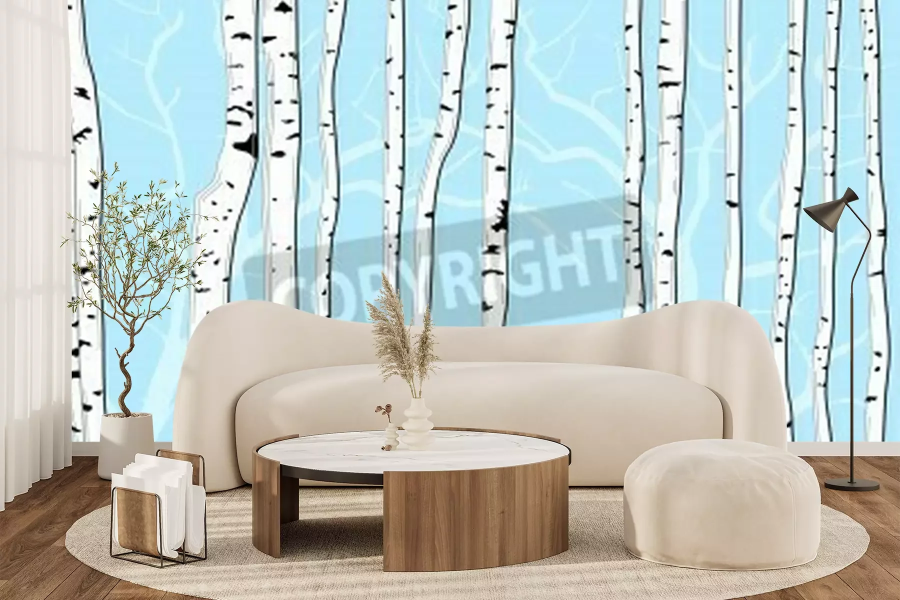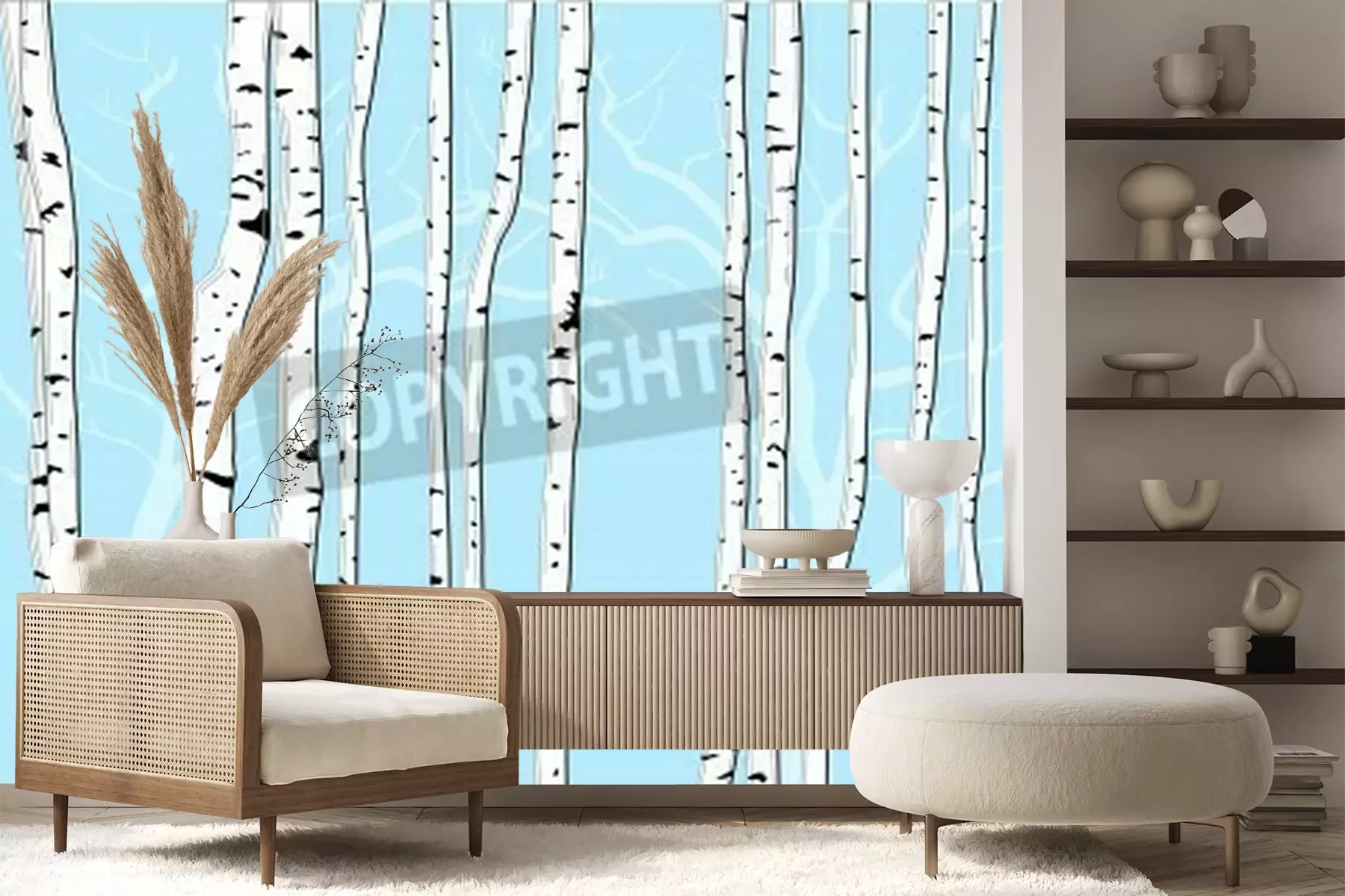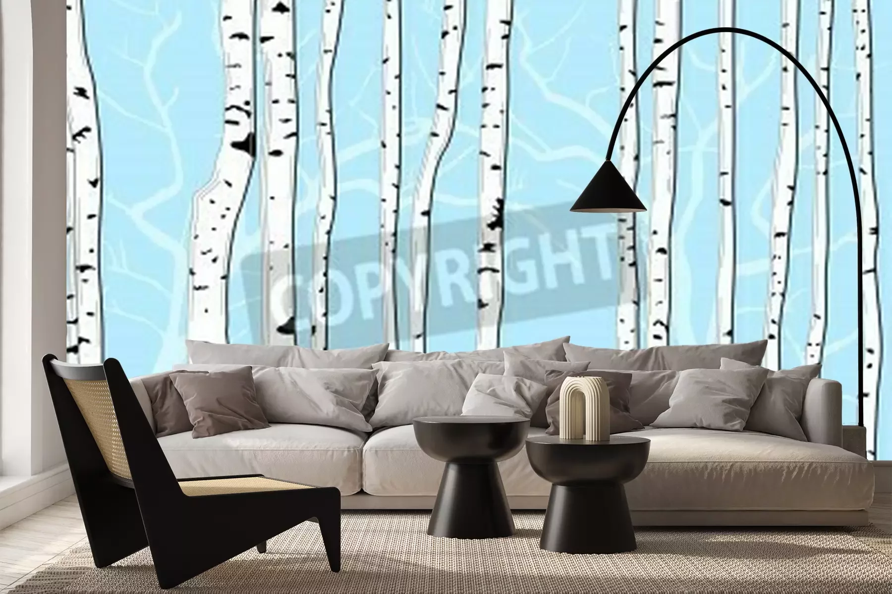 Fototapete Grafische Birken auf blauem Hintergrund