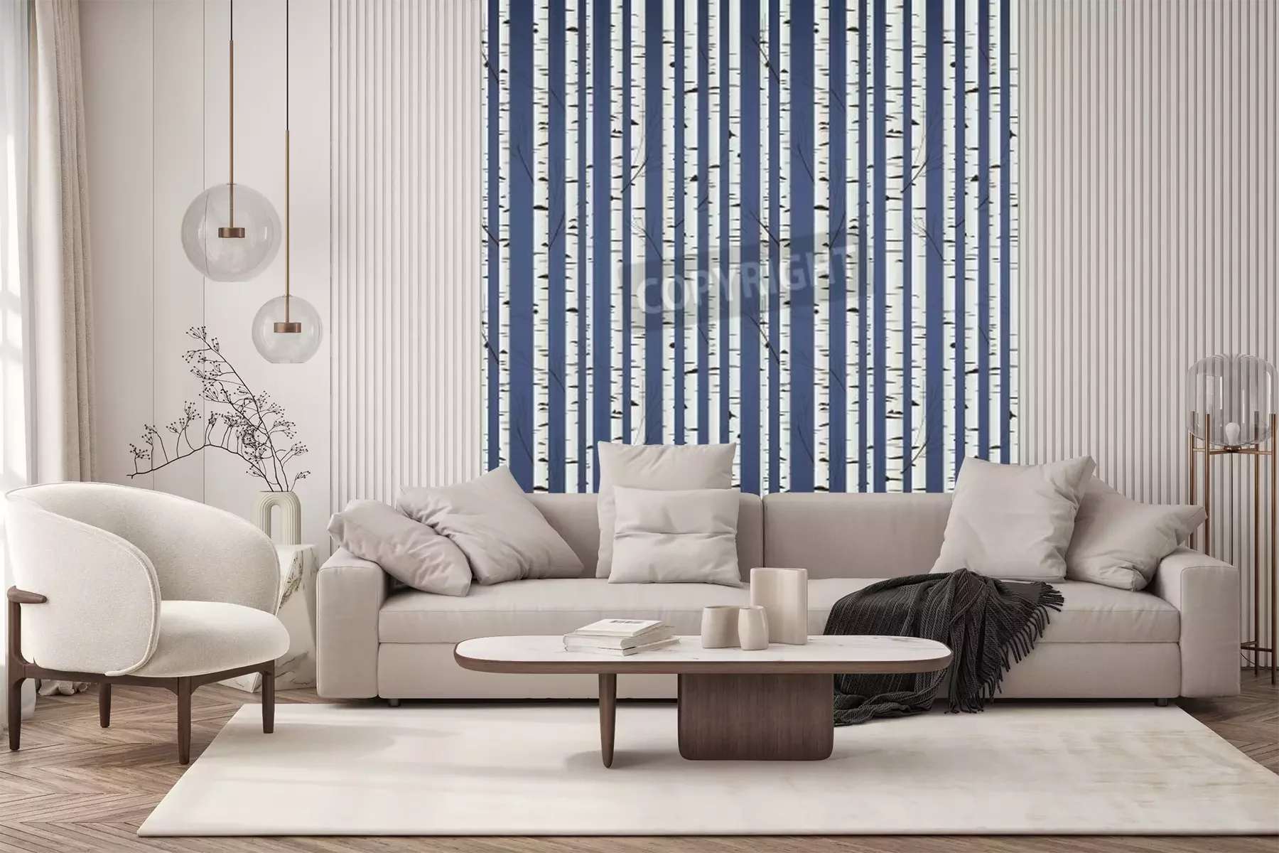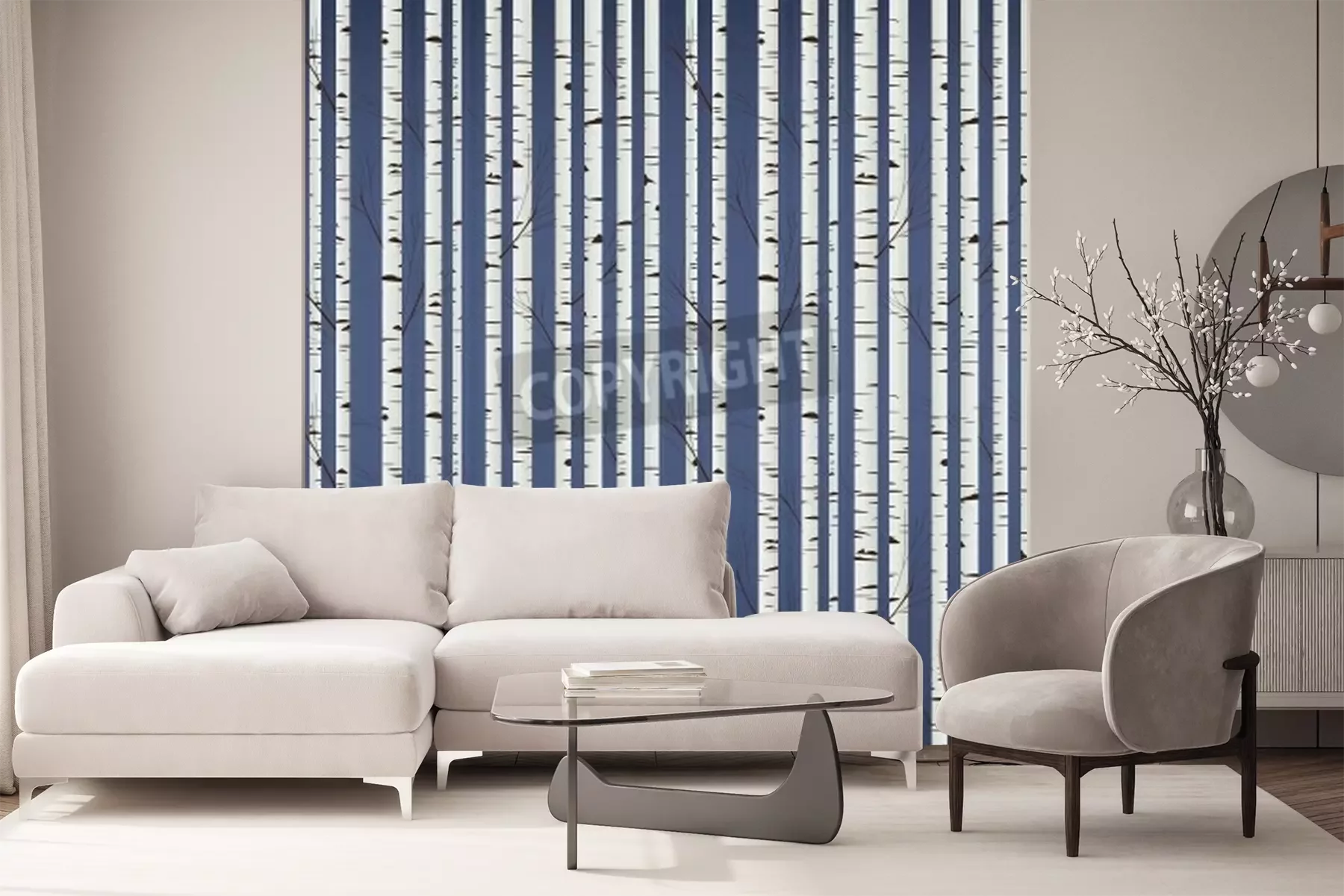 Fototapete Grafische Birken auf dunkelblauem Hintergrund